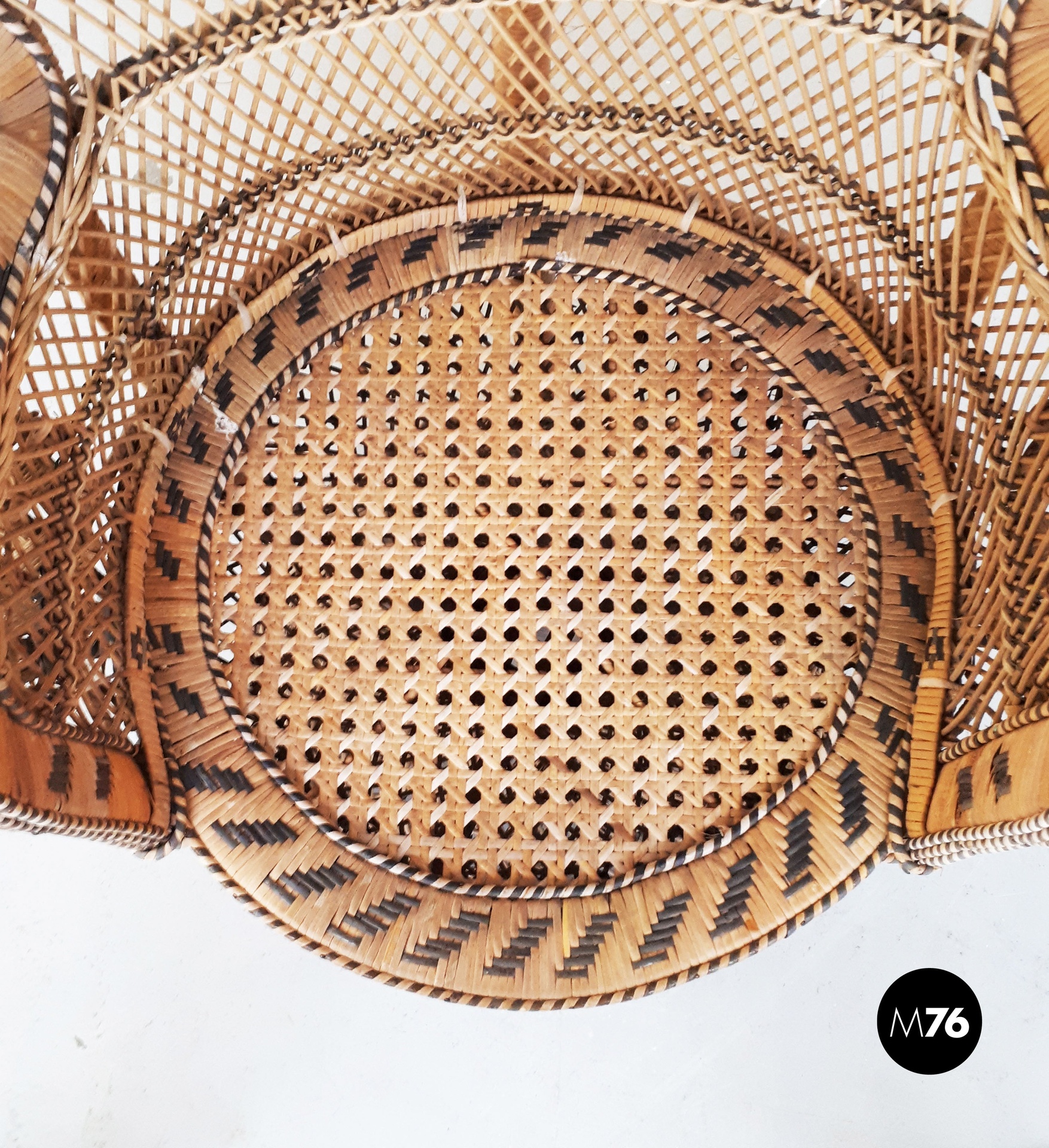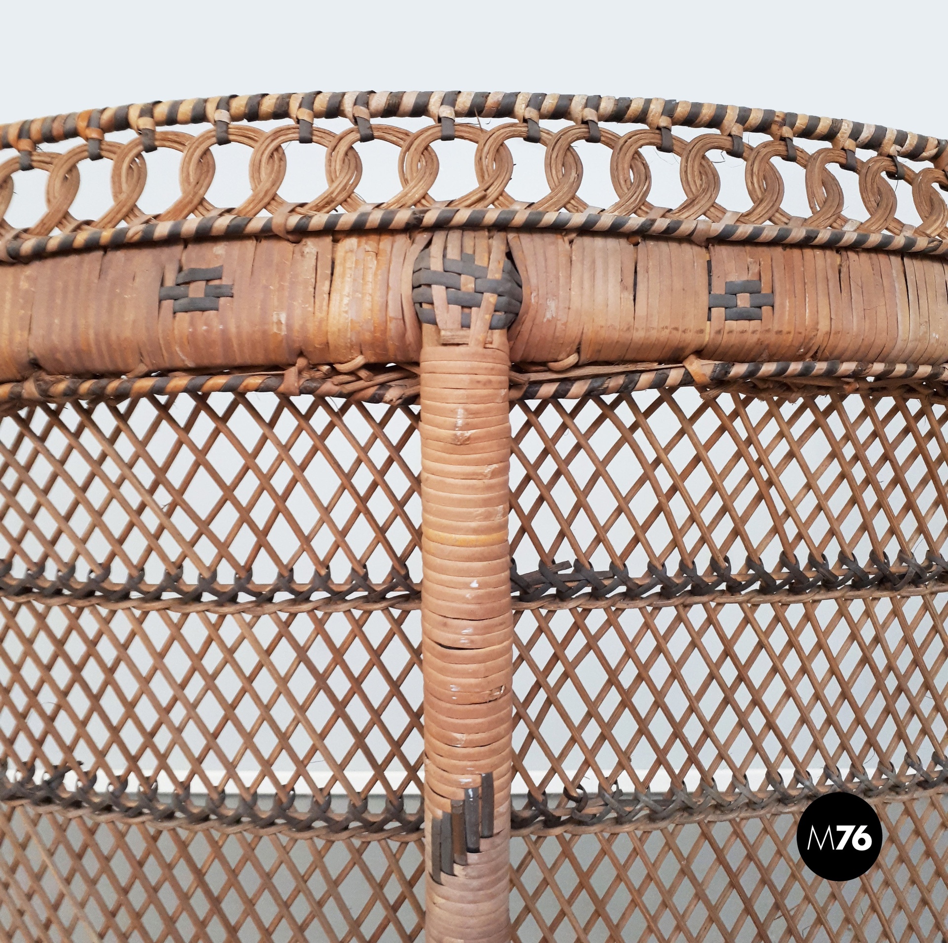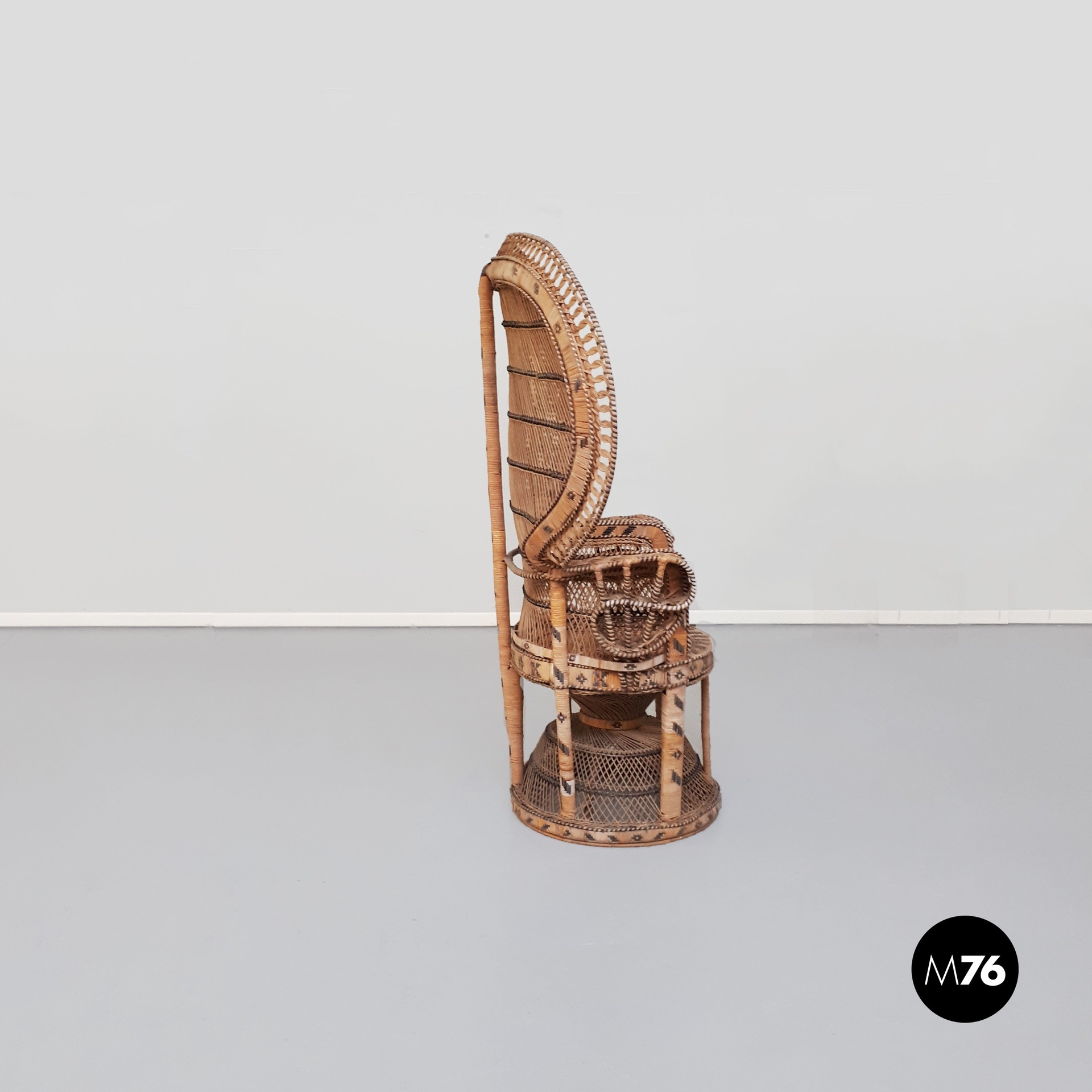 Poltrona Pavone in rattan, 1970 ca.