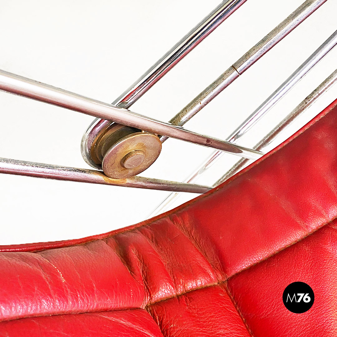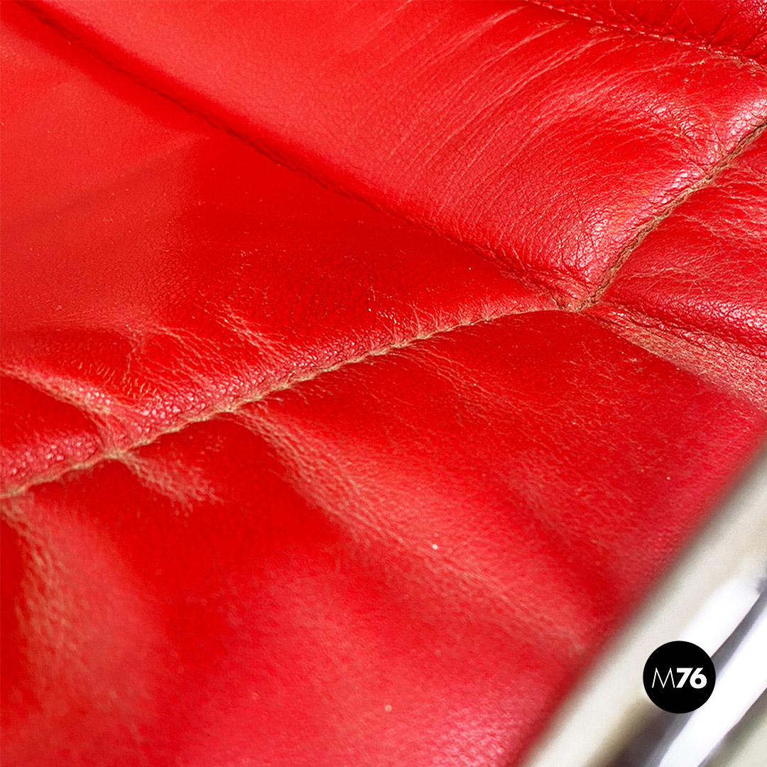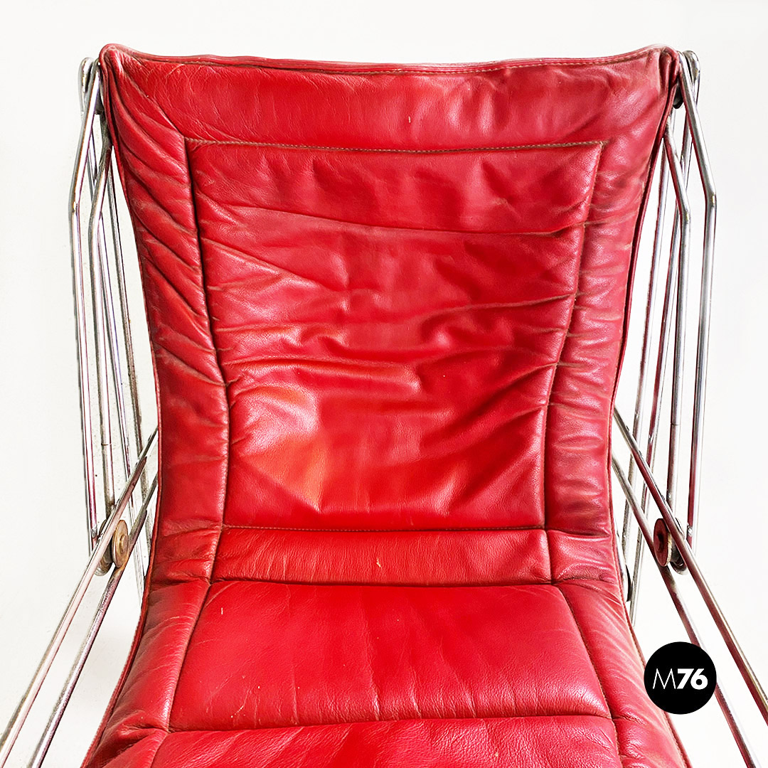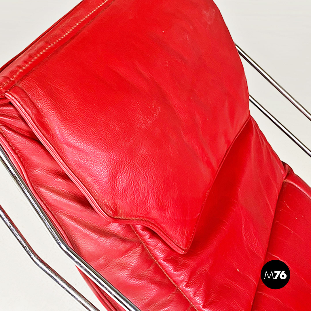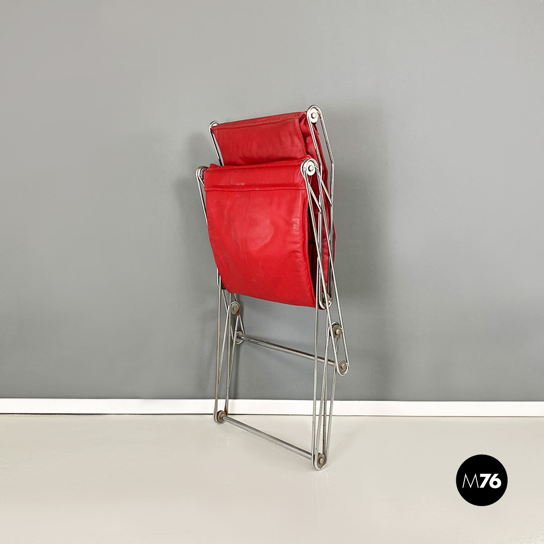 Poltrona pieghevole con struttura in tondino di acciaio cromato con distensione regolabile e con cuscino originale in sky rosso, con poggiatesta.