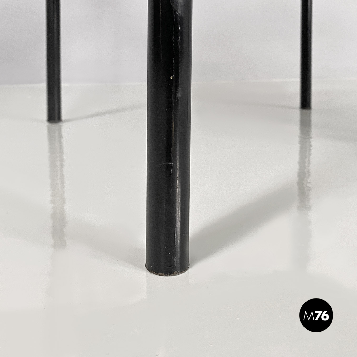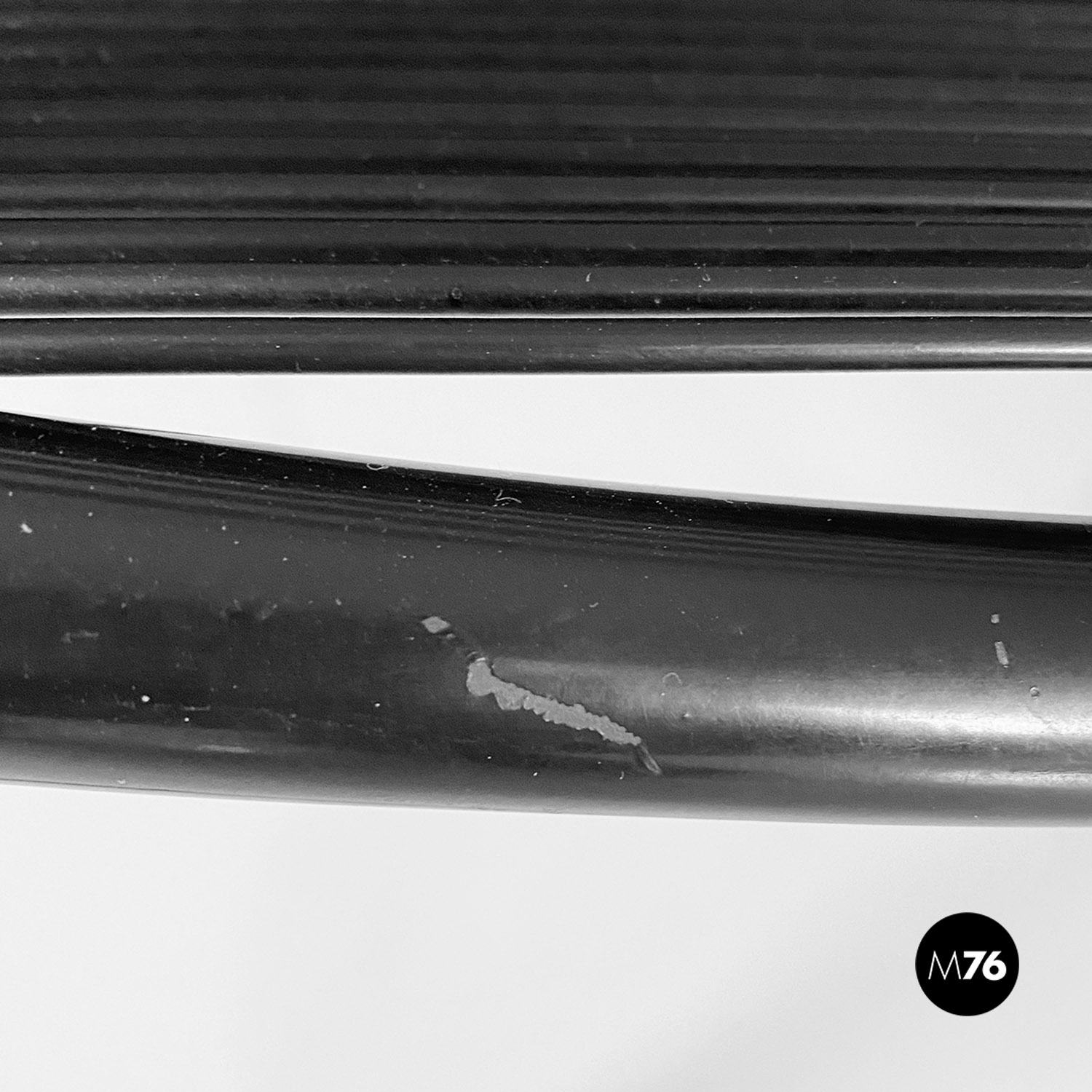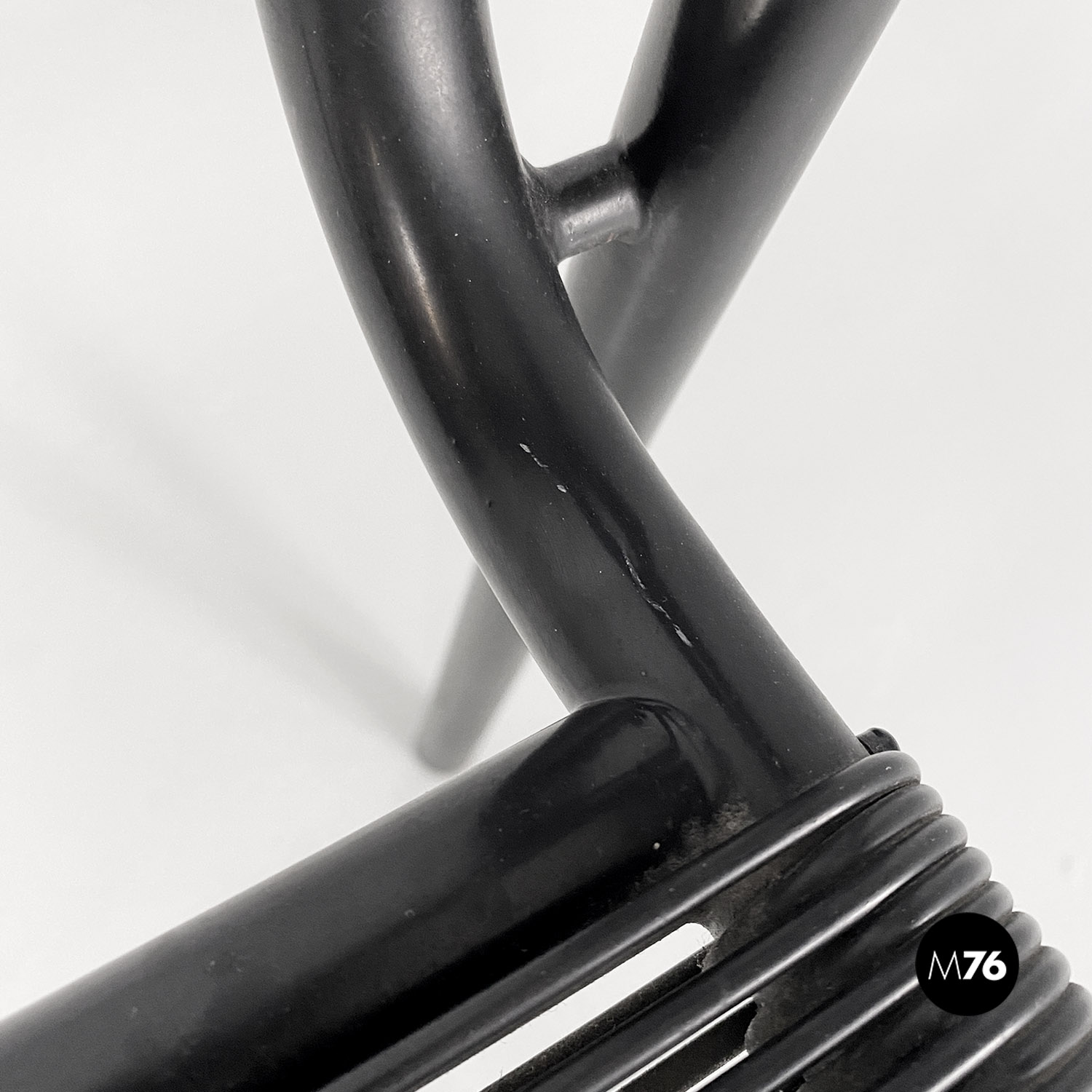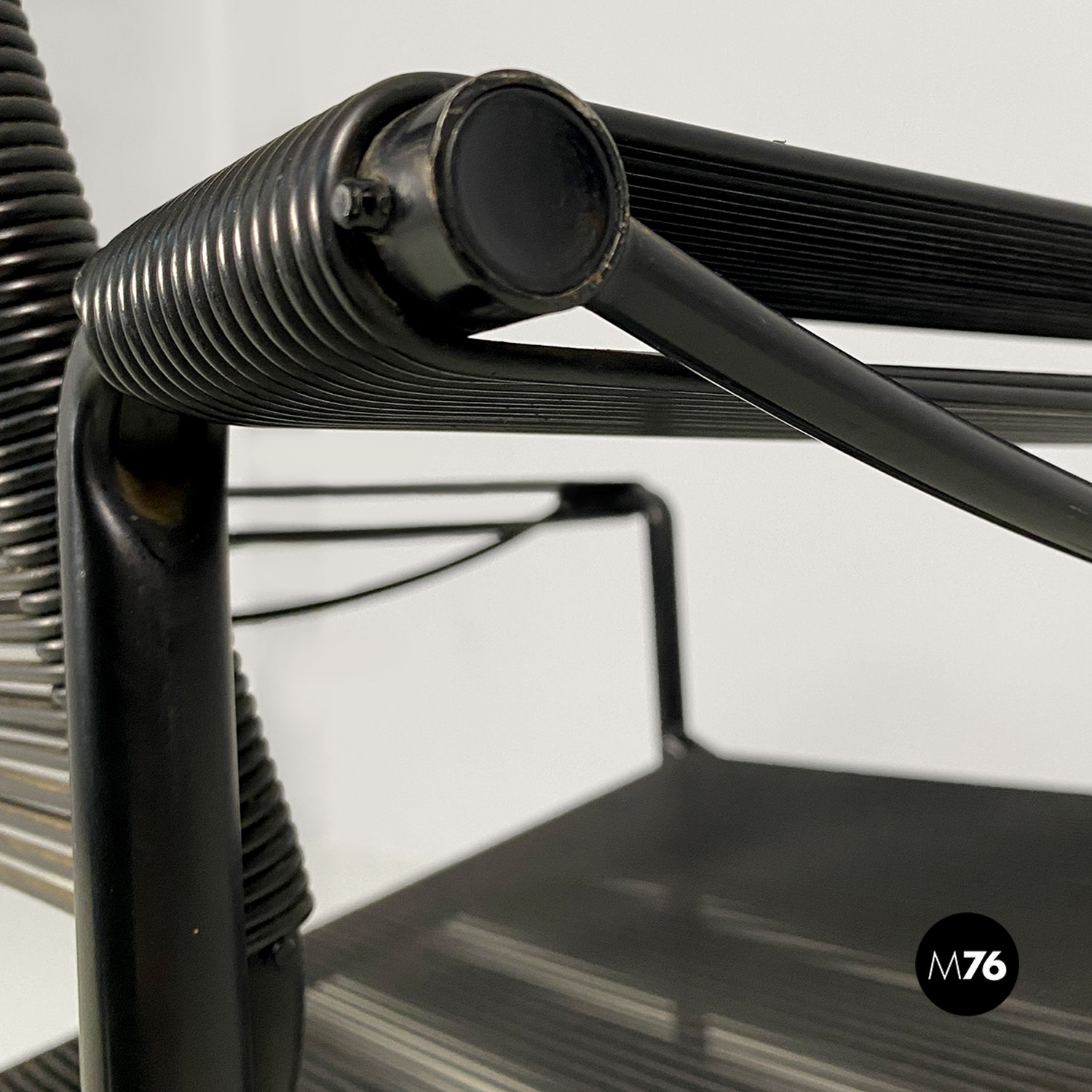 Poltrona modello Spaghetti con struttura in metallo verniciato nero dalla forma geometrica e seduta, schienale e braccioli in plastica o scooby nero.