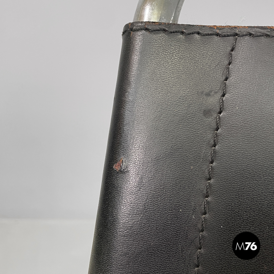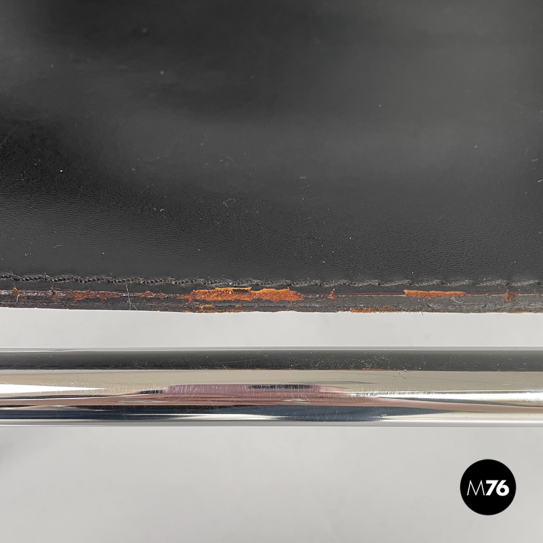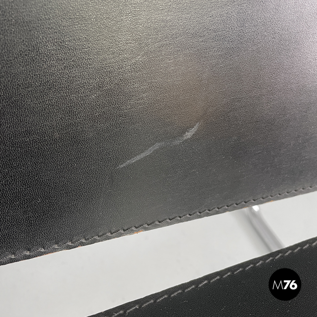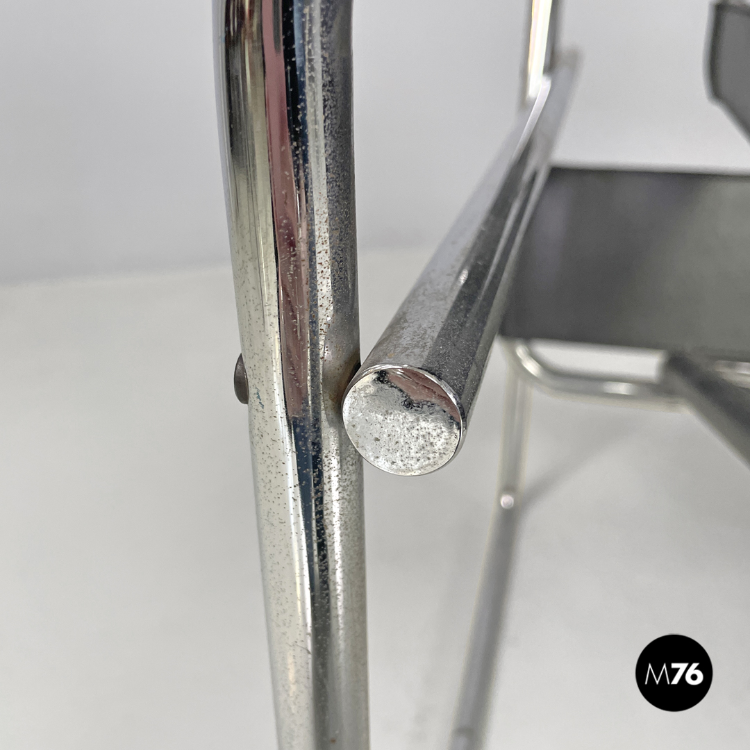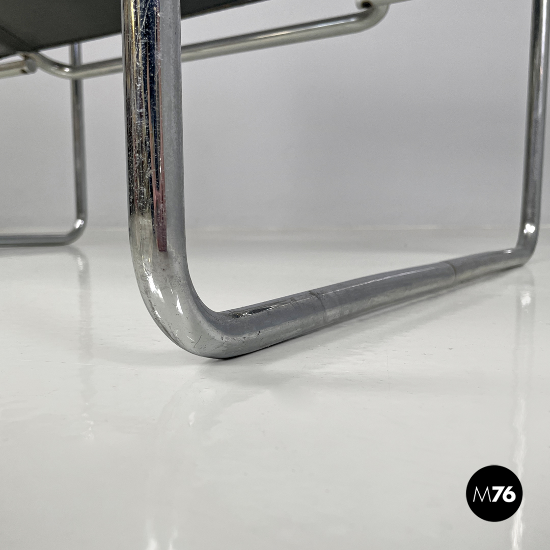 Poltrona modello Wassily o B3, con struttura in tubolare di acciaio cromato. La seduta, i braccioli e lo schienale sono composti da fasce interamente in pelle di colore nero con cuciture a vista.