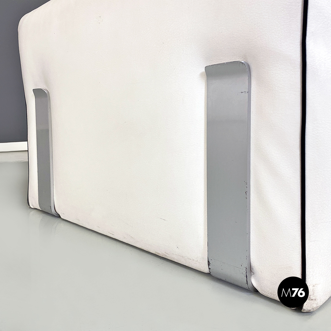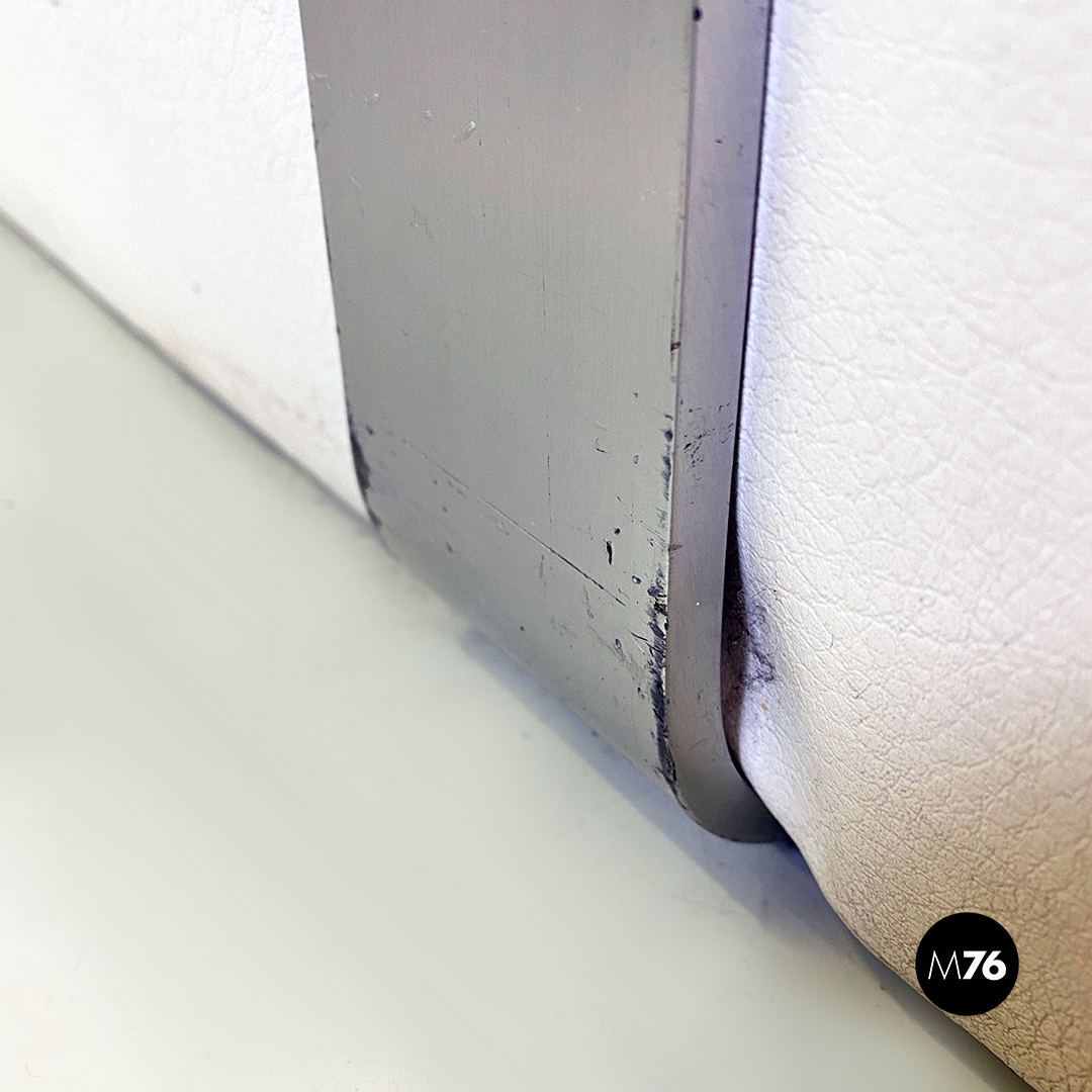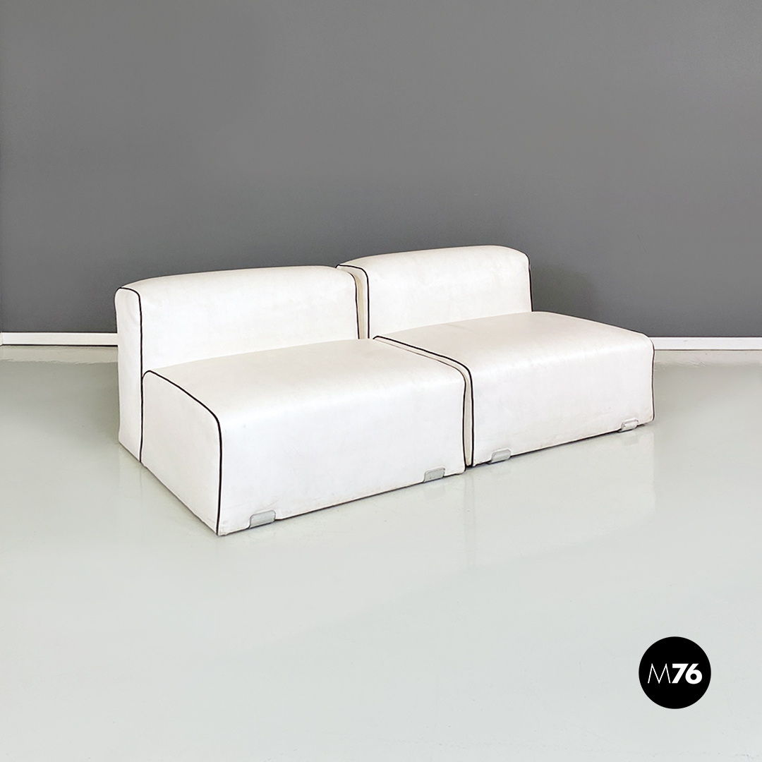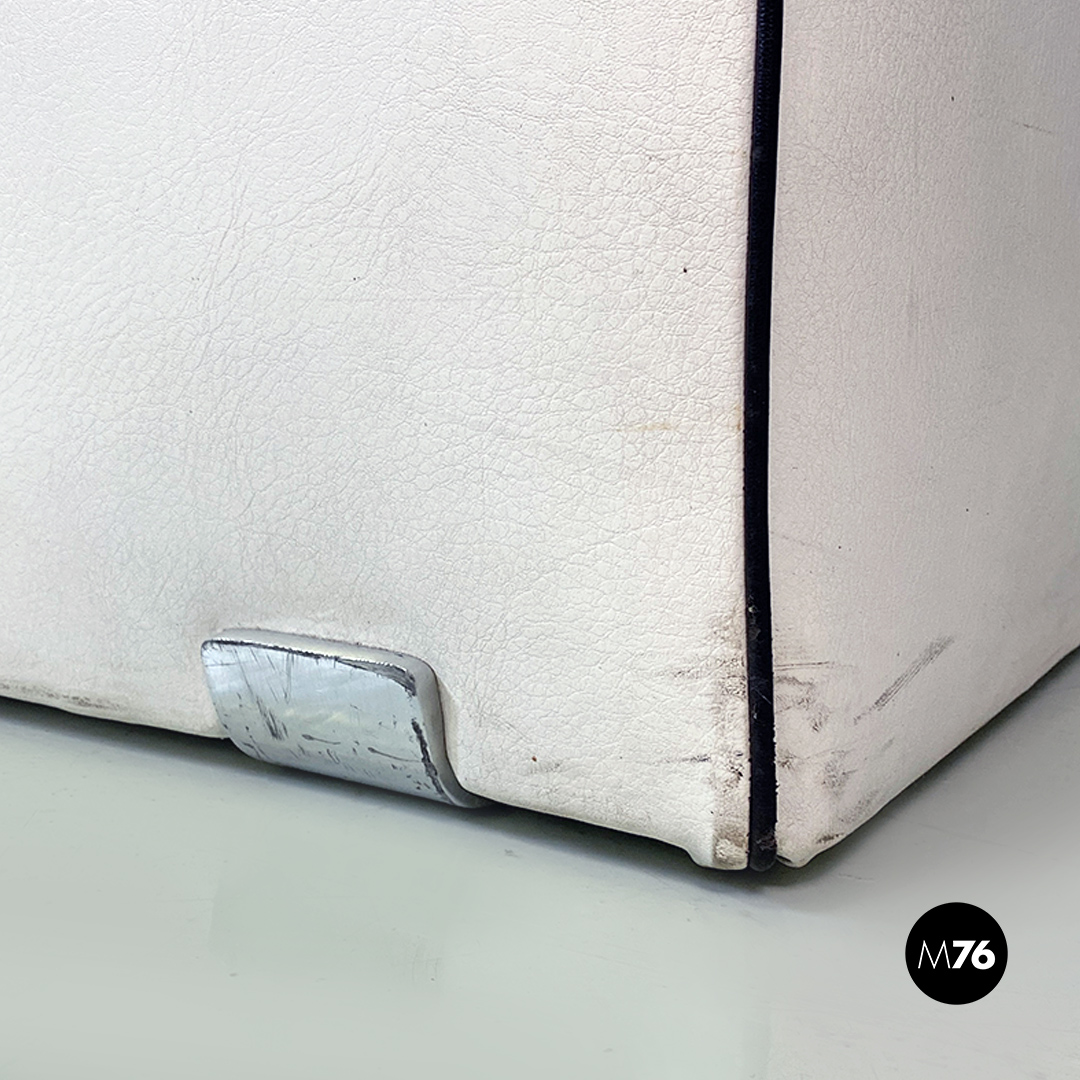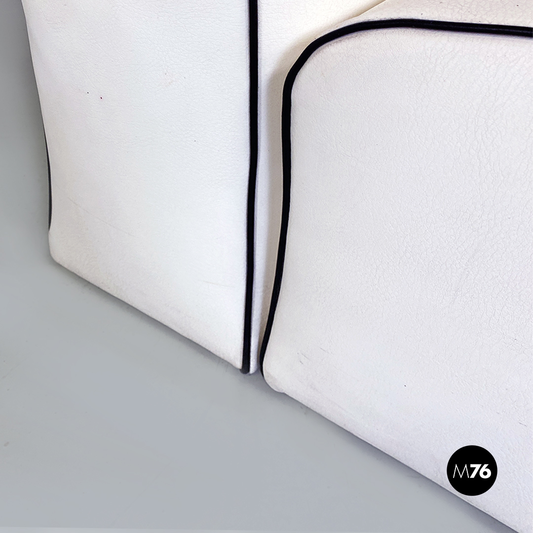 Coppia di poltrone in pelle bianca con cordino nero sul profilo, con dettagli in acciaio satinato. Insieme, compongono un divanetto due posti grazie anche al loro peso che le rende molto stabili.