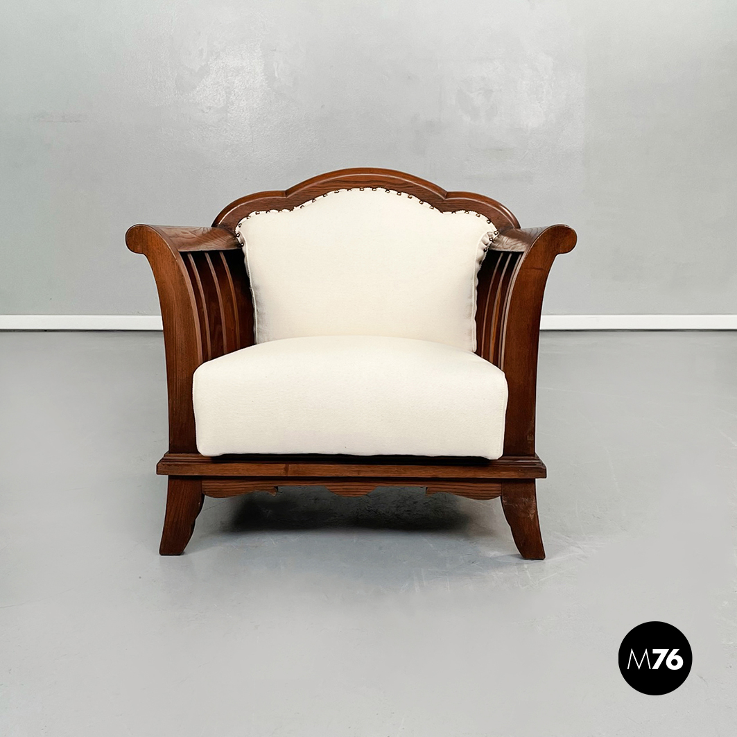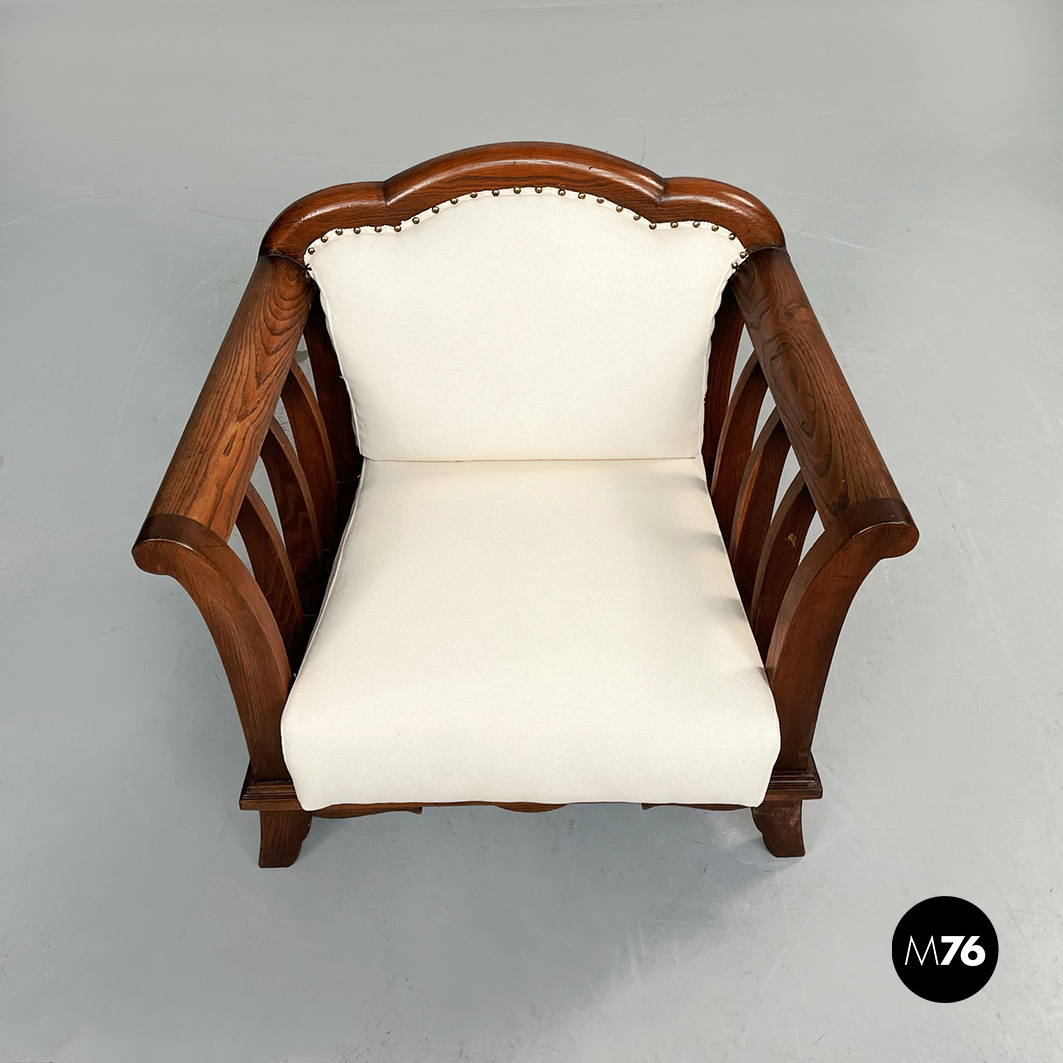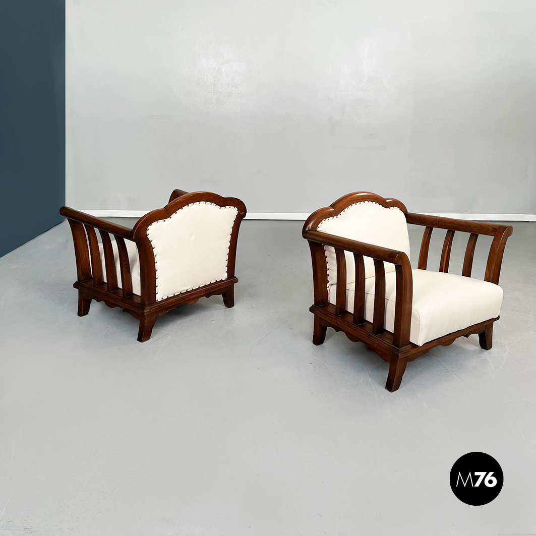 Poltrone in legno e tessuto bianco, 1940 ca.