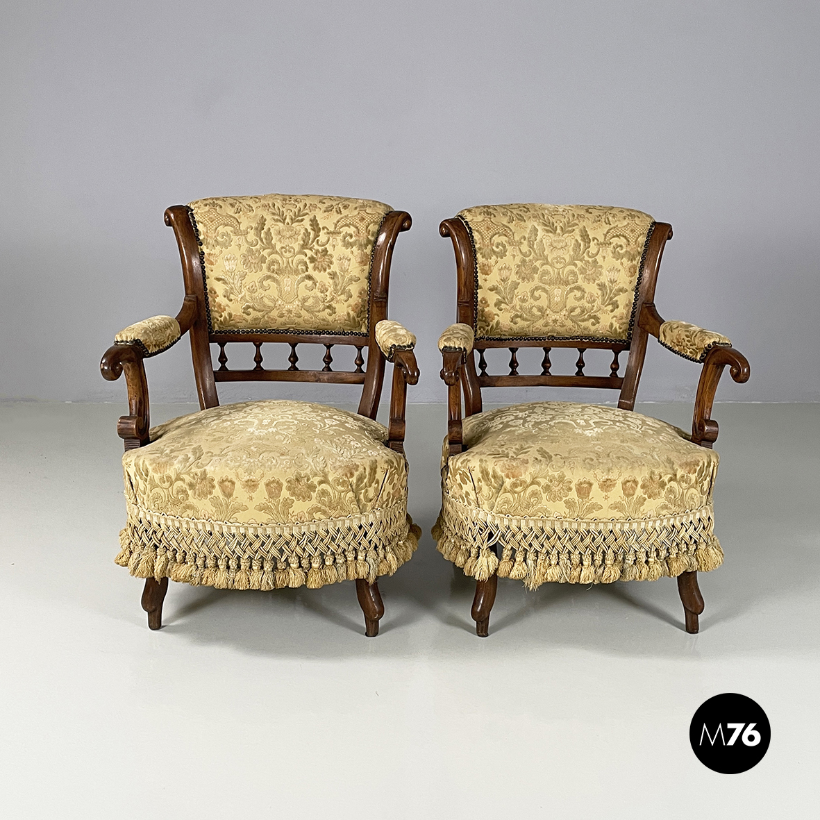 Poltrone in legno e tessuto giallo, fine 1800 ca.