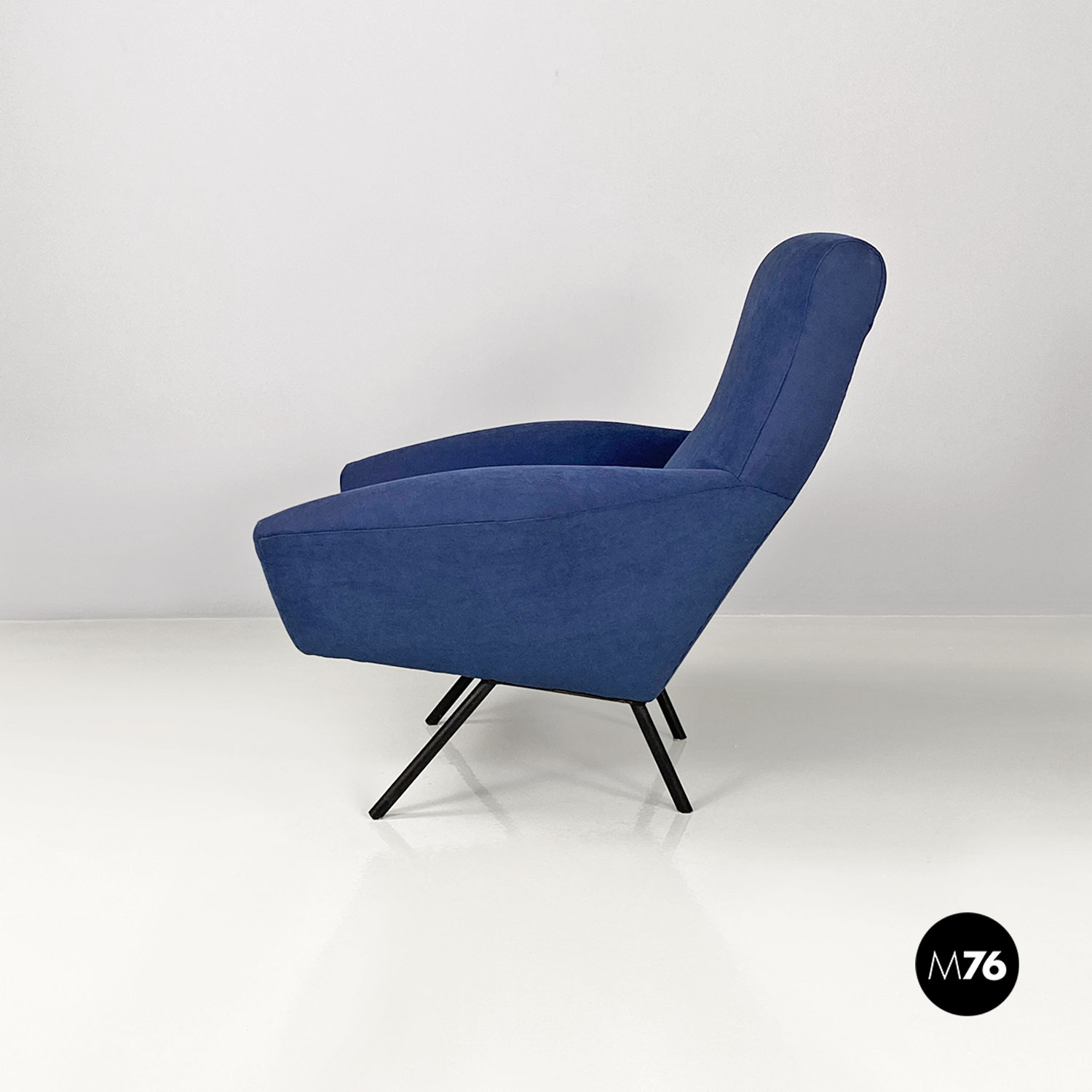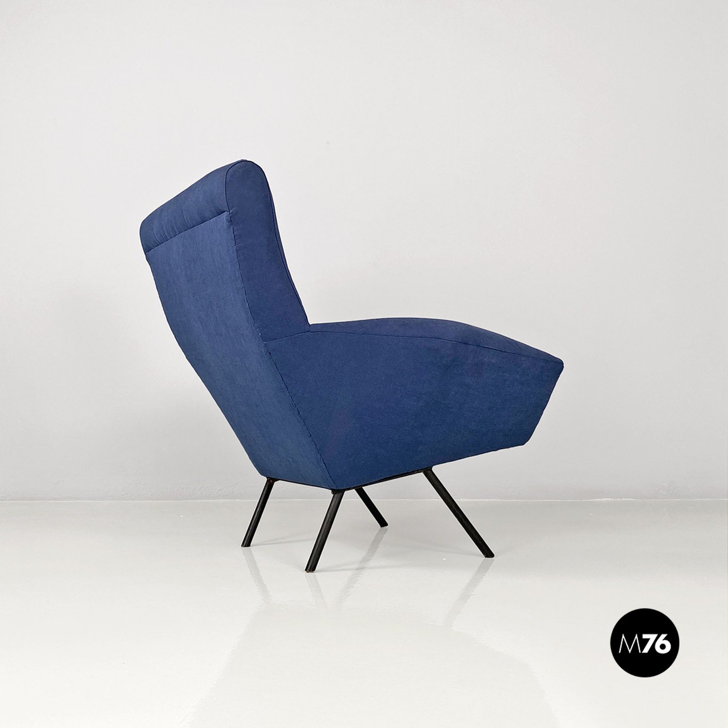 Poltrone in metallo verniciato nero e tessuto blu, 1960 ca.