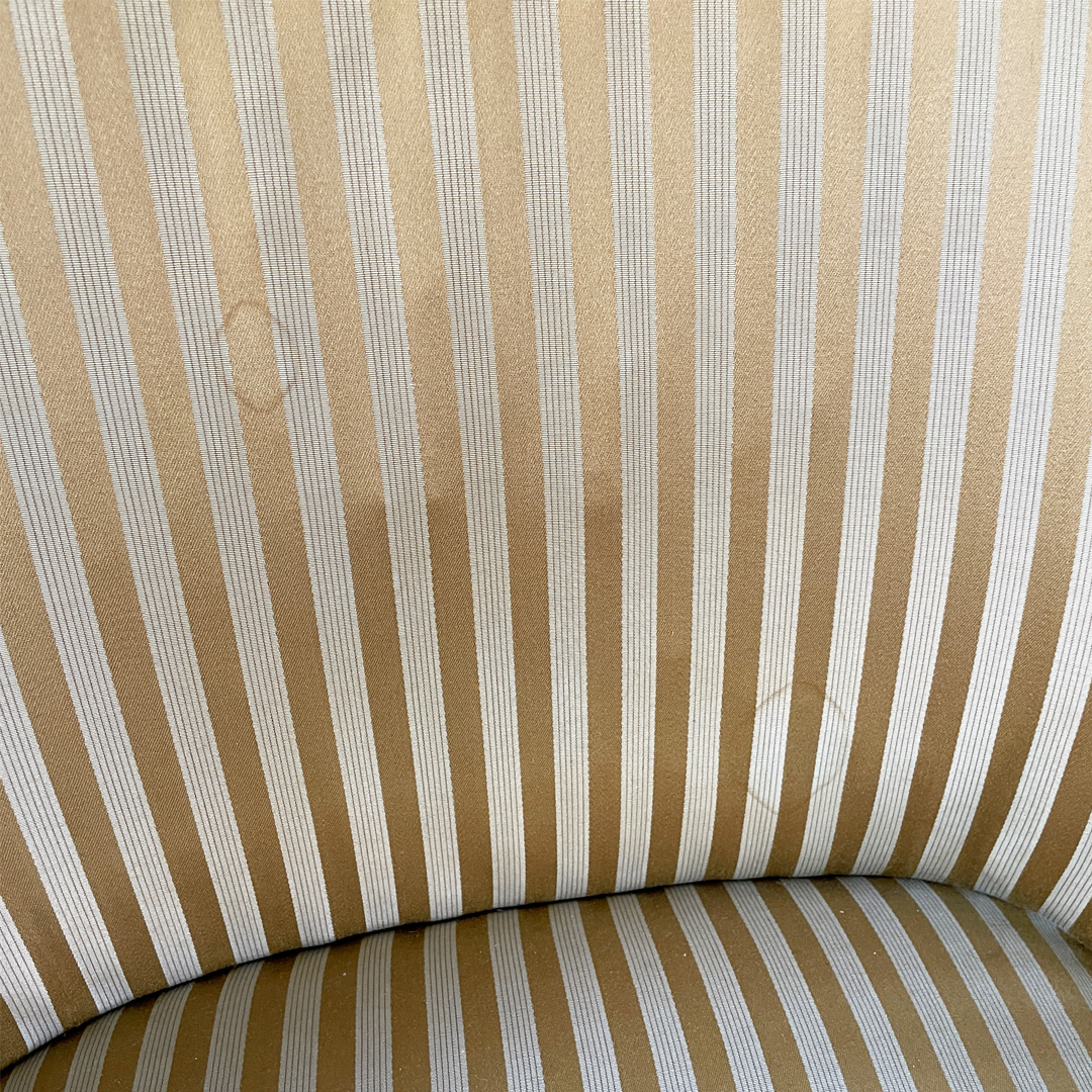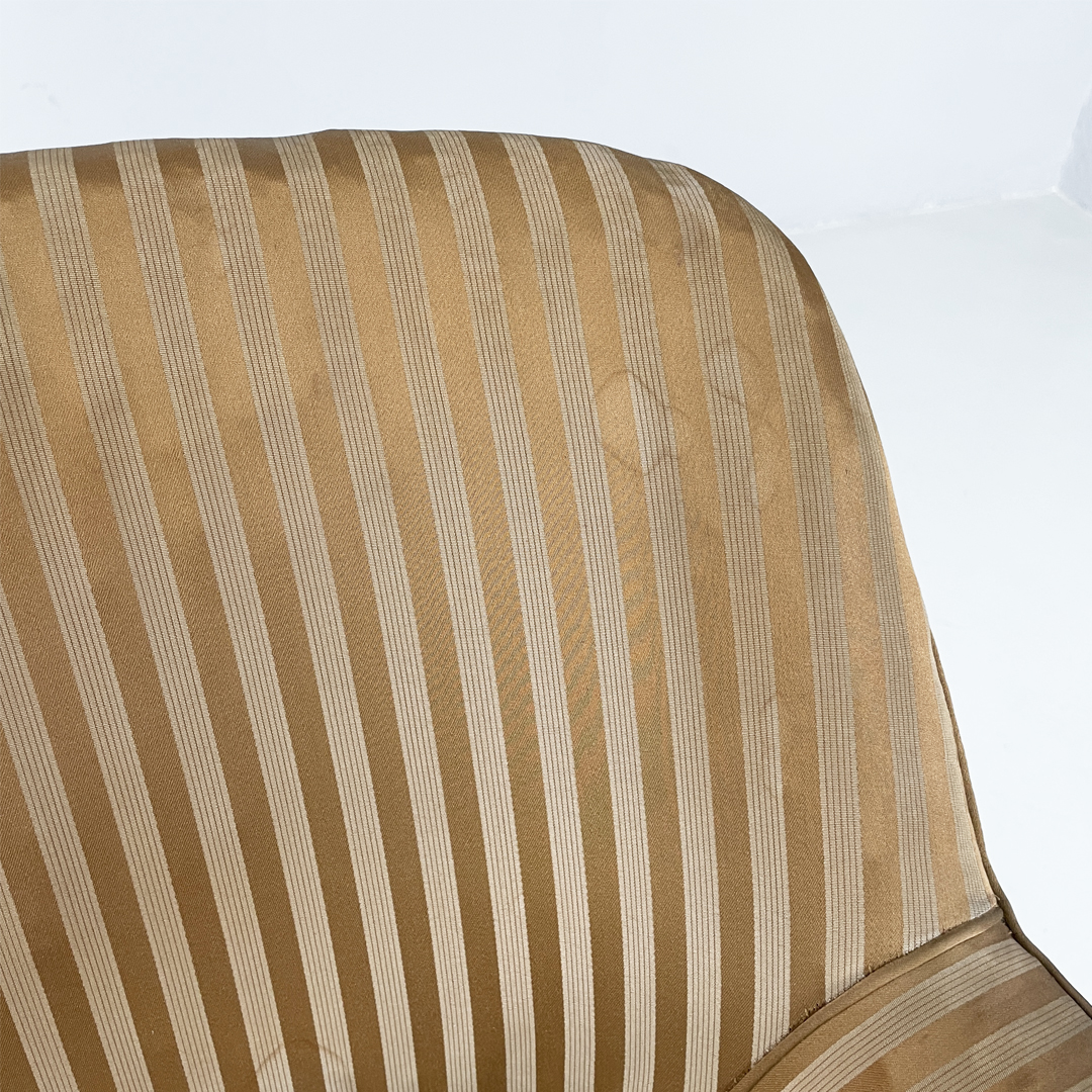 Condizioni vintage. Presenta alcuni segni, aloni e strappi sul tessuto. L’imbottitura è da sostituire. Le gambe sono state restaurate.