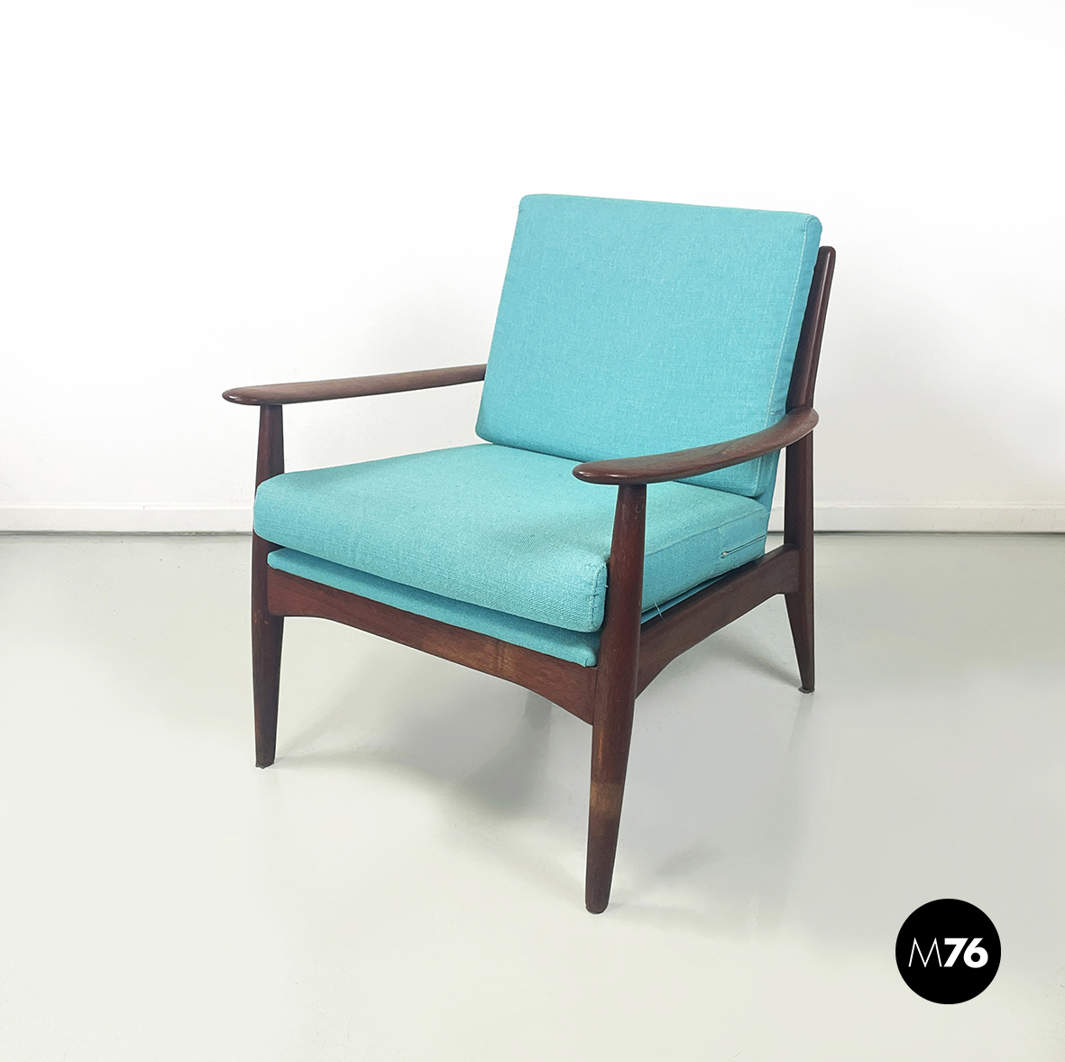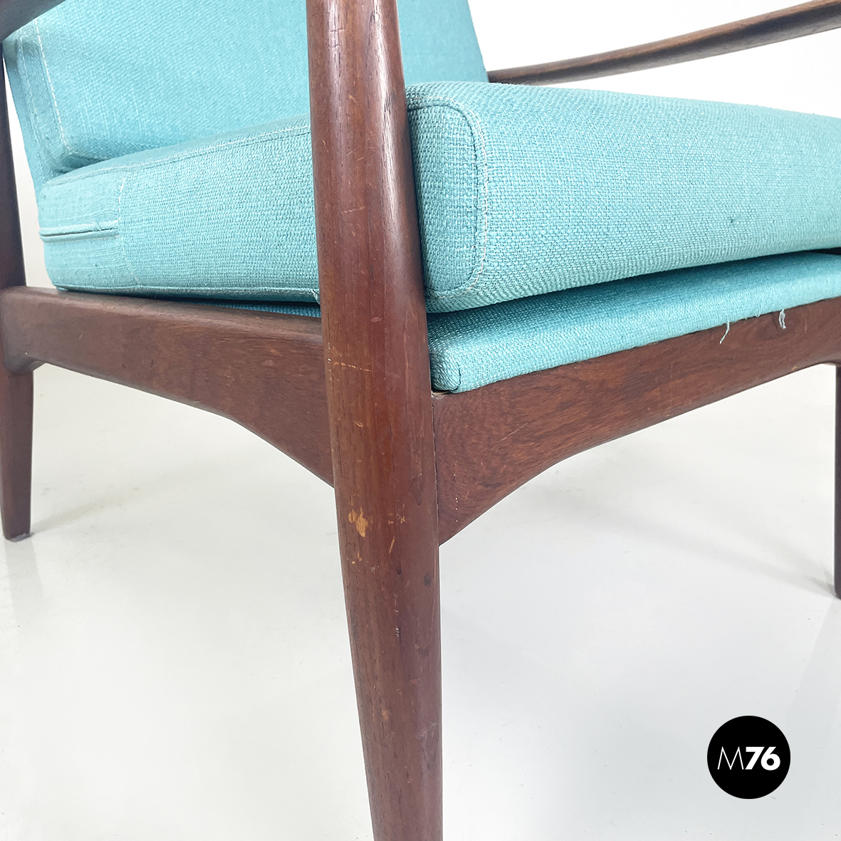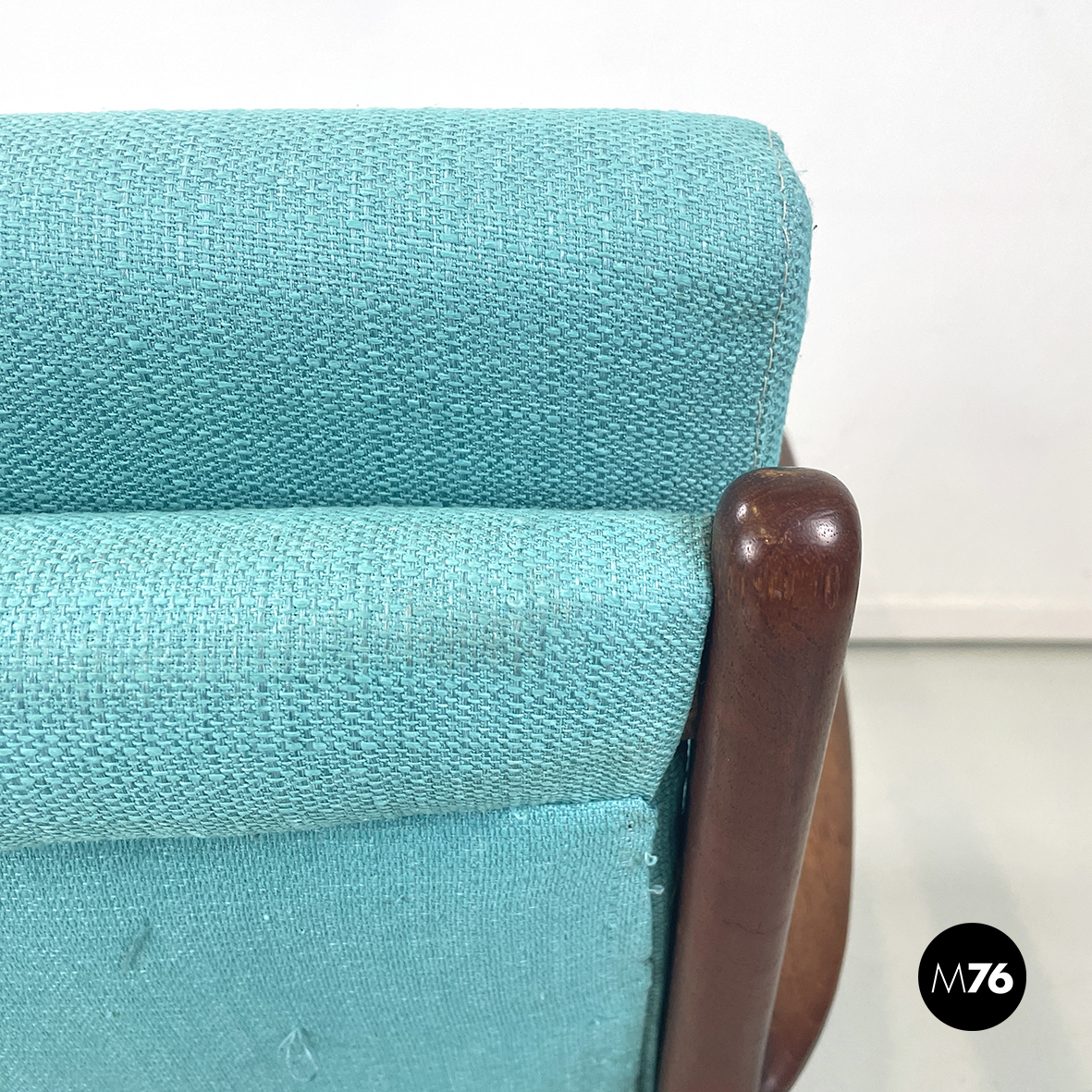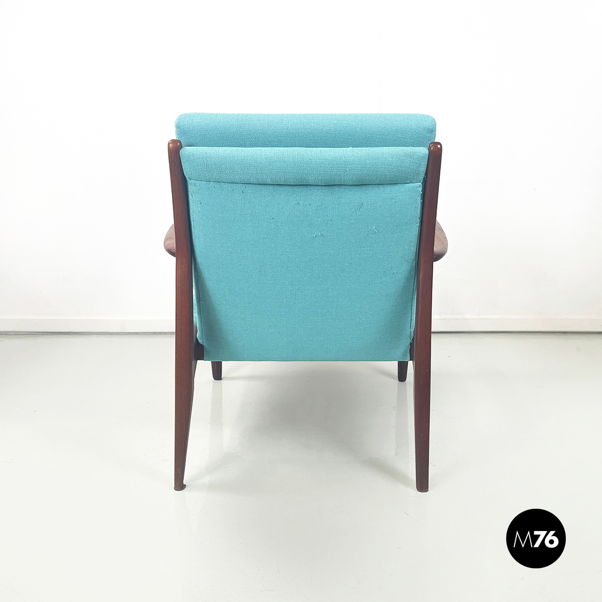 Poltrone in tessuto azzurro e legno, 1960 ca.