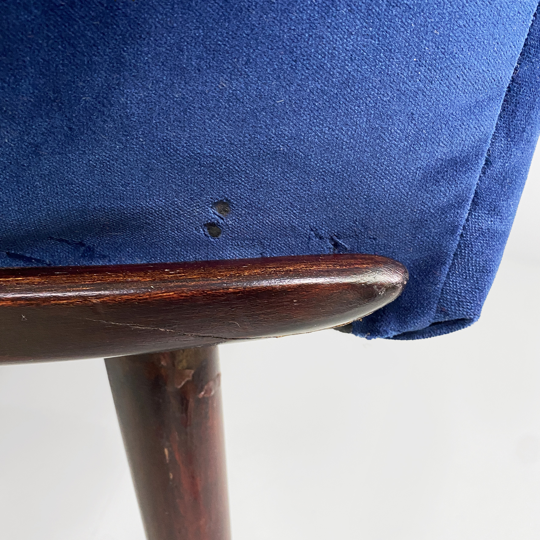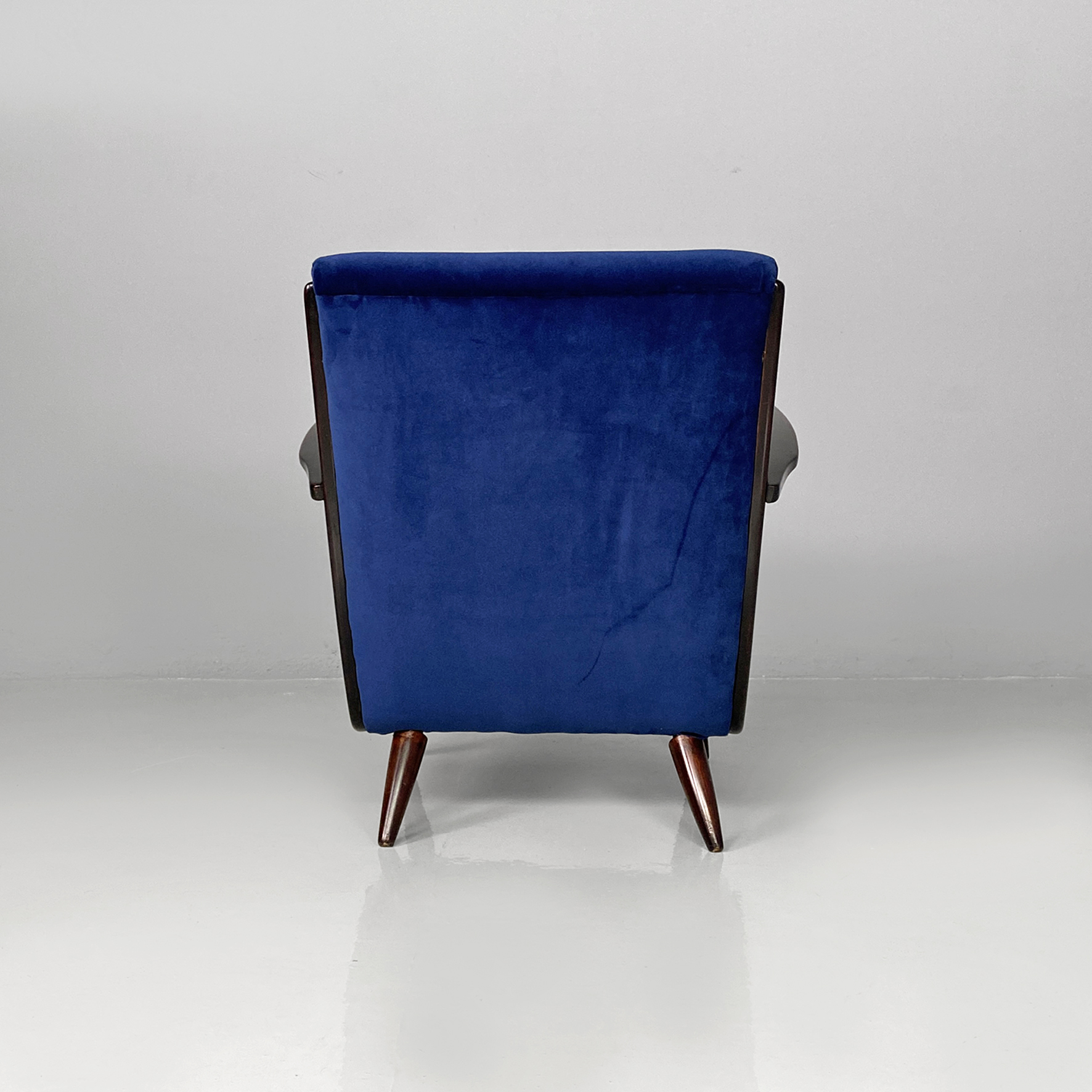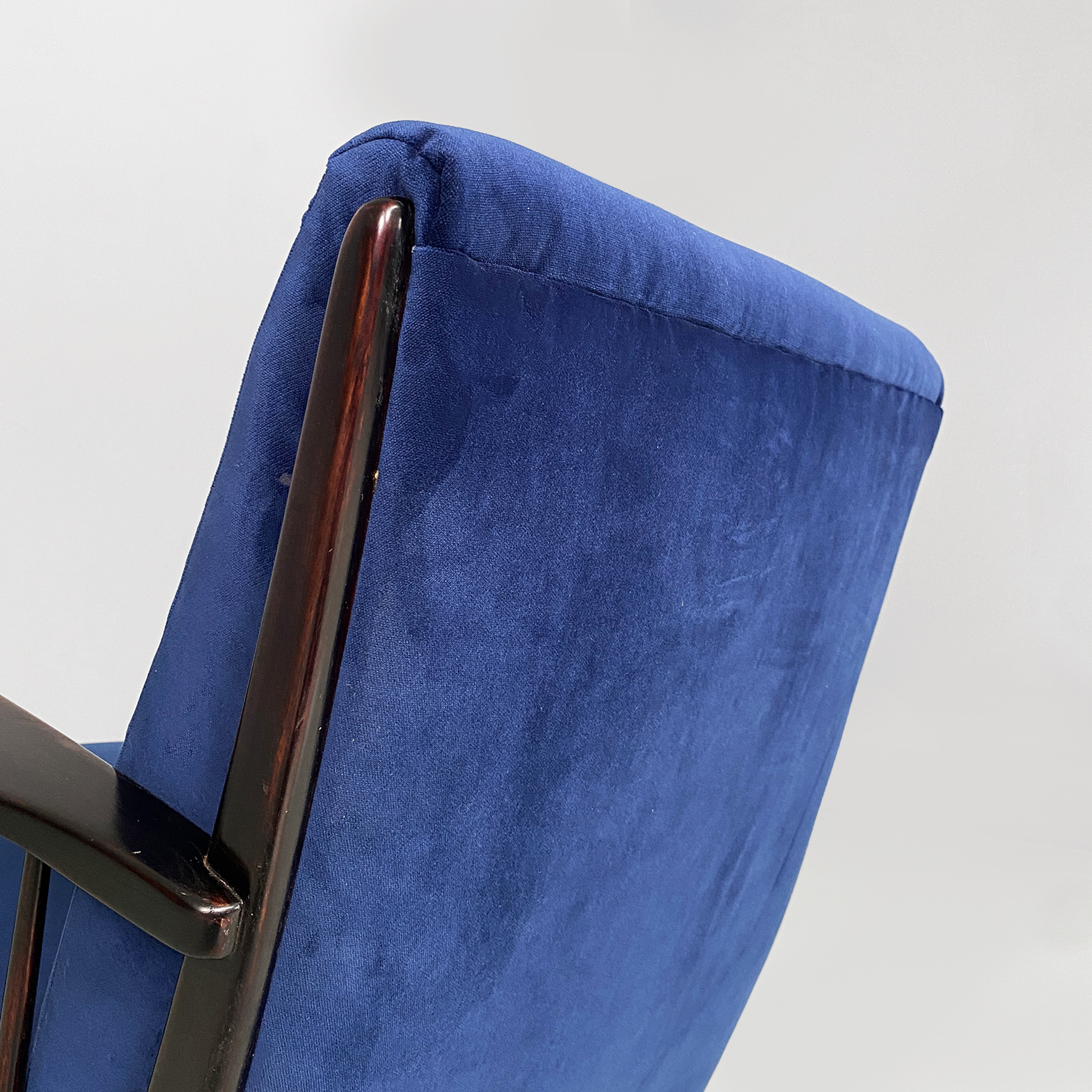 Poltrone in velluto blu e legno, 1960 ca.