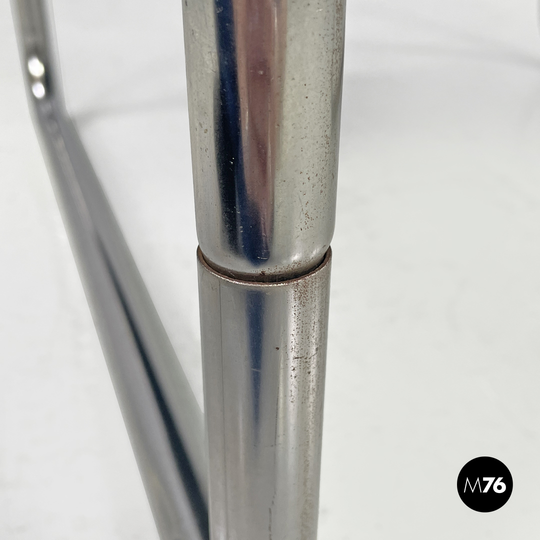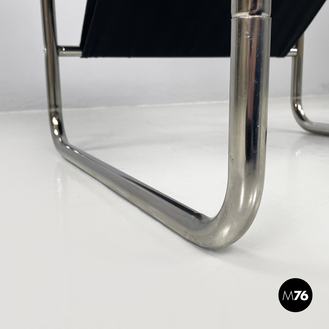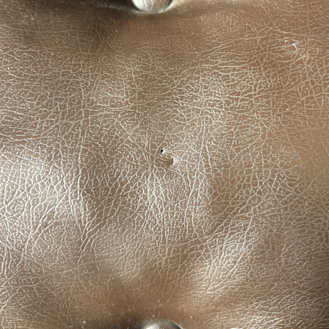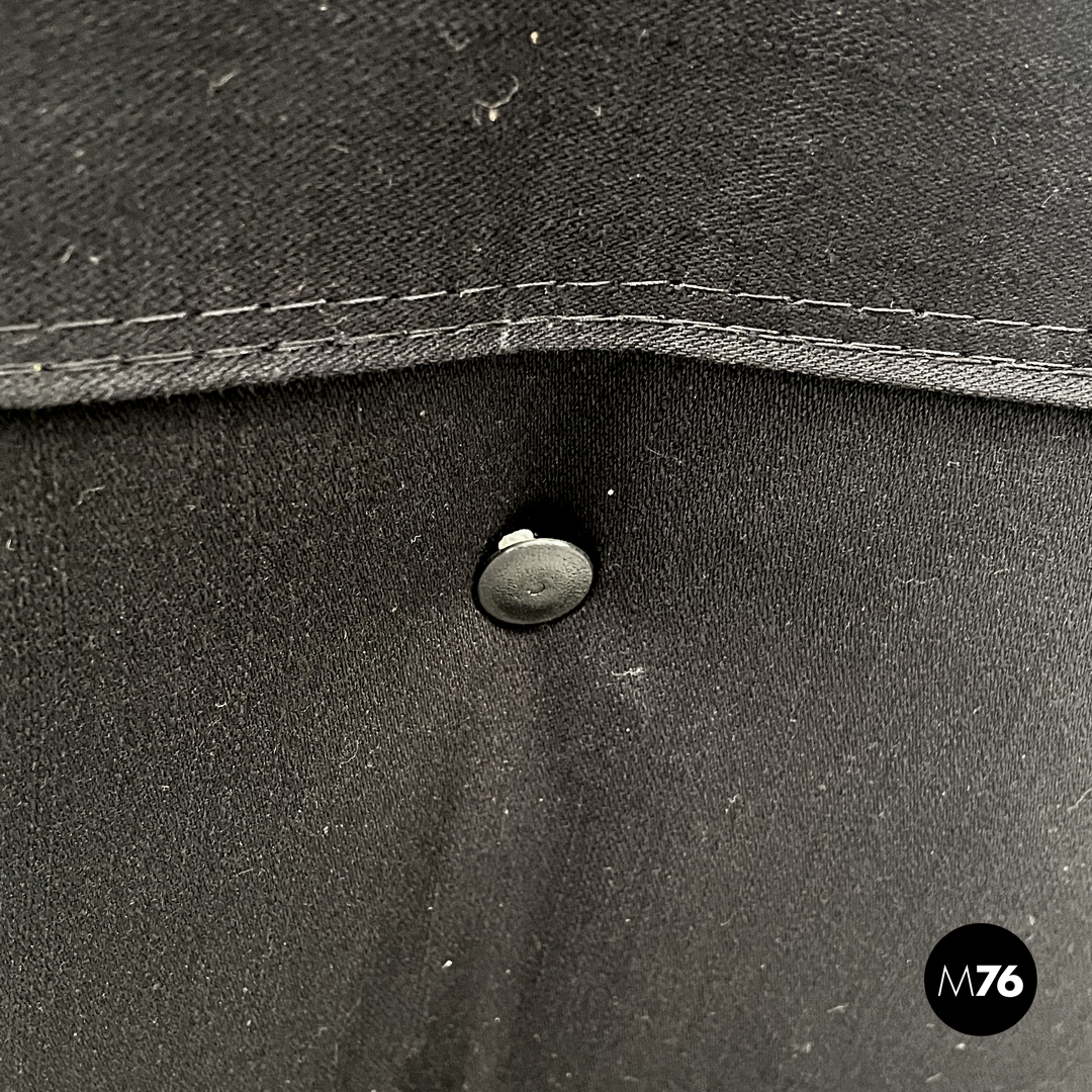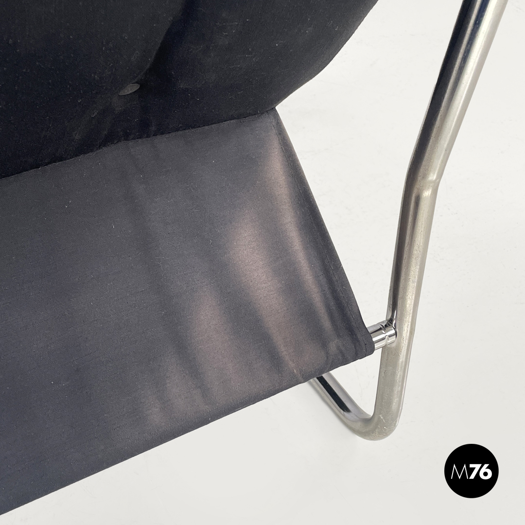 Buone condizioni, con segni dell’uso e del tempo ed ossidazioni. Su un cuscino è presente uno strappo della pelle sintetica e uno scolorimento sul tessuto nero.