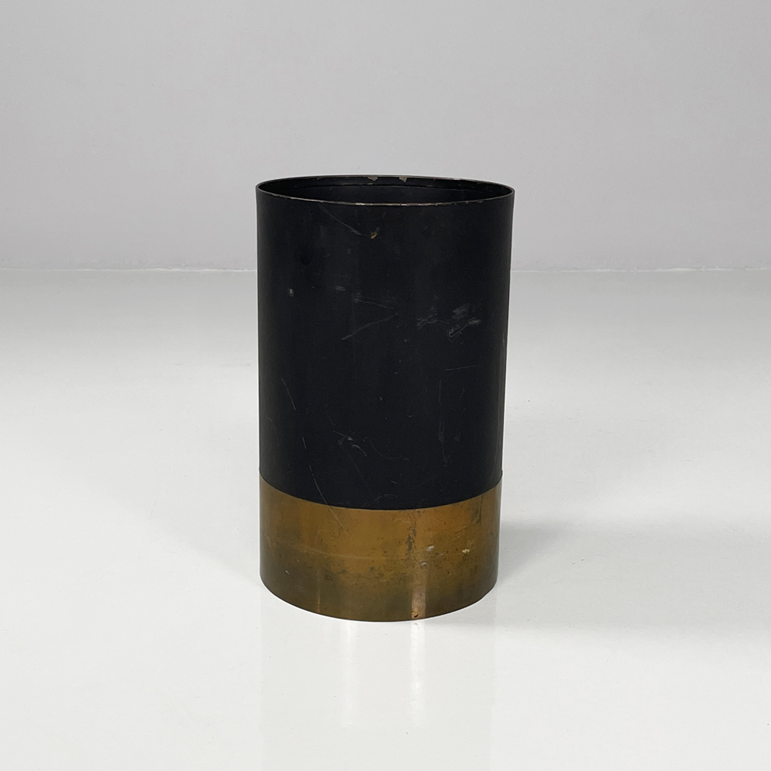 Portaombrelli modello Cartuccia a base tonda in metallo laccato e ottone lucido.