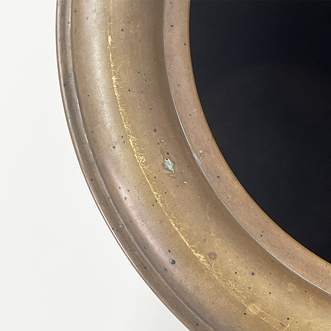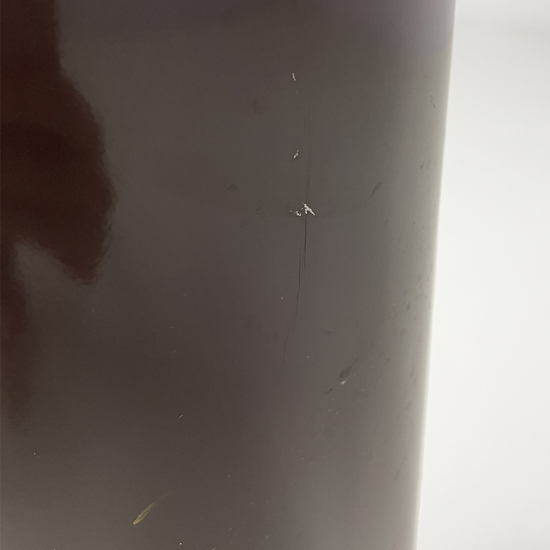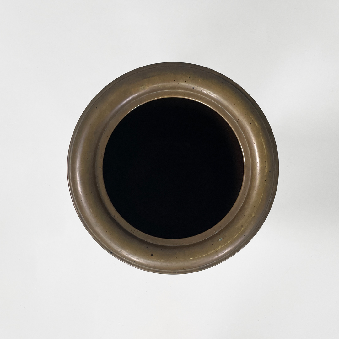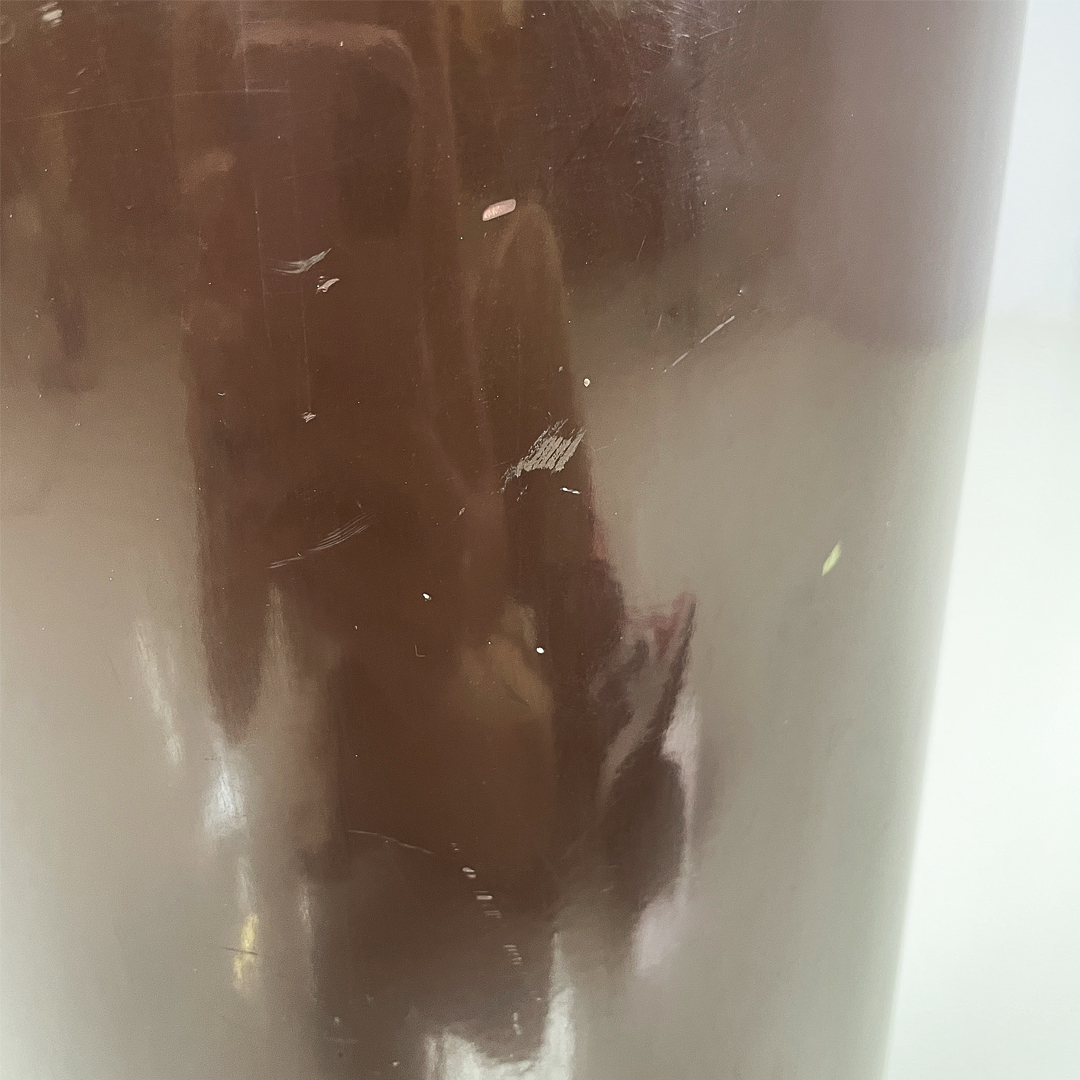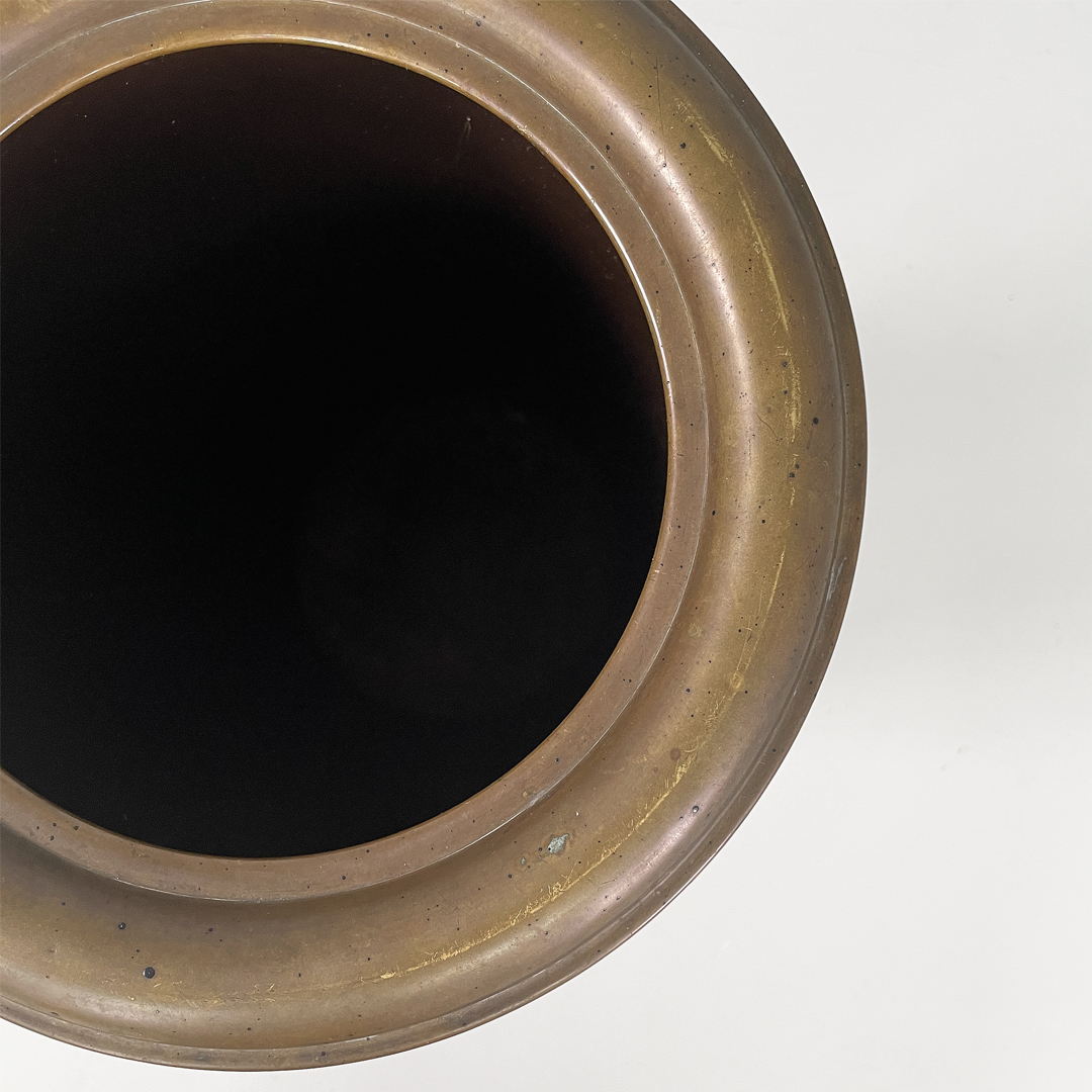 Portaombrelli o cestino a base tonda in bronzo e metallo smaltato marrone.