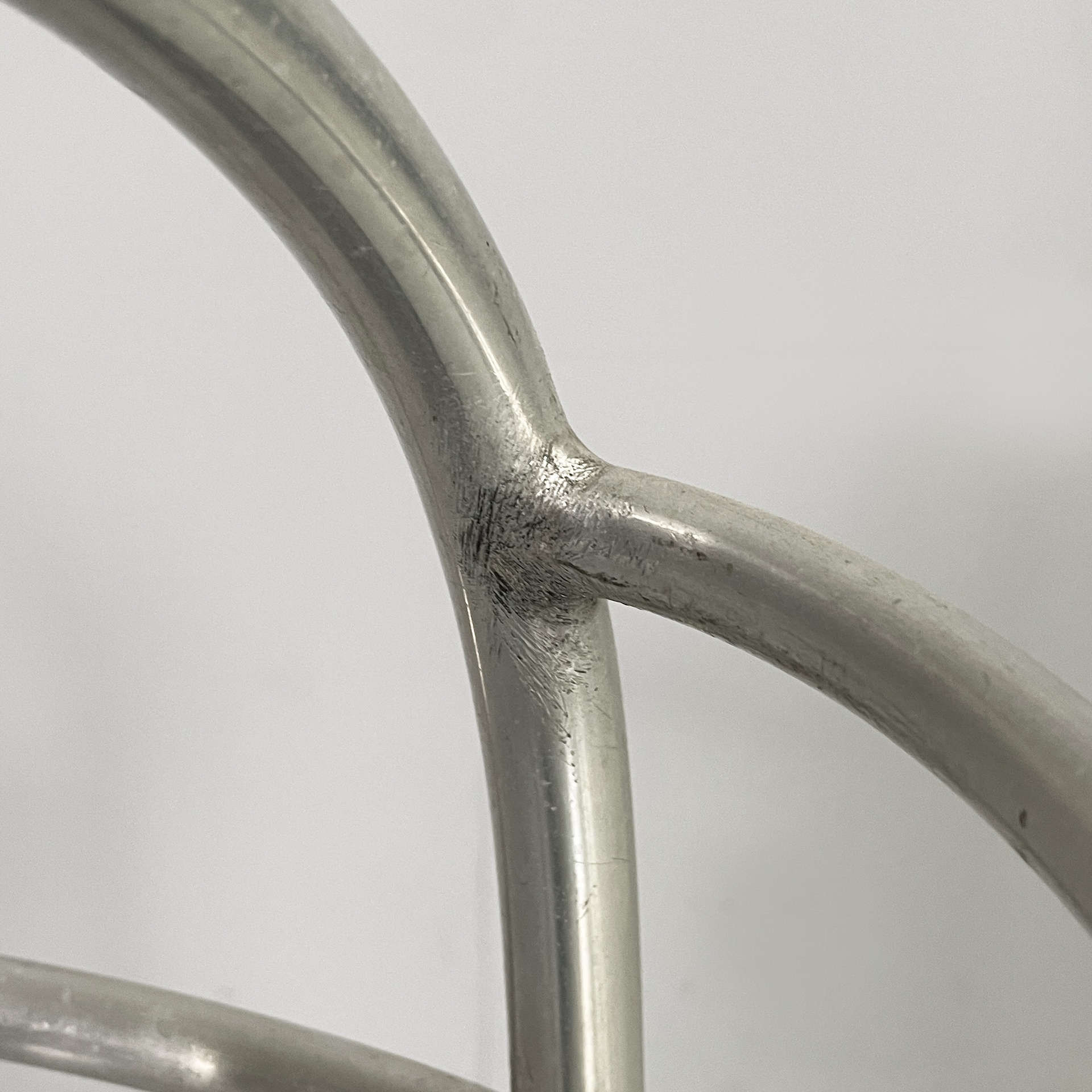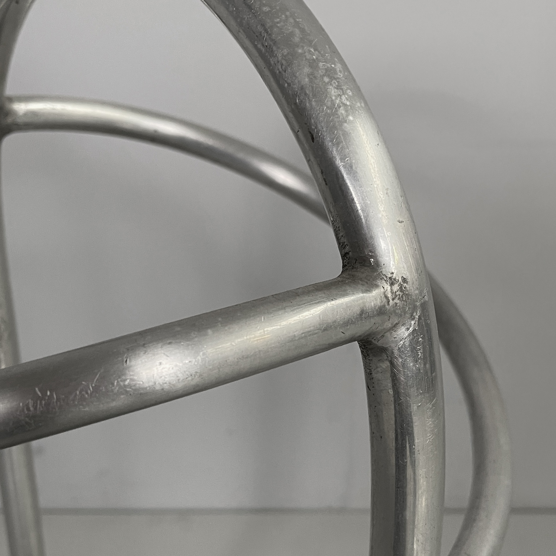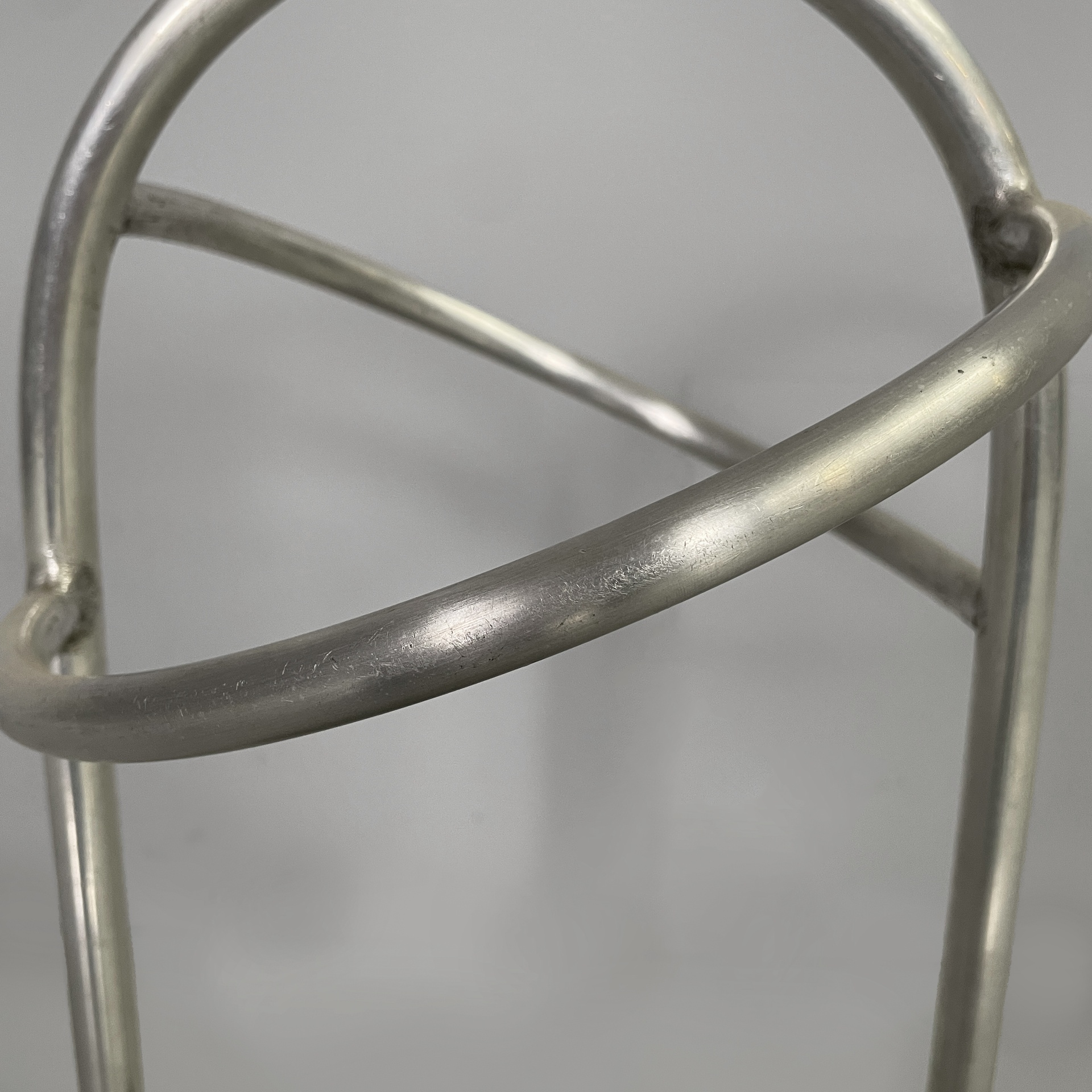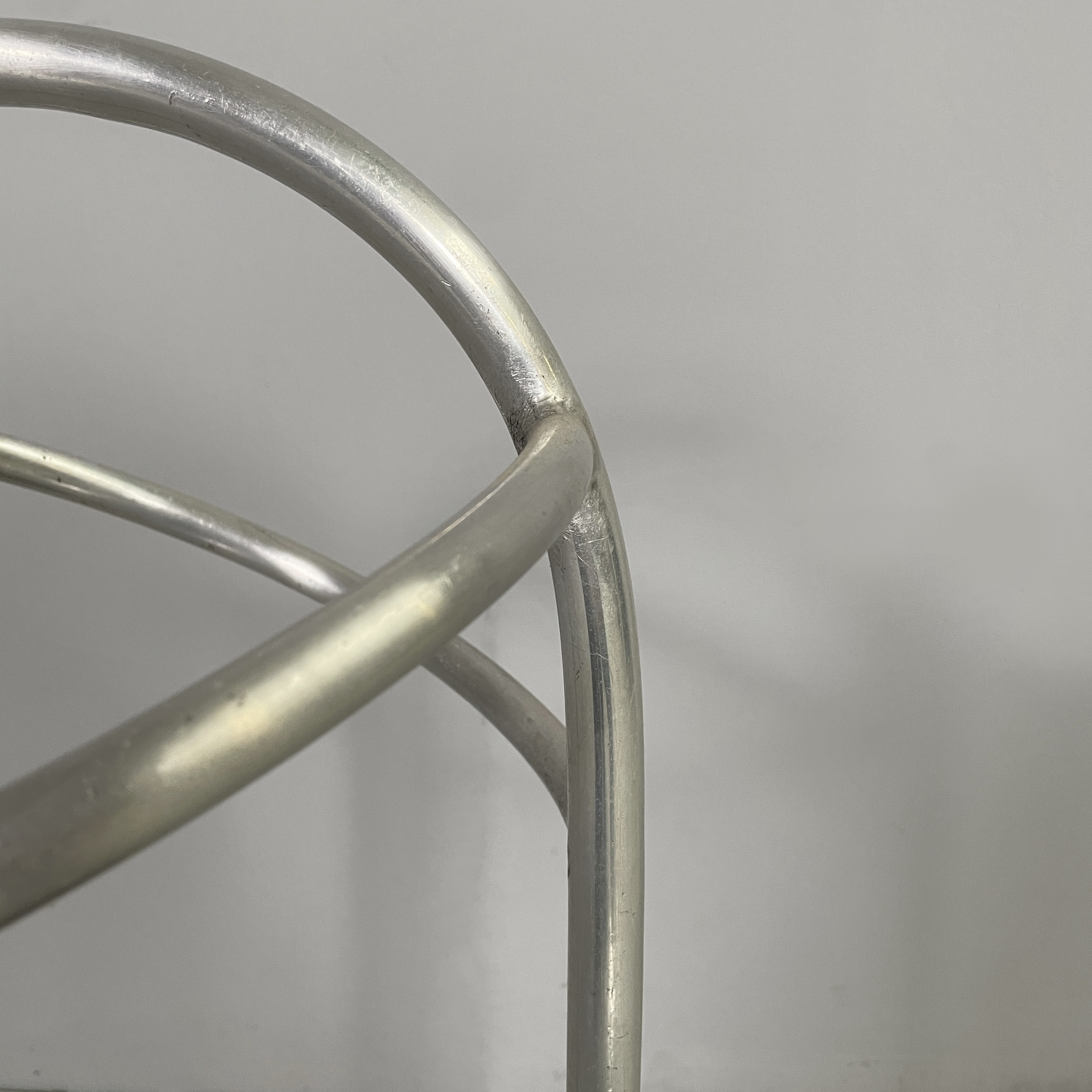 Portaombrelli a base tonda in metallo. La struttura è composta da tubolari di metallo curvati. La base è tonda. Art Deco.