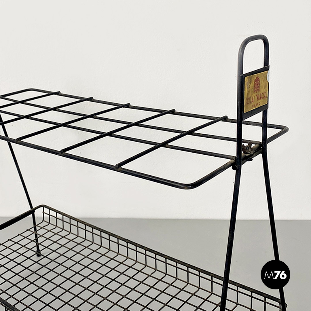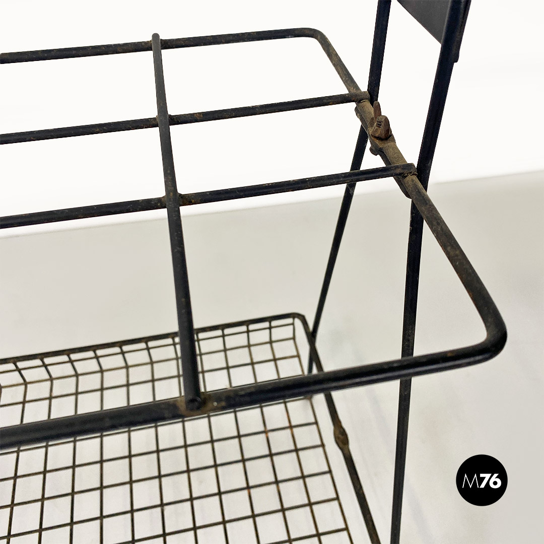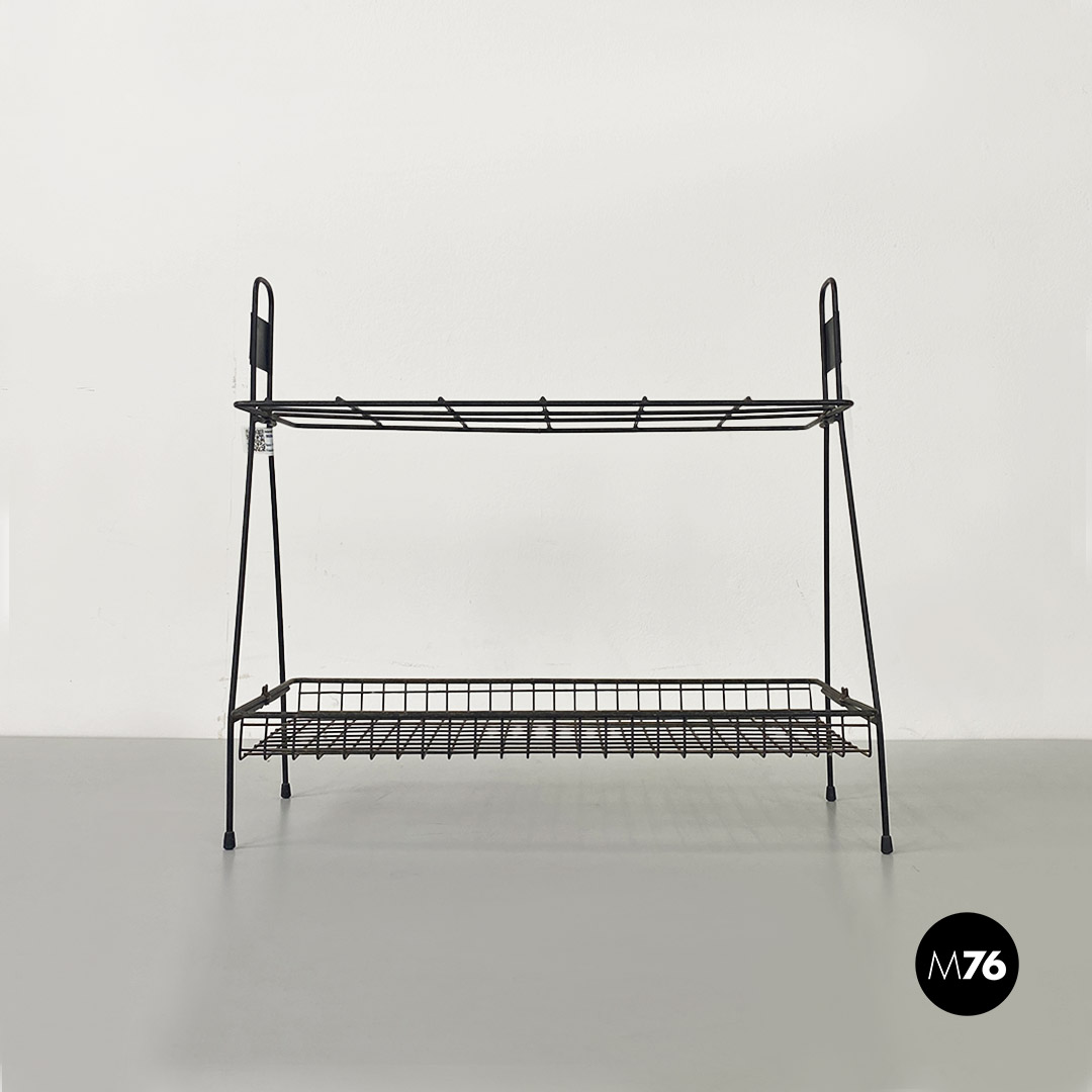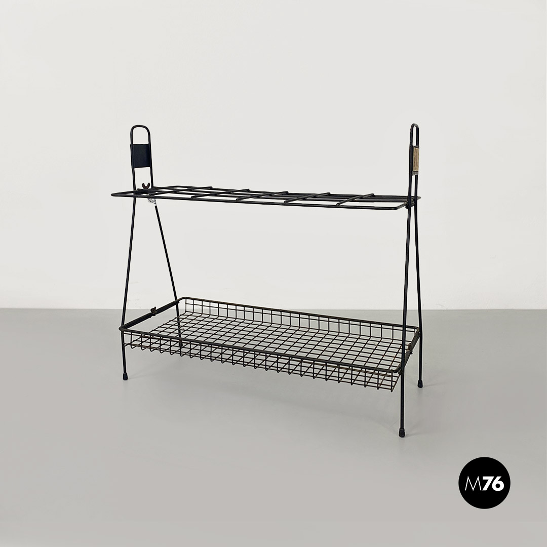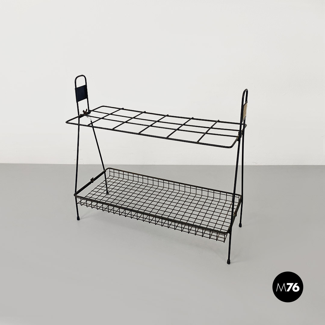 Portaombrelli in filo d’acciaio verniciato nero con due ripiani a griglia.