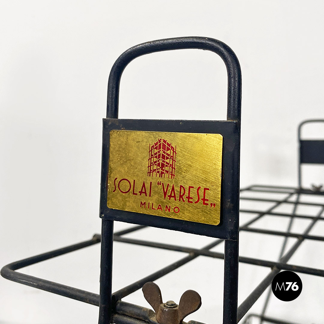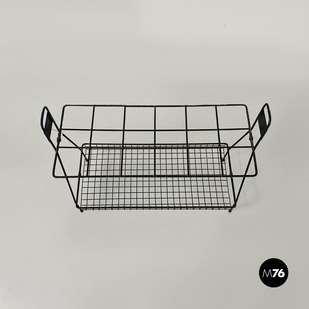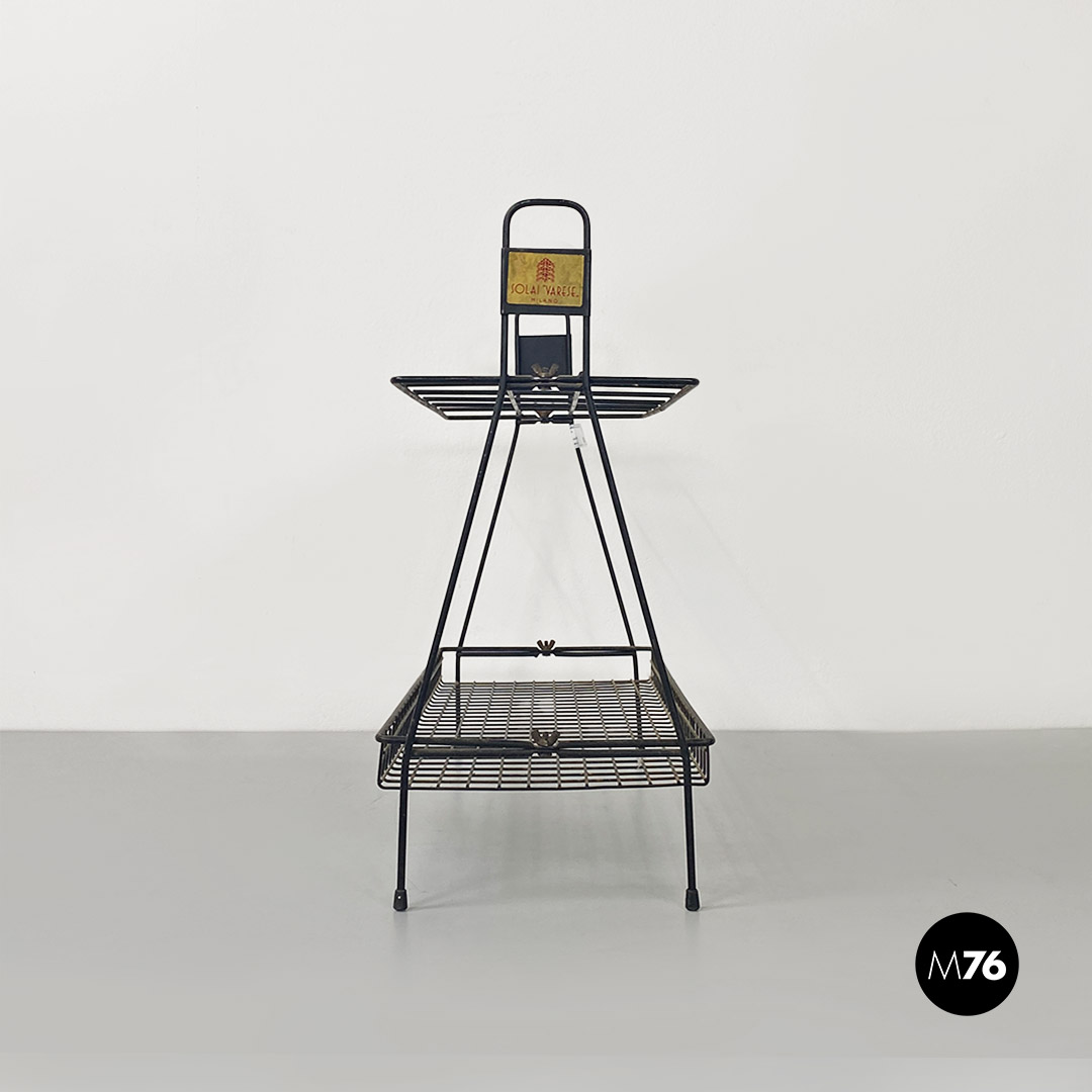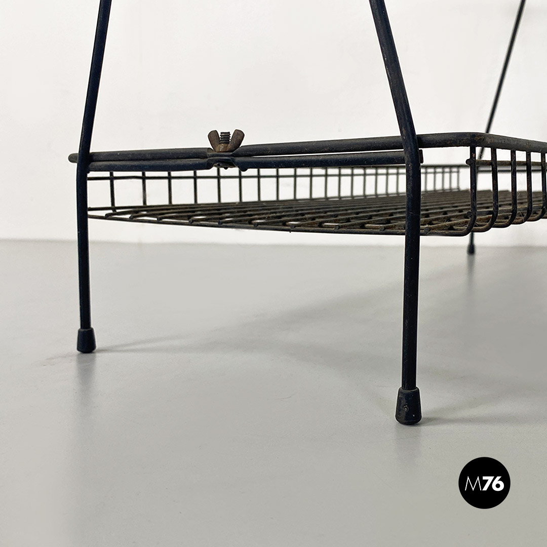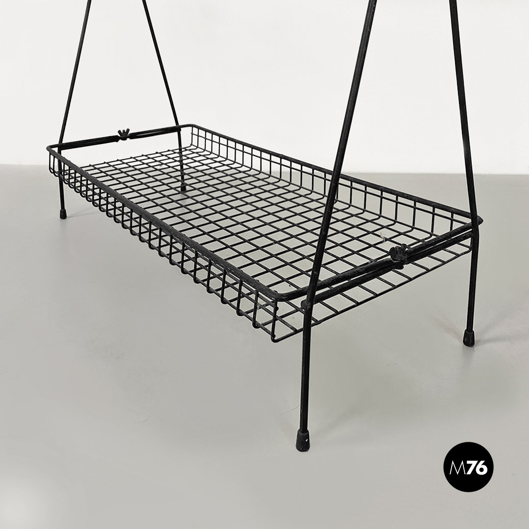 Portaombrelli in filo d’acciaio verniciato nero con due ripiani a griglia.