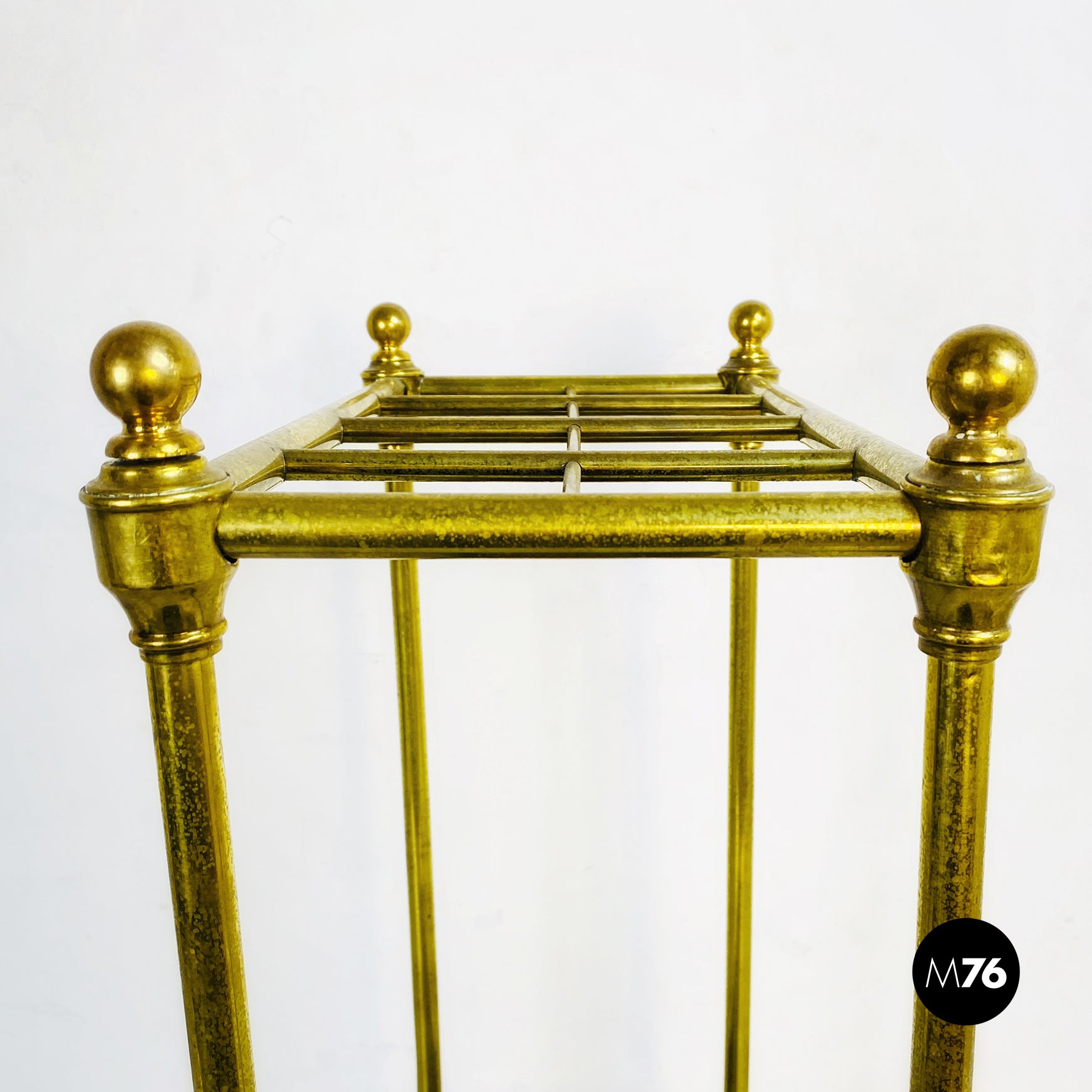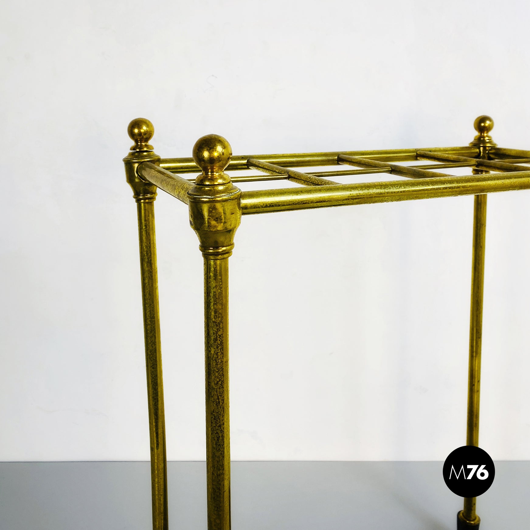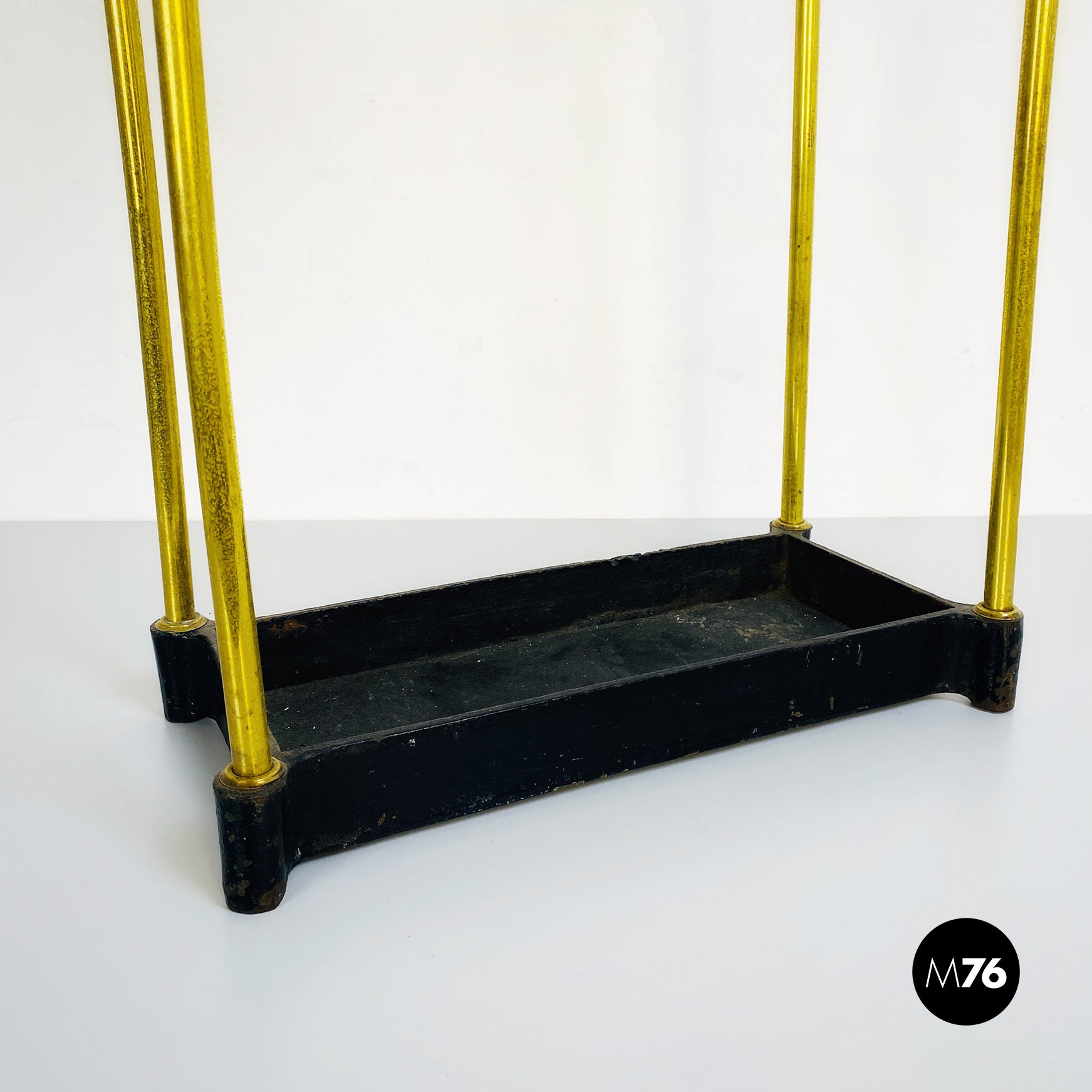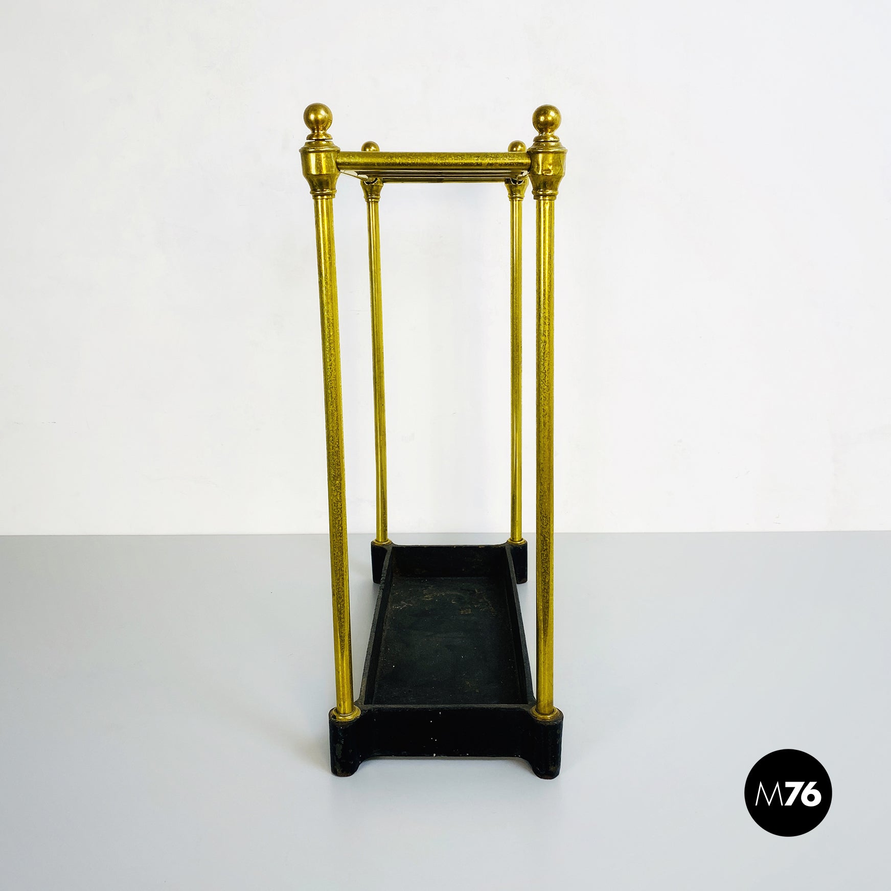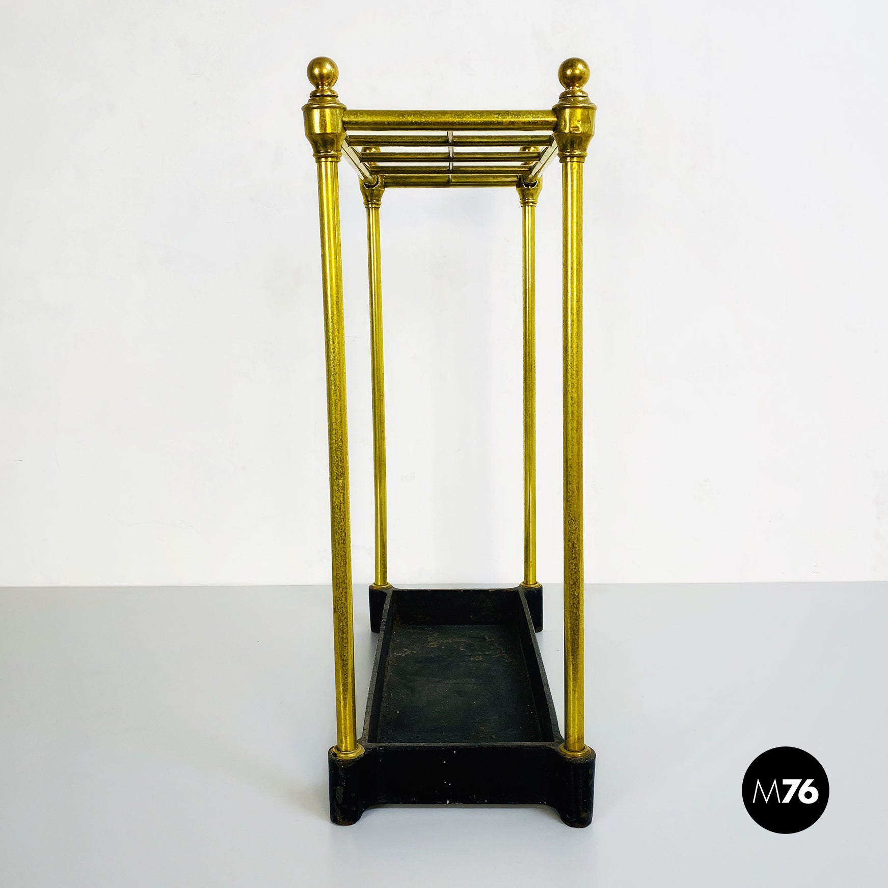 Portaombrelli a base rettangolare, composto da otto fori contenitivi creati da una griglia in ottone, base in ferro battuto nero e pomelli decorativi in ottone.