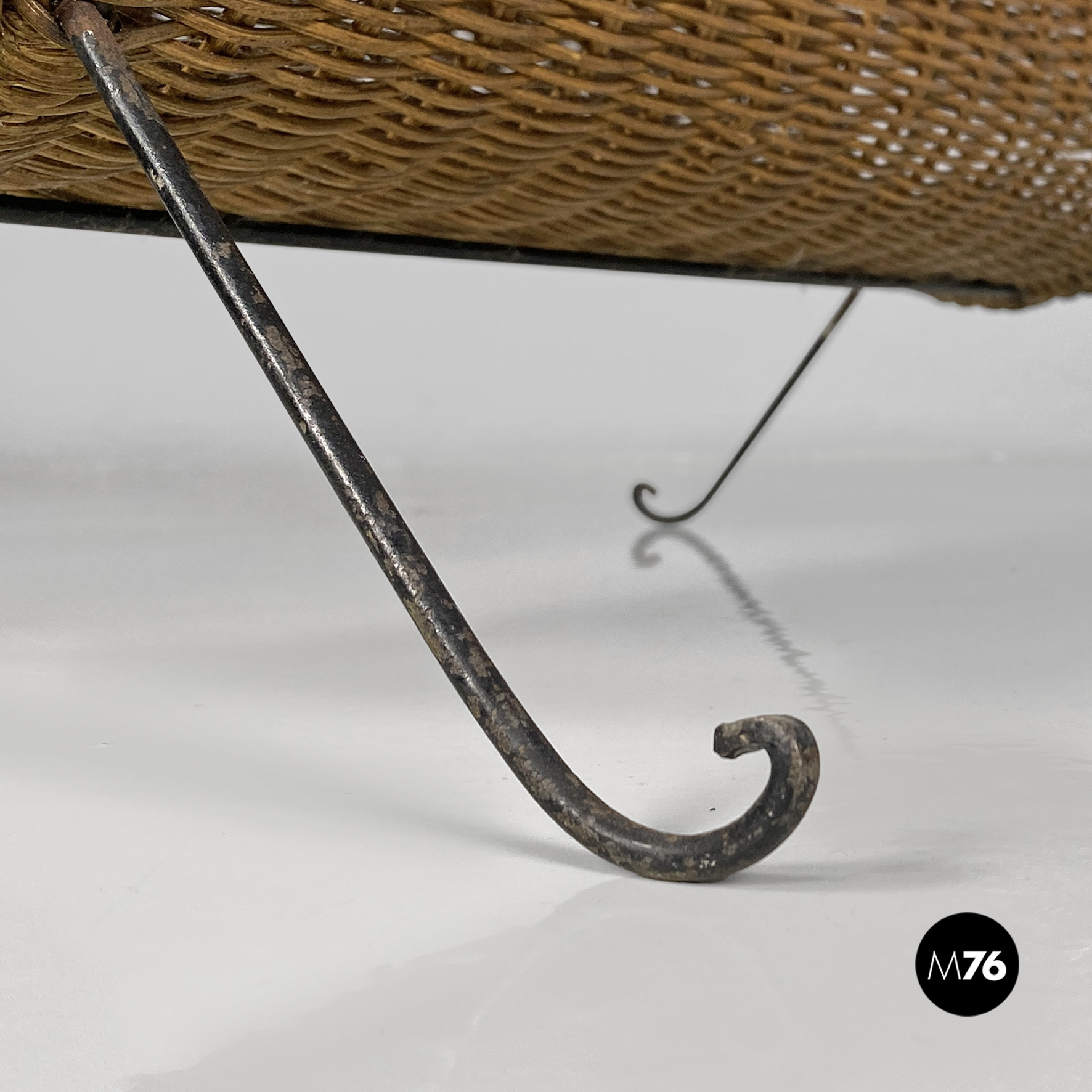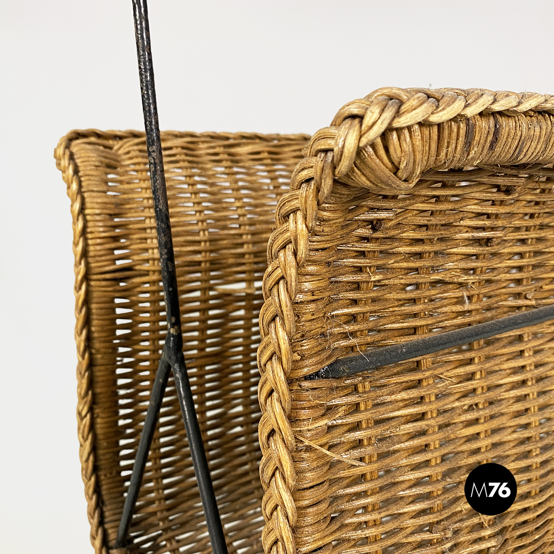Portariviste con struttura zampe e manico in ferro nero e parte contenitiva in rafia.