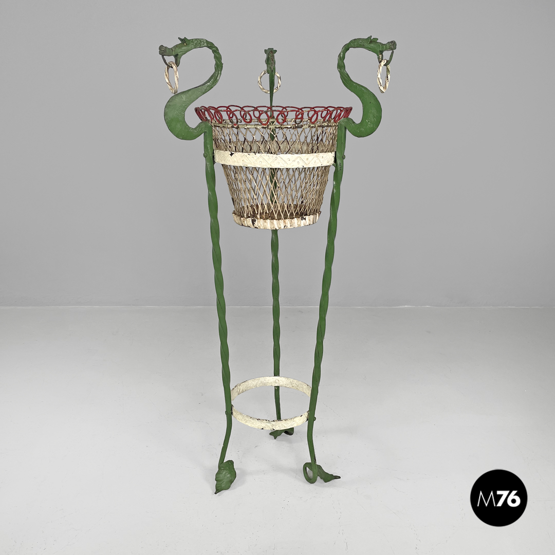 Portavasi in ferro battuto verde e bianco, 1900 ca.