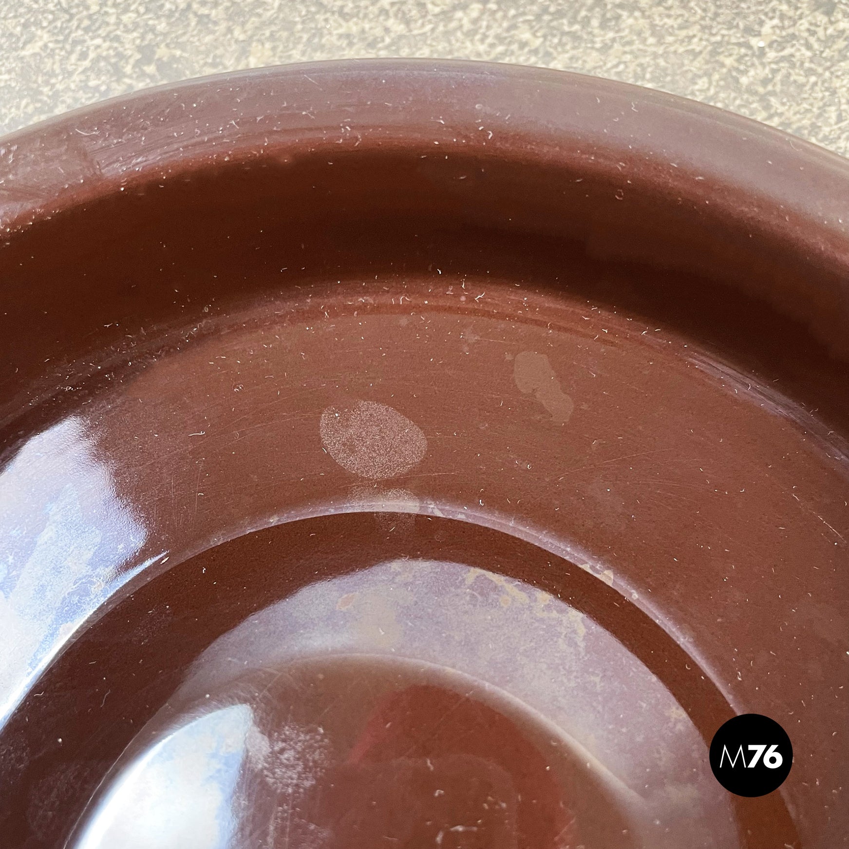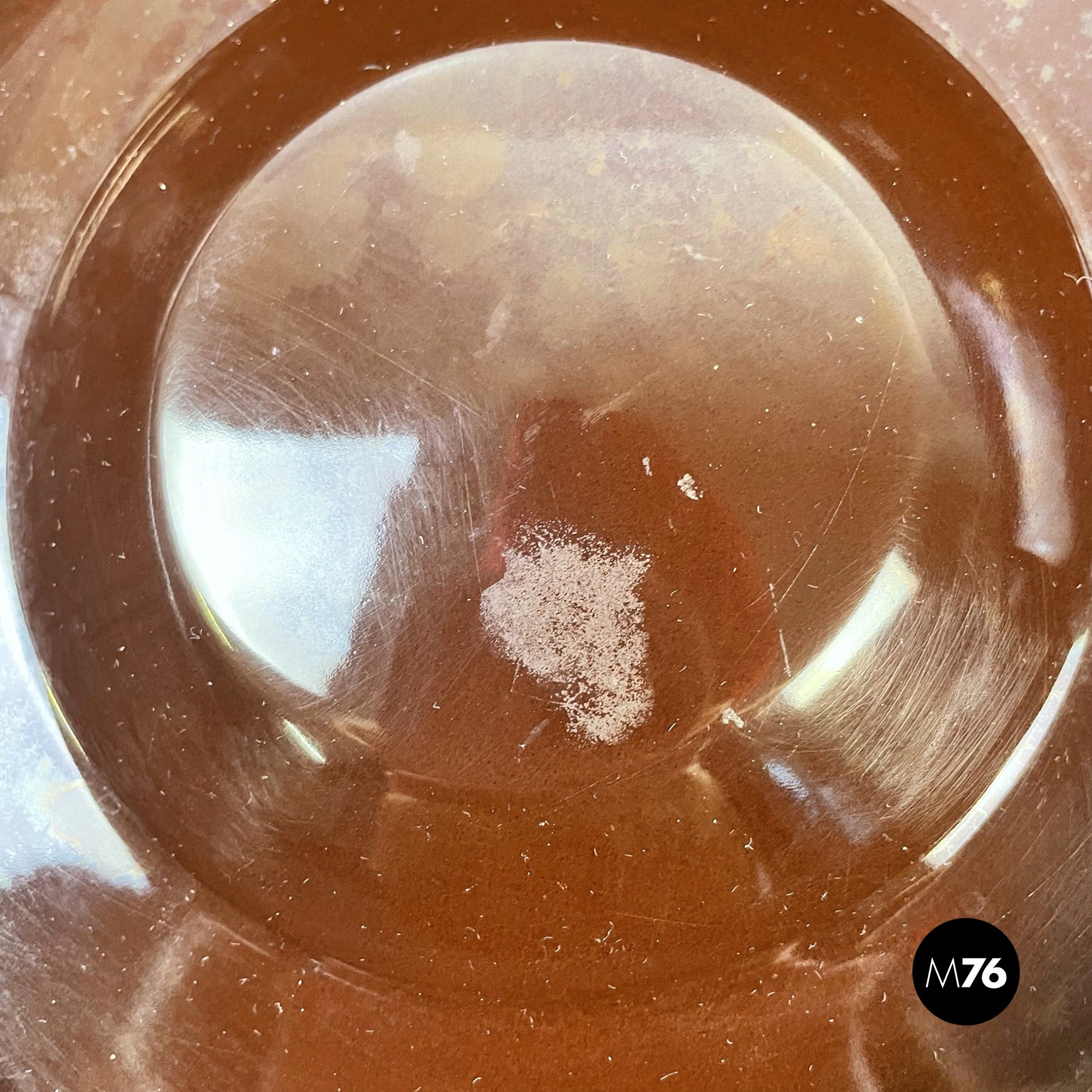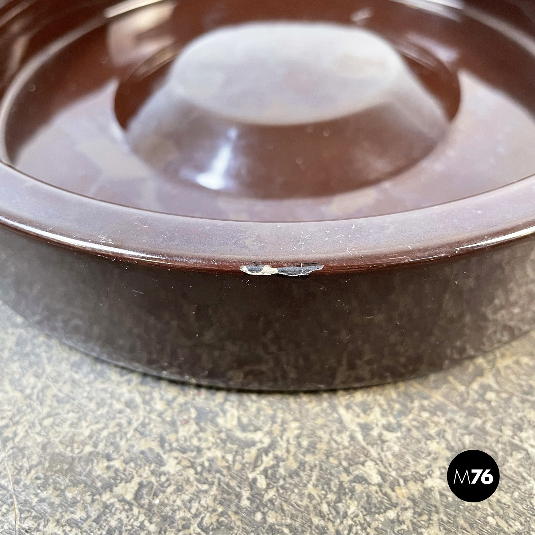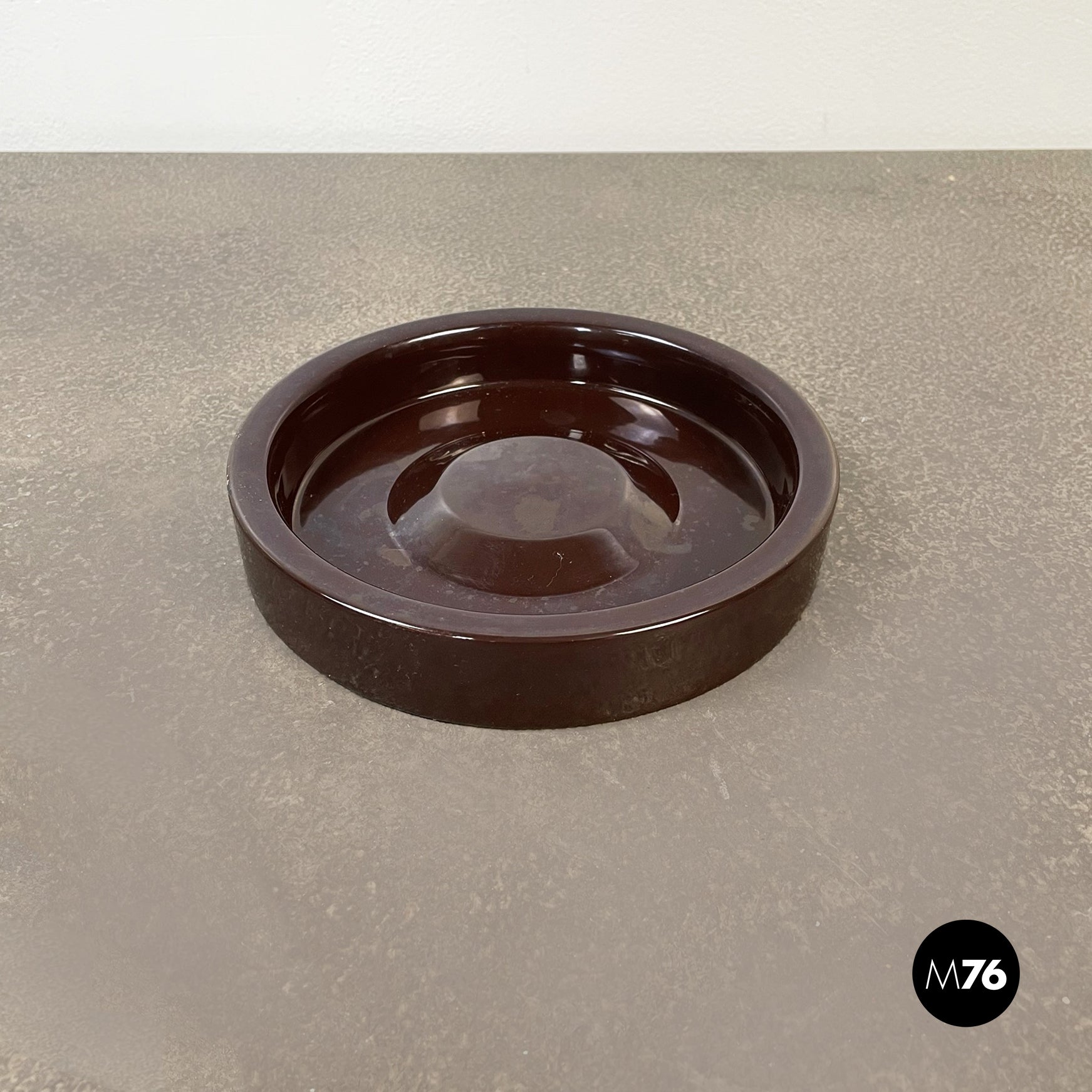 Posacenere da tavolo tondo in gres porcellanato marrone.