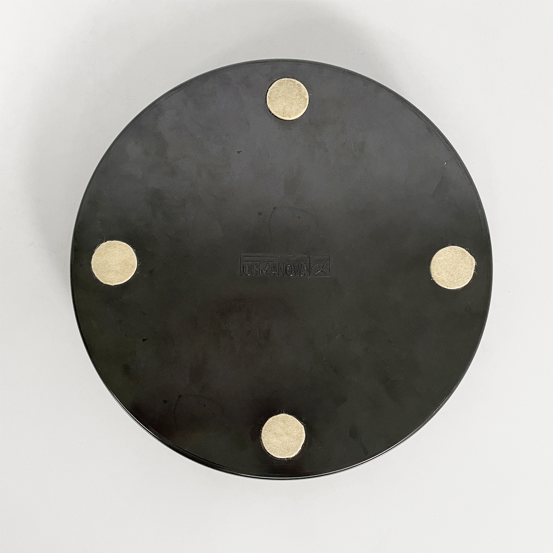 Posacenere da tavolo di forma tonda, realizzato in metallo e plastica. Utilizzabile come svuotatasche o centrotavola.