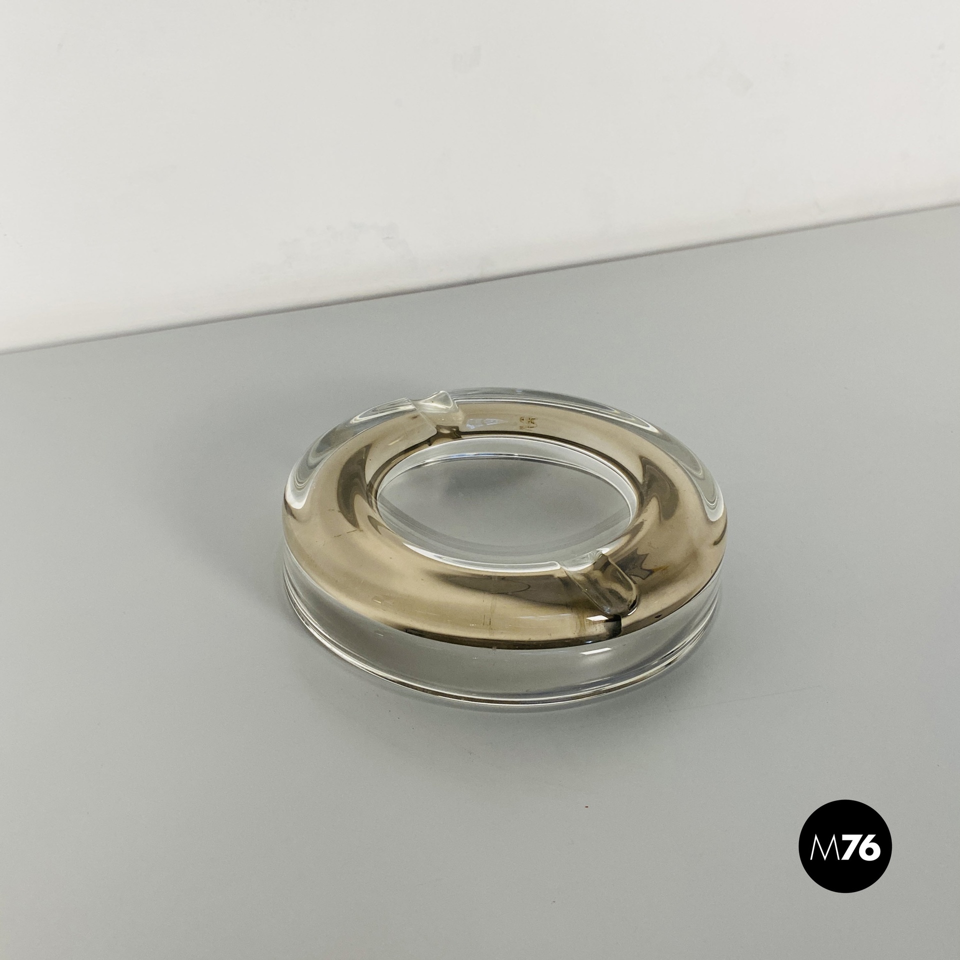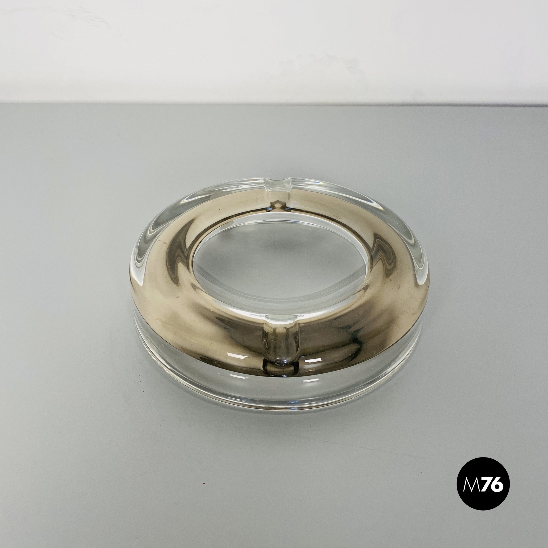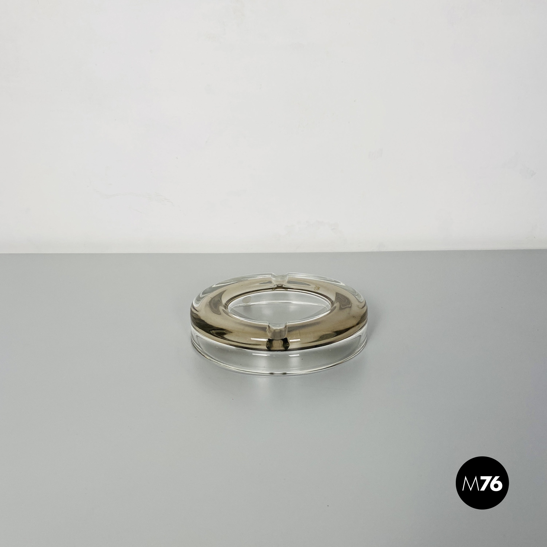 Posacenere da tavolo tondo in vetro con decorazione interna sui toni del grigio.