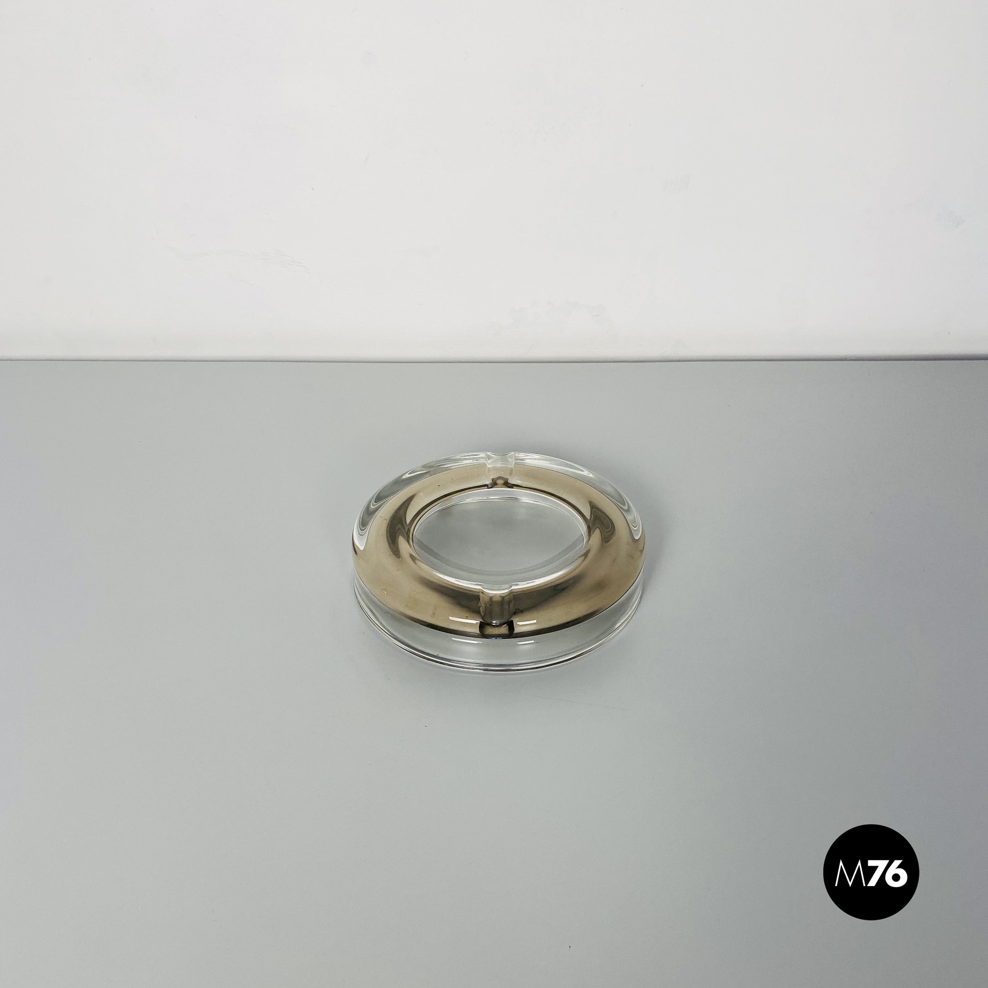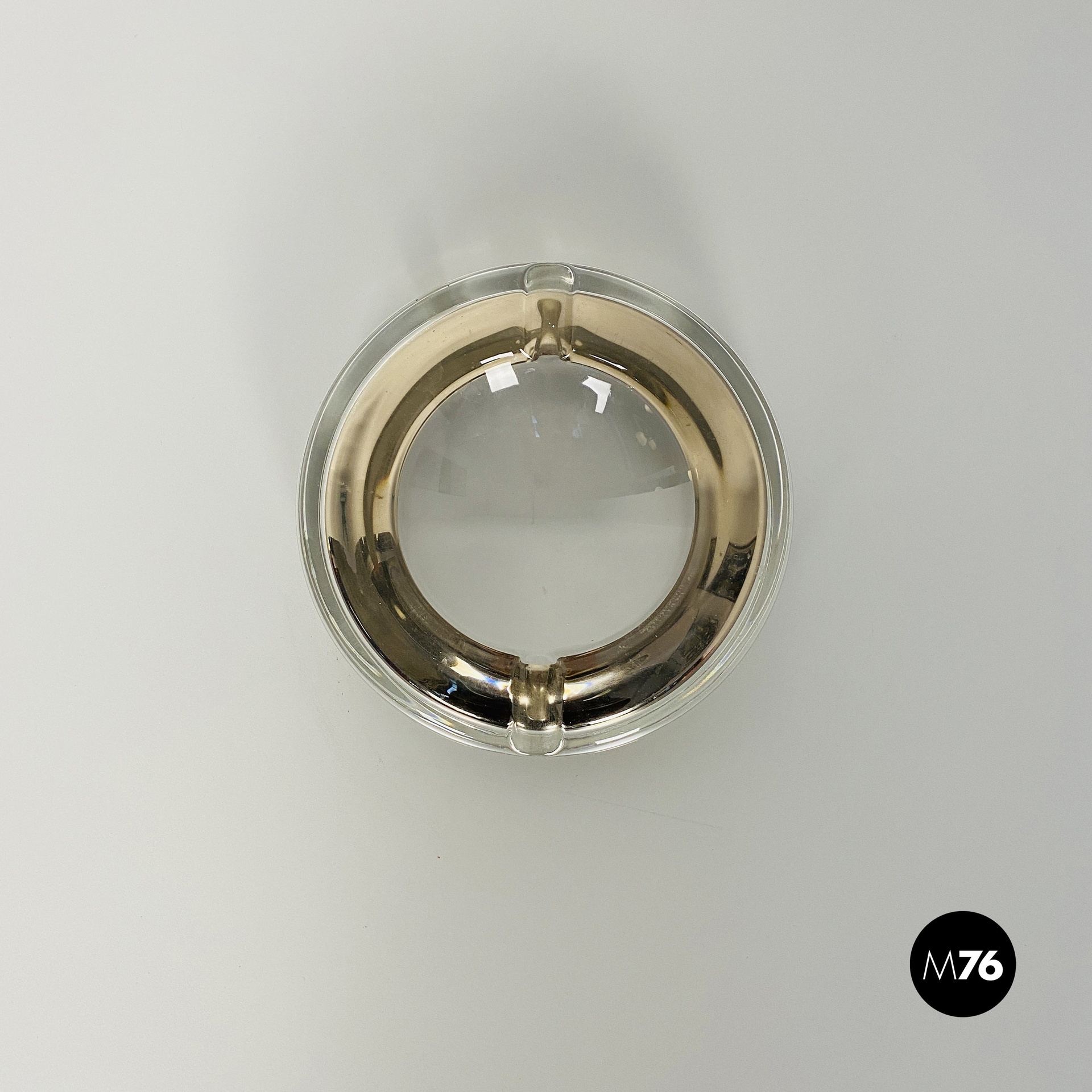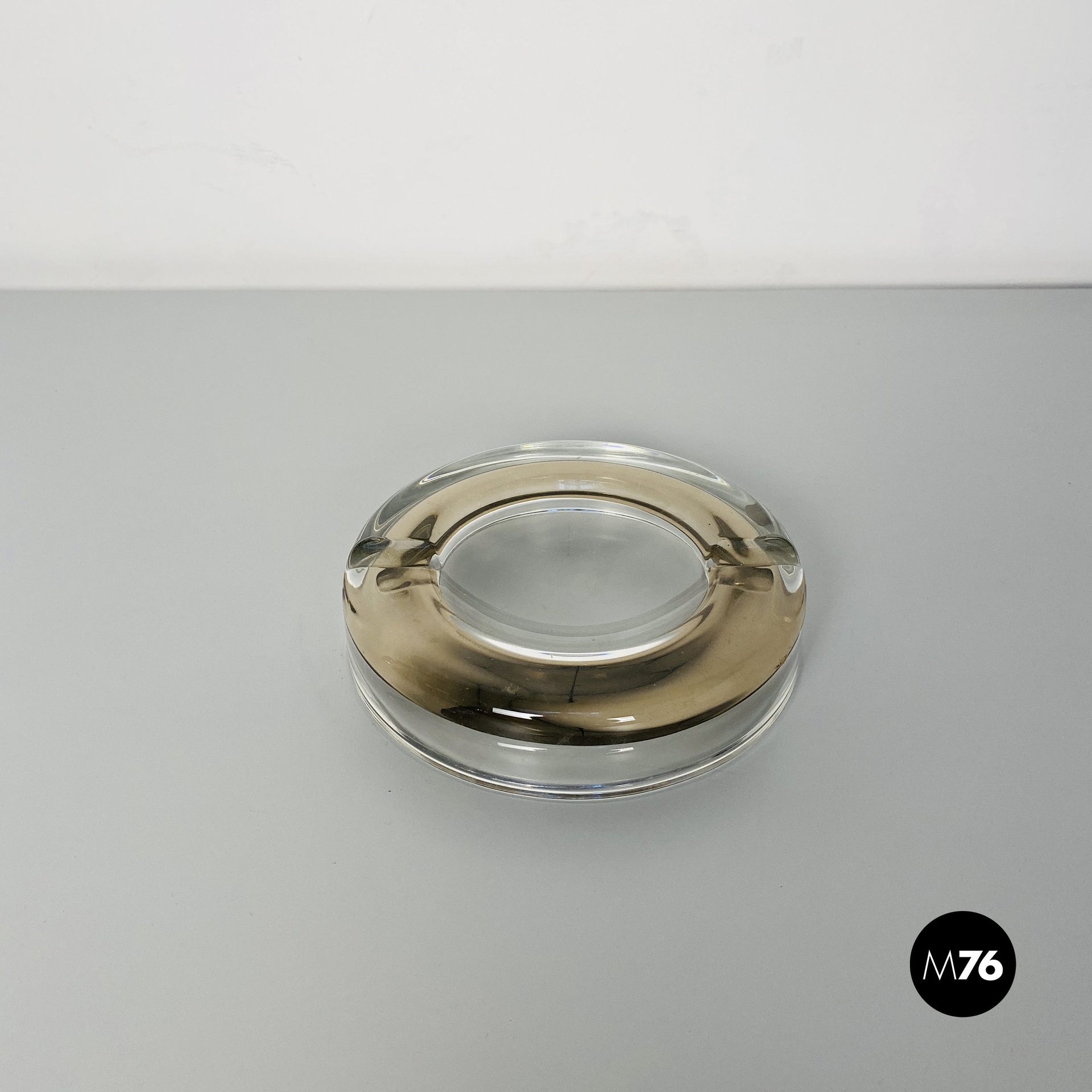 Posacenere da tavolo tondo in vetro con decorazione interna sui toni del grigio.