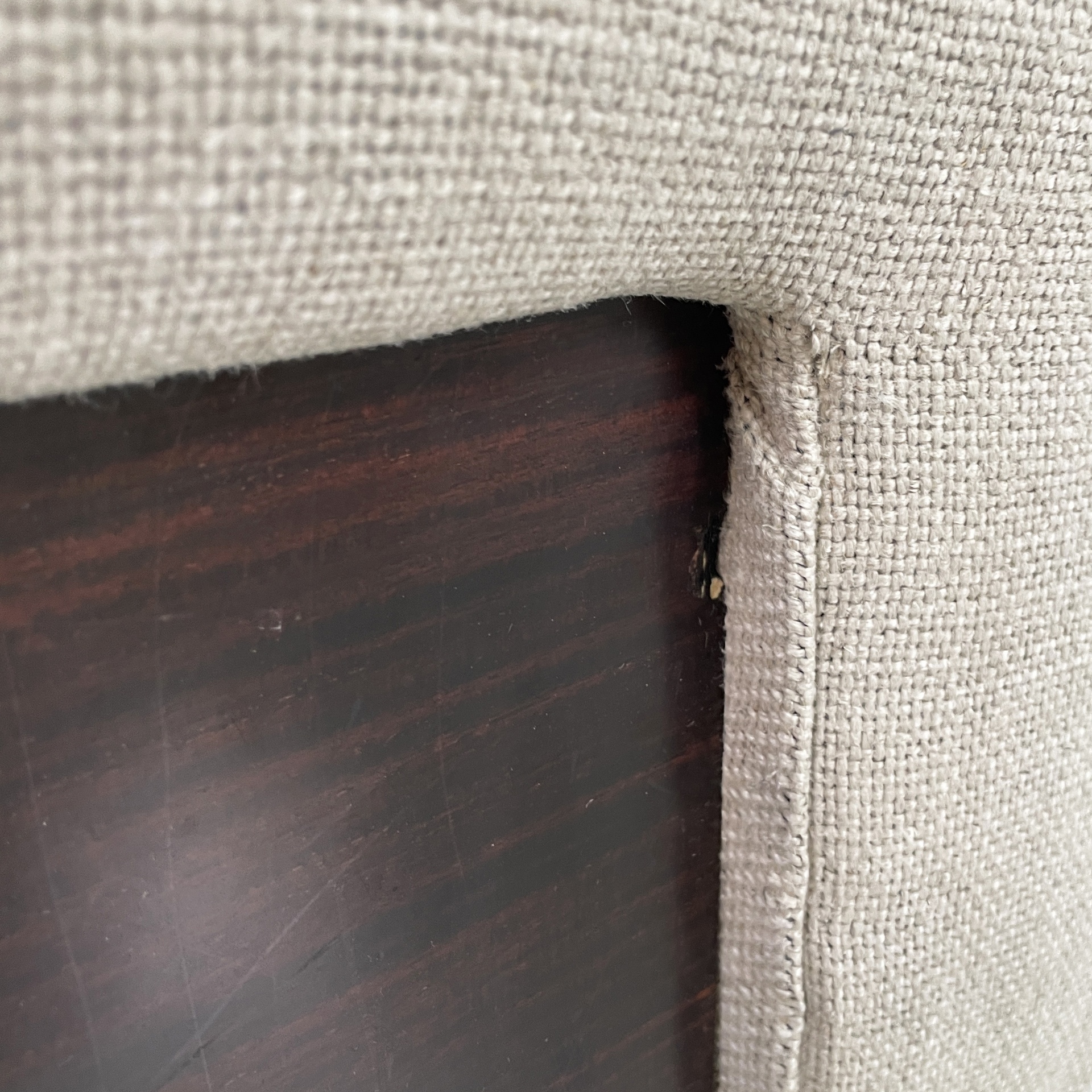 Buone condizioni, segni sparsi sul legno. Tappezzata a nuovo.