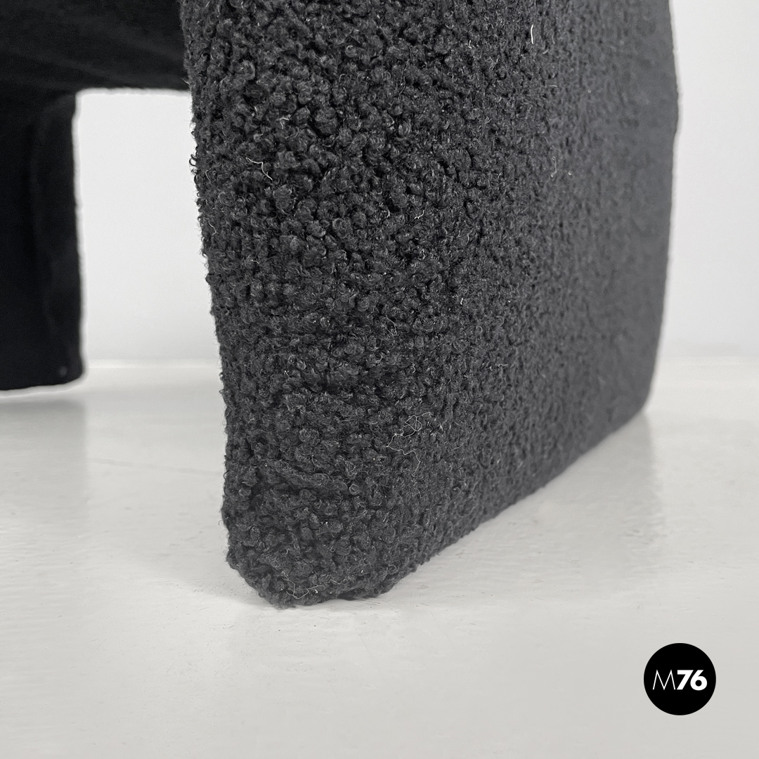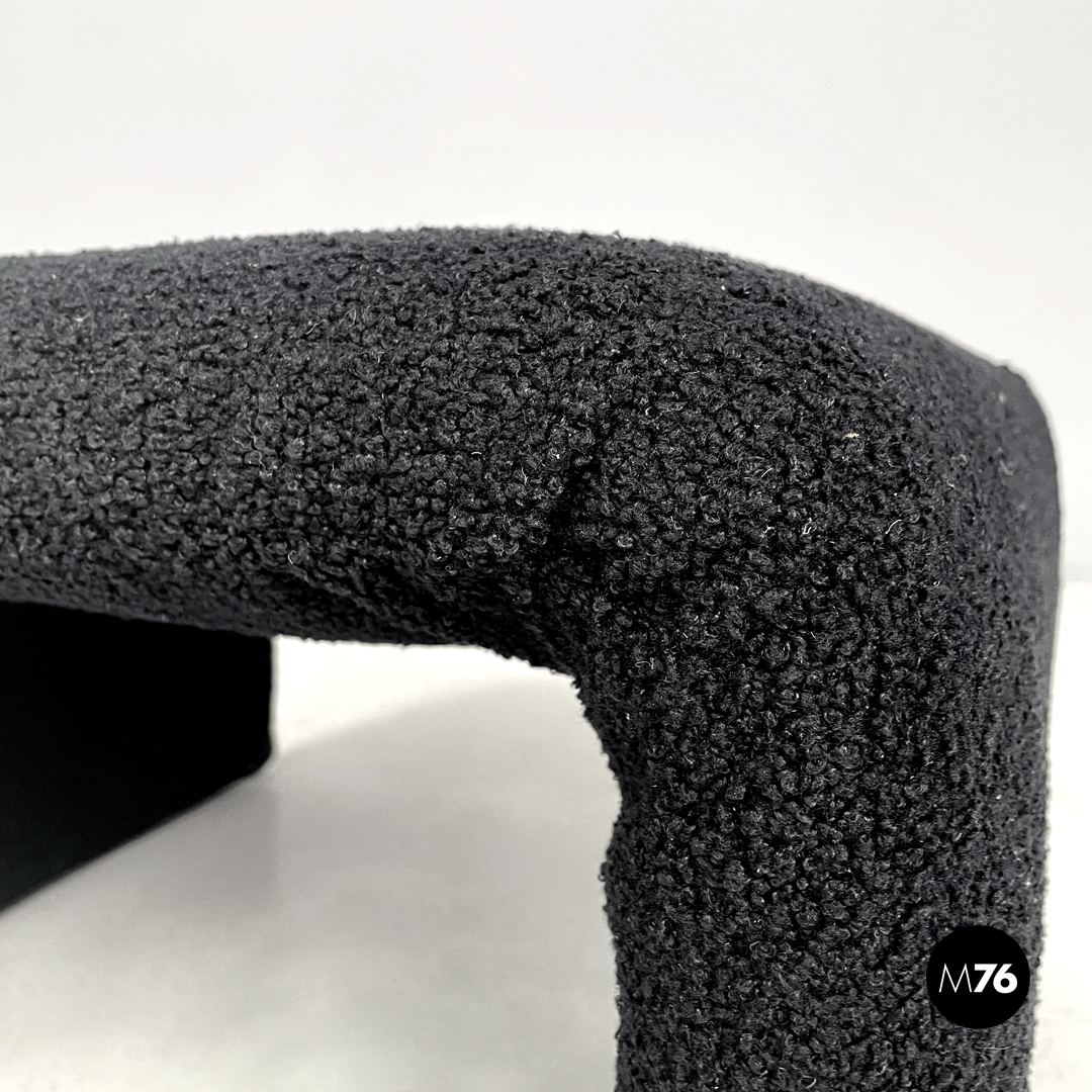 Pouf a base rettangolare in tessuto teddy nero. La struttura è data da un unico componente che si curva a formare le gambe e la seduta. Utilizzabile anche come poggiapiedi.