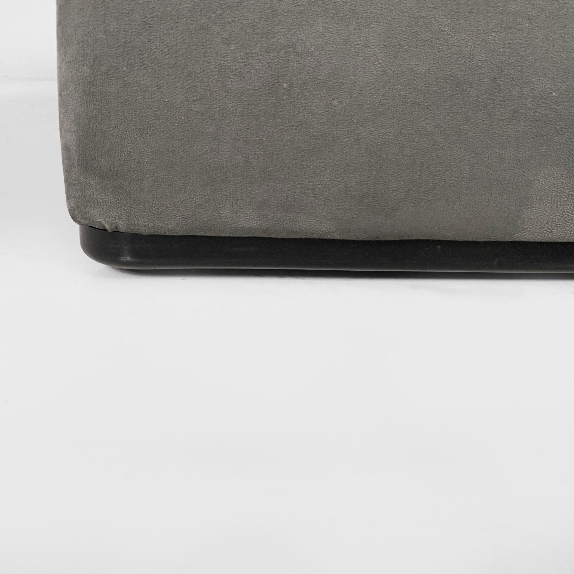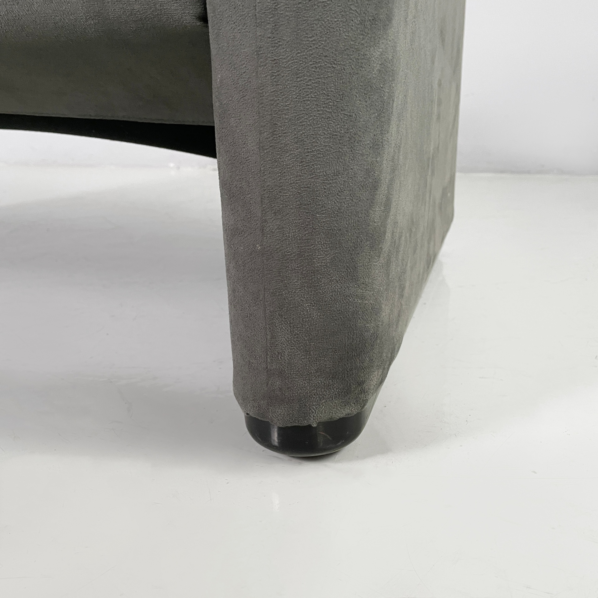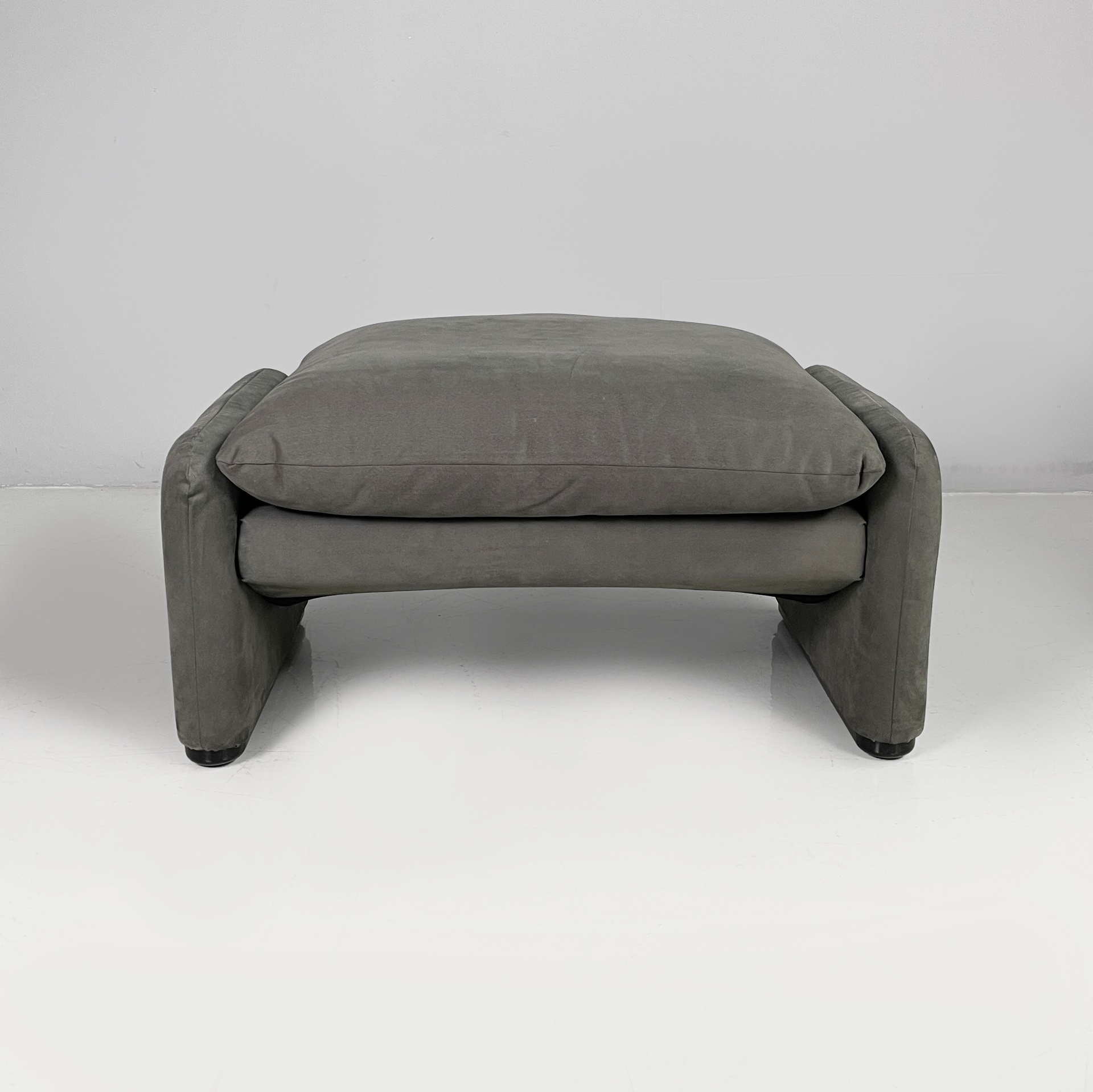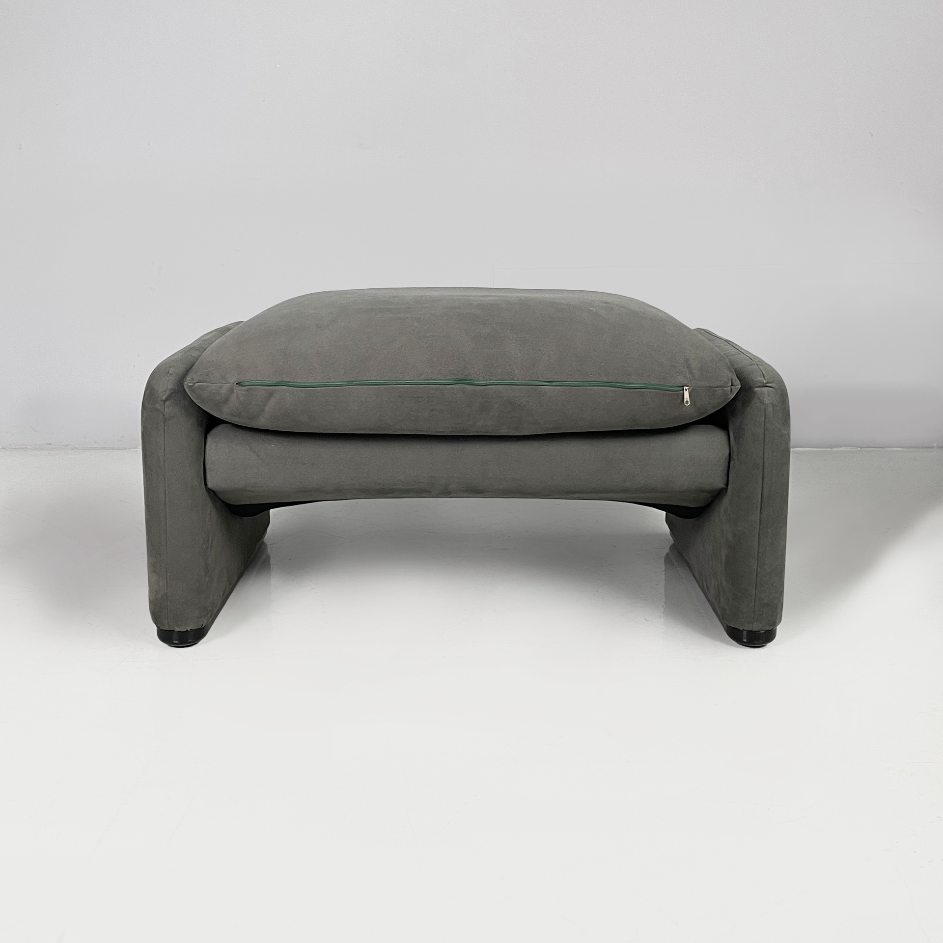 Pouf modello Maralunga in tessuto di velluto verde scuro-grigio. La seduta del poggiapiedi è composta da un cuscino squadrato. Le zampe ovali rivestite in velluto presentano piedini in plastica neri.