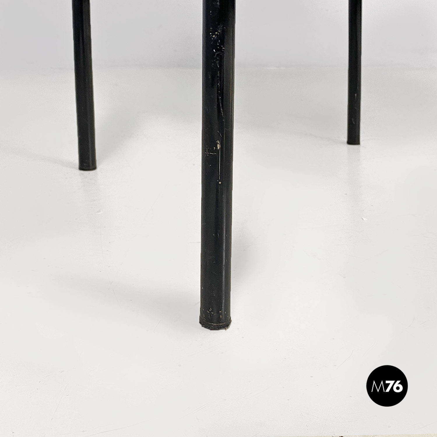 Pouf in tessuto peloso giallo e metallo nero, 1970 ca.