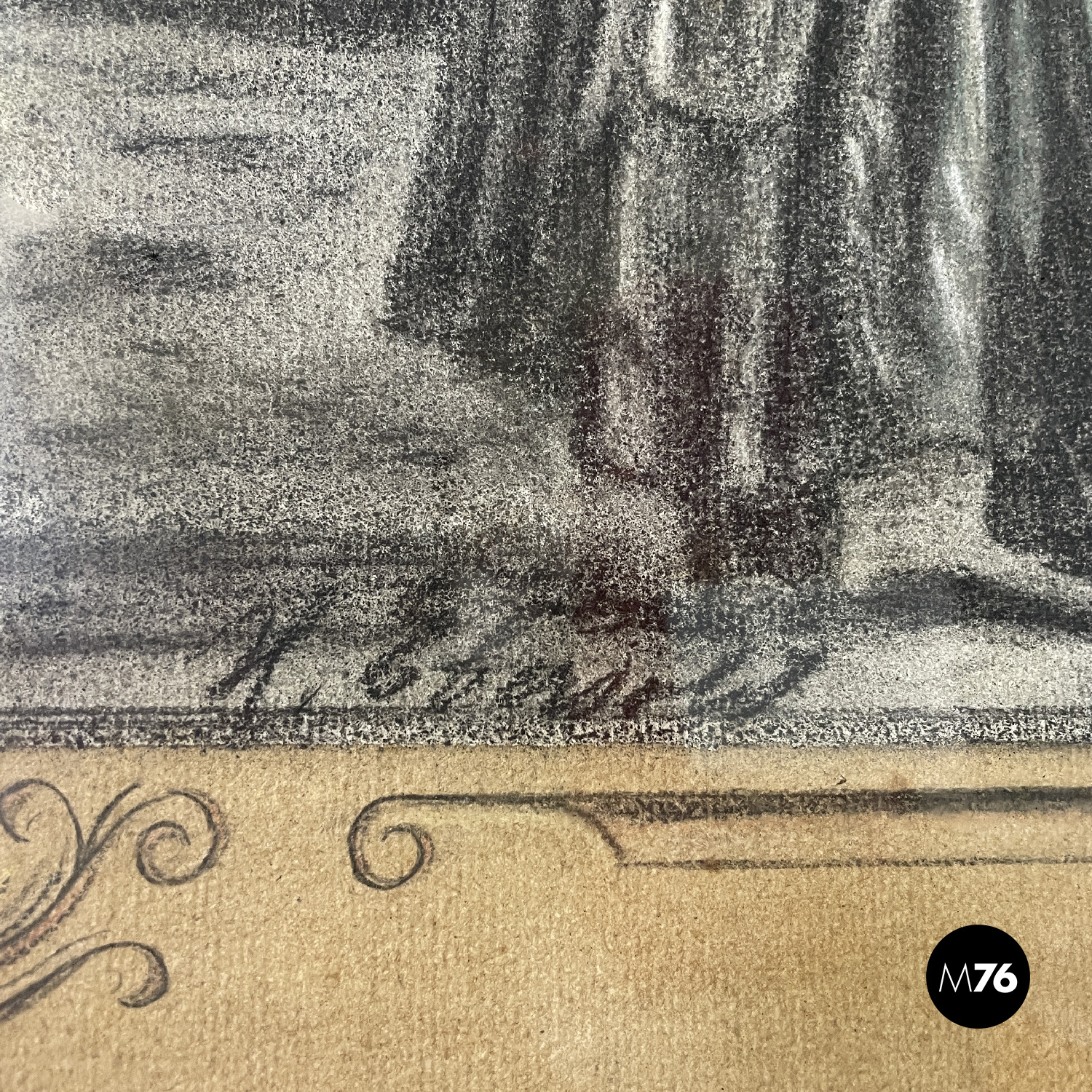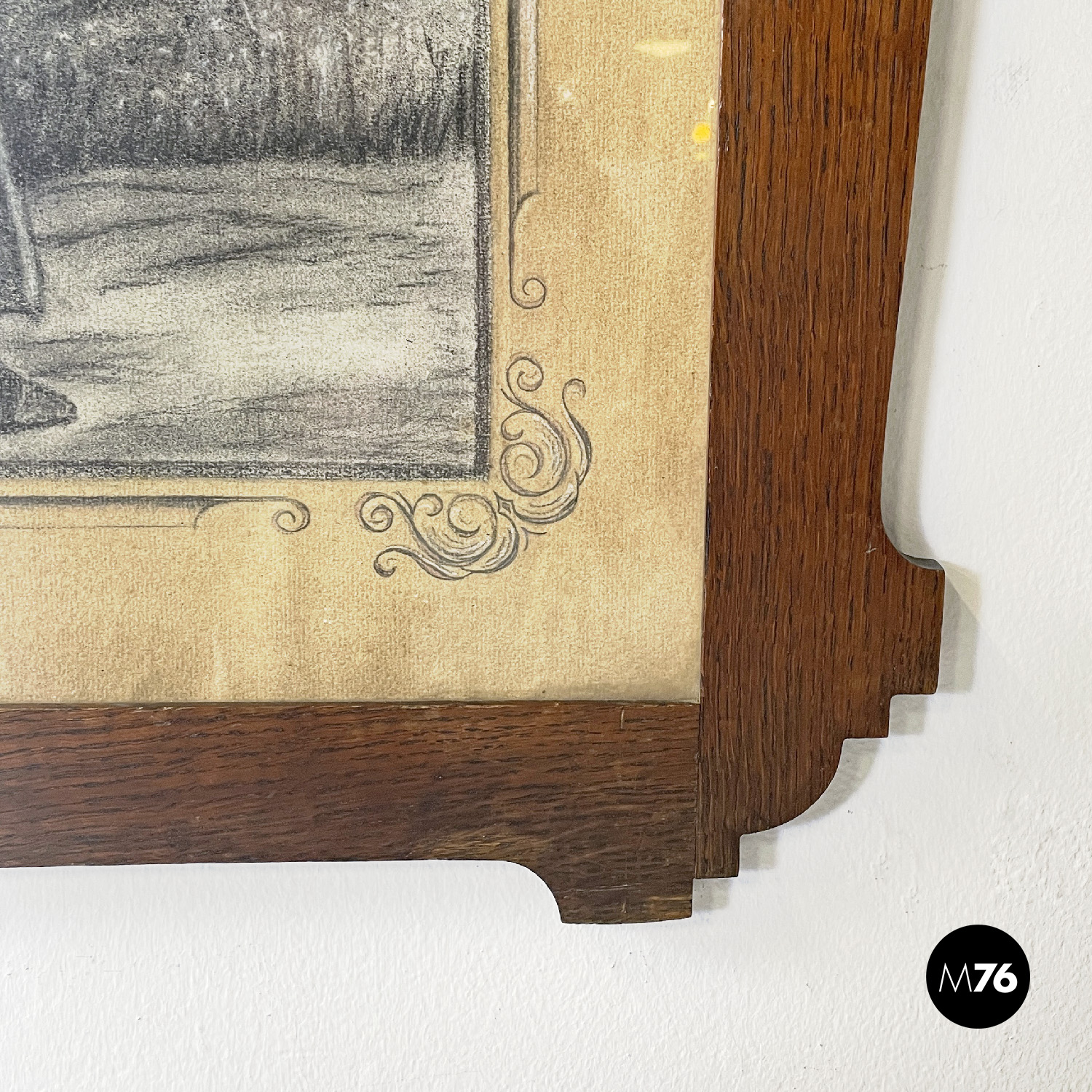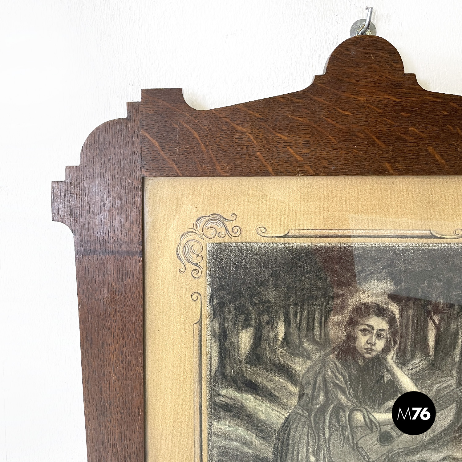 Quadro a carboncino con cornice in legno, 1930 ca.