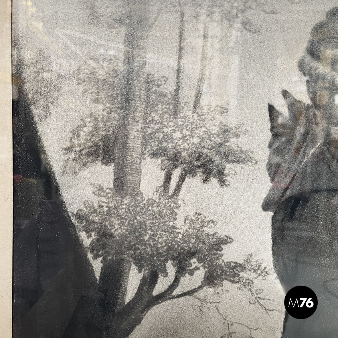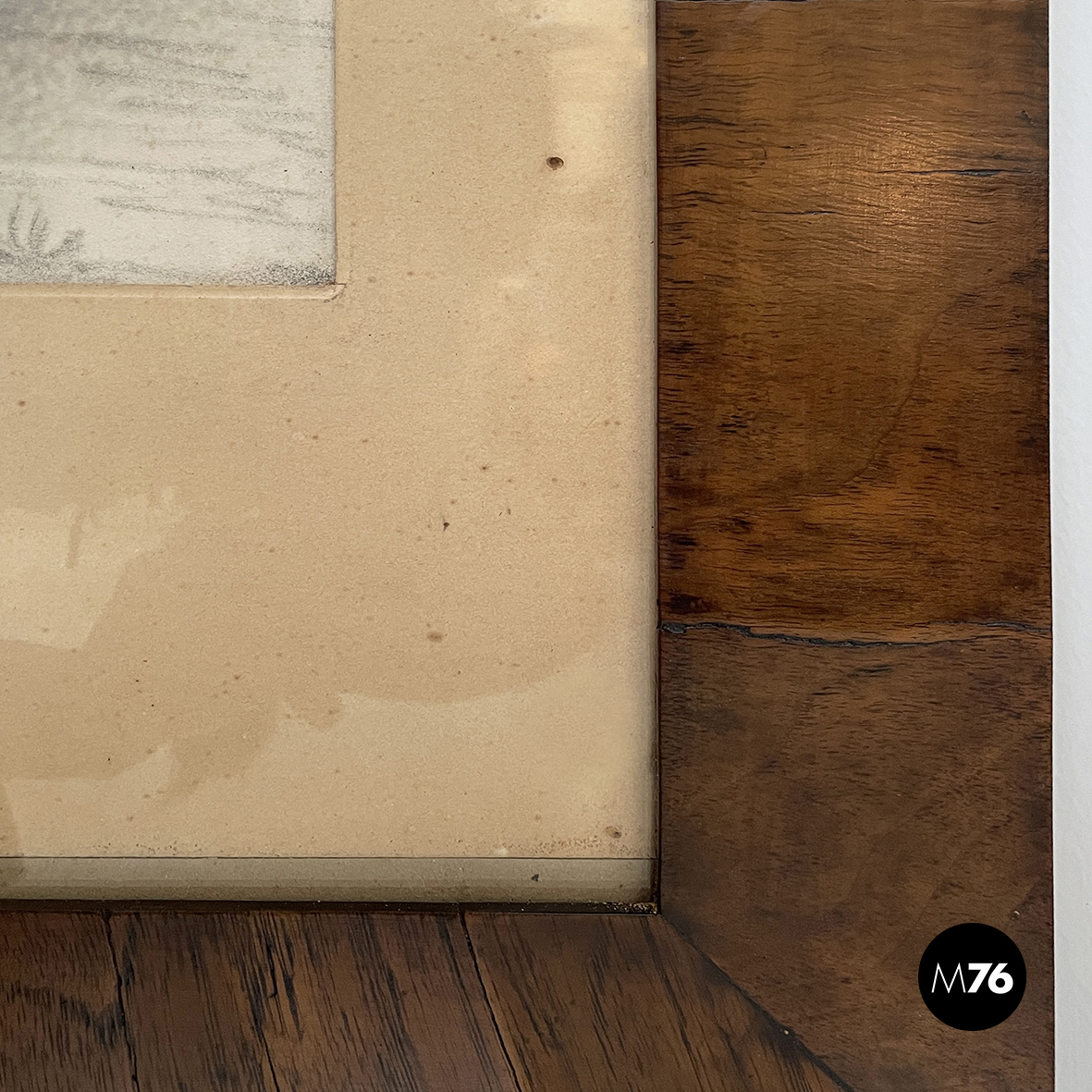 Quadro a carboncino in cornice in legno, metà 1800 ca.