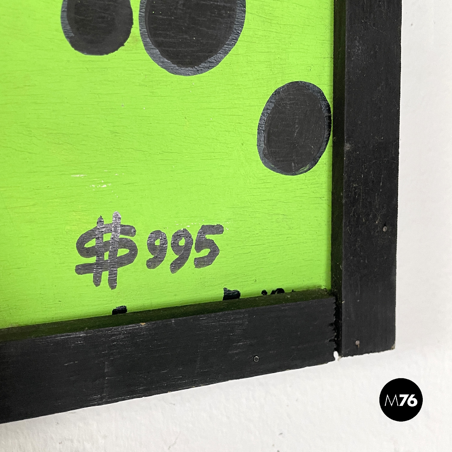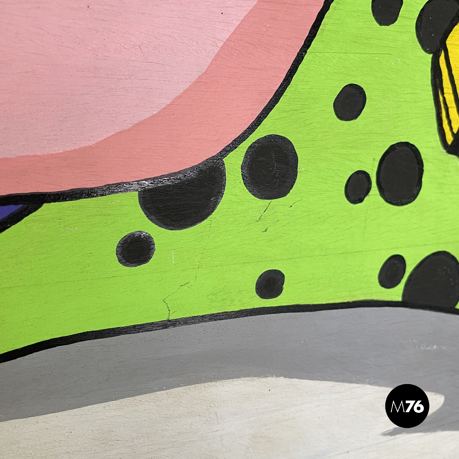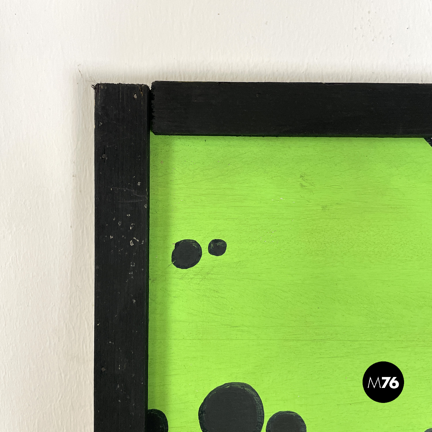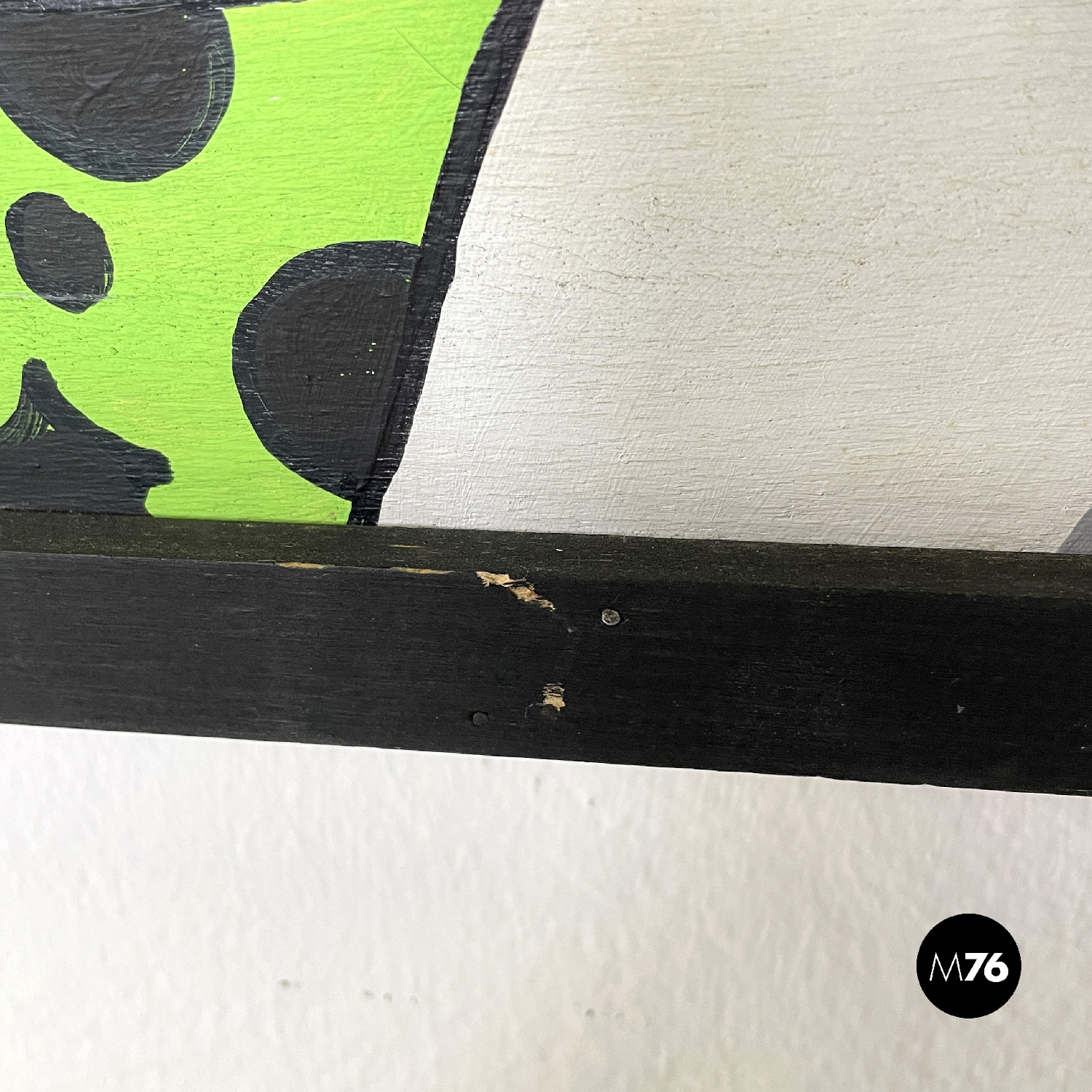 Quadro ad acrilico su tavola a tema erotico, rappresentante personaggi iconici della cultura pop manga giapponese. La composizione presenta colori accesi e sgargianti: verde, viola, nero e rosso. Presenta una cornice nera in legno liscio a sezione quadrata.