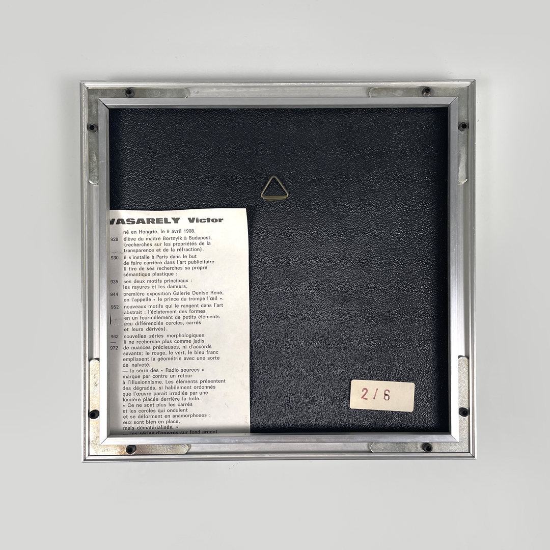 Realizzato da Victor Vasarely nel 1970 ca. Presente la certificazione sul retro e un’etichetta con numero di serie 2/6.