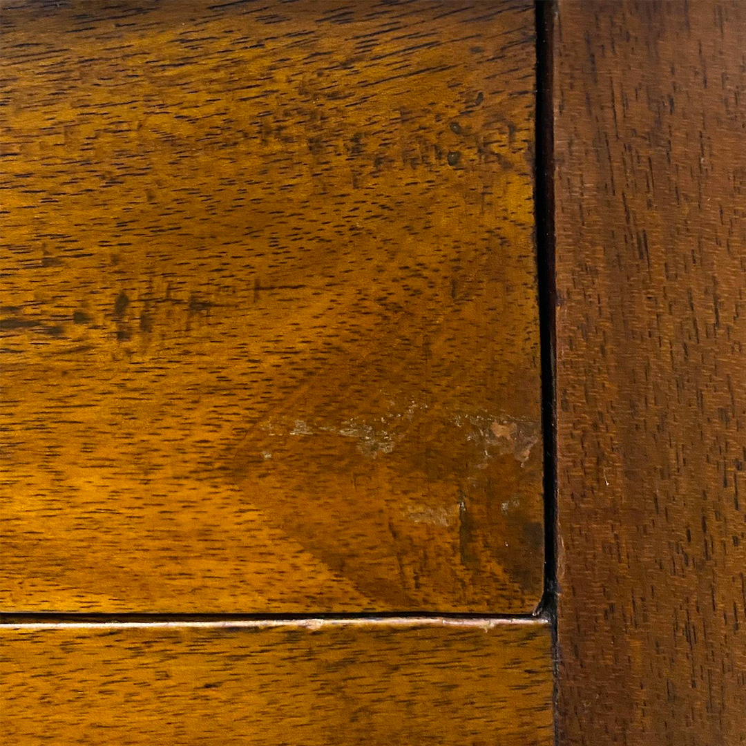 Condizioni vintage, con segni dell’uso e del tempo, qualche graffio sul piano e cassetto. Macchie sulla carta che riveste il cassetto.