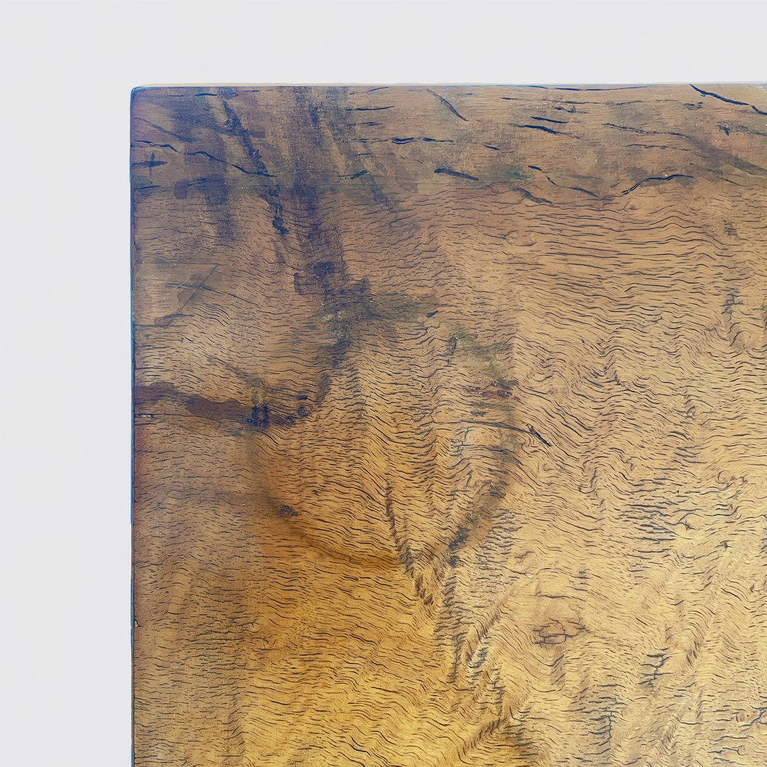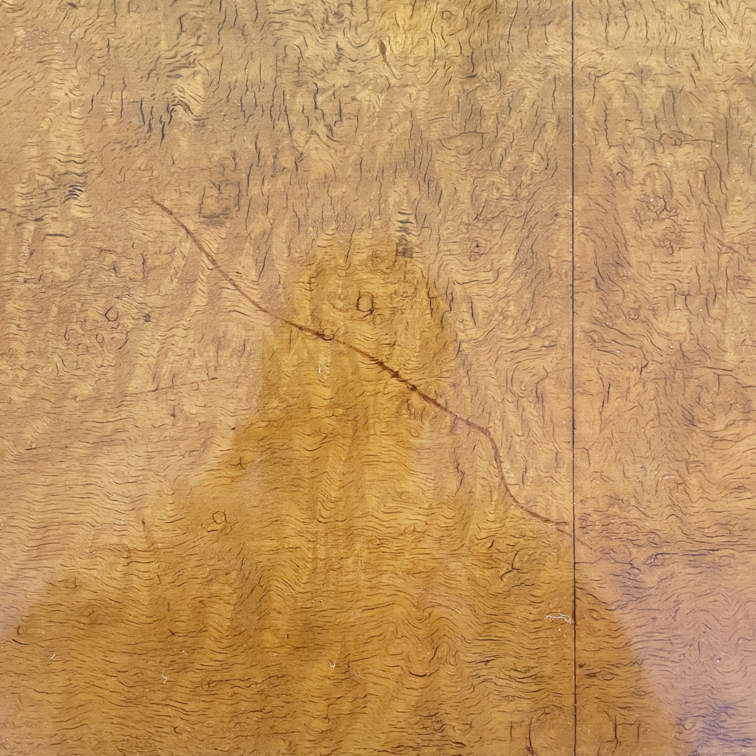 Le zampe a sezione quadrata sono a voluta e si allargano verso l’esterno.