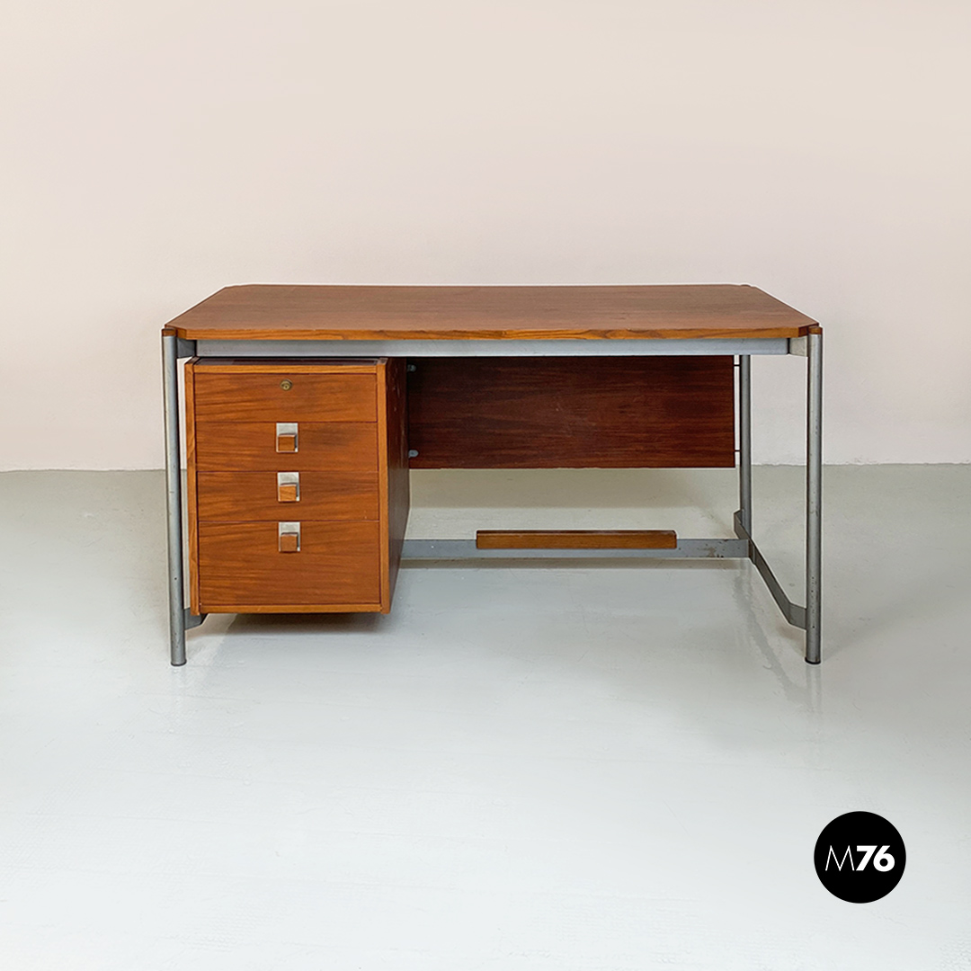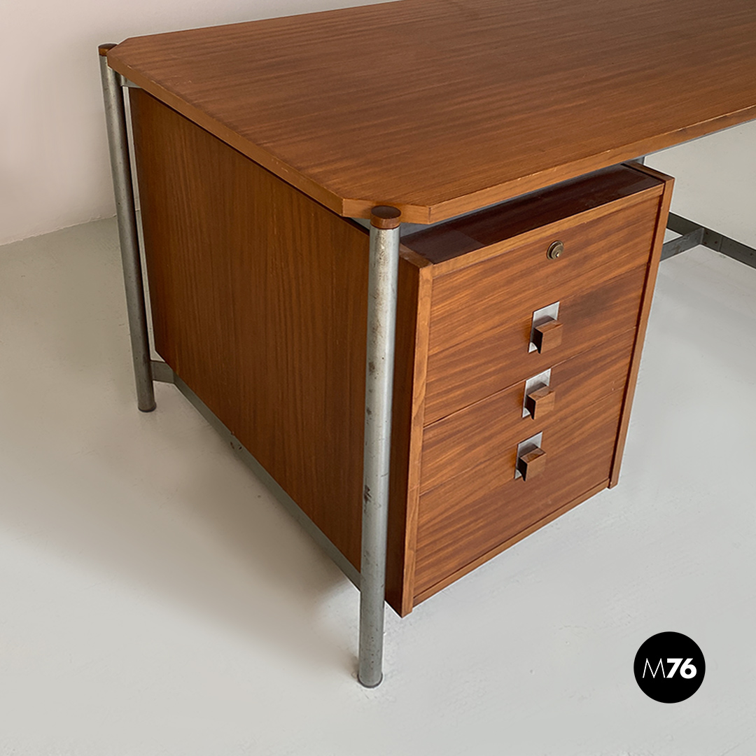 Scrivania in legno e metallo, 1970 ca.