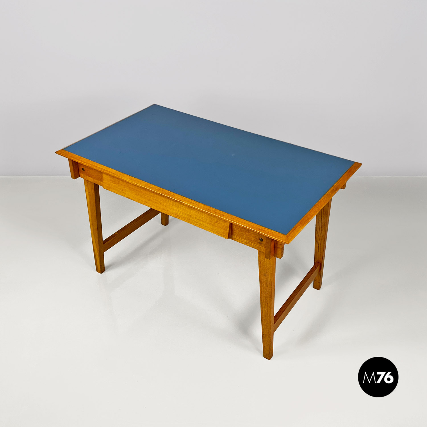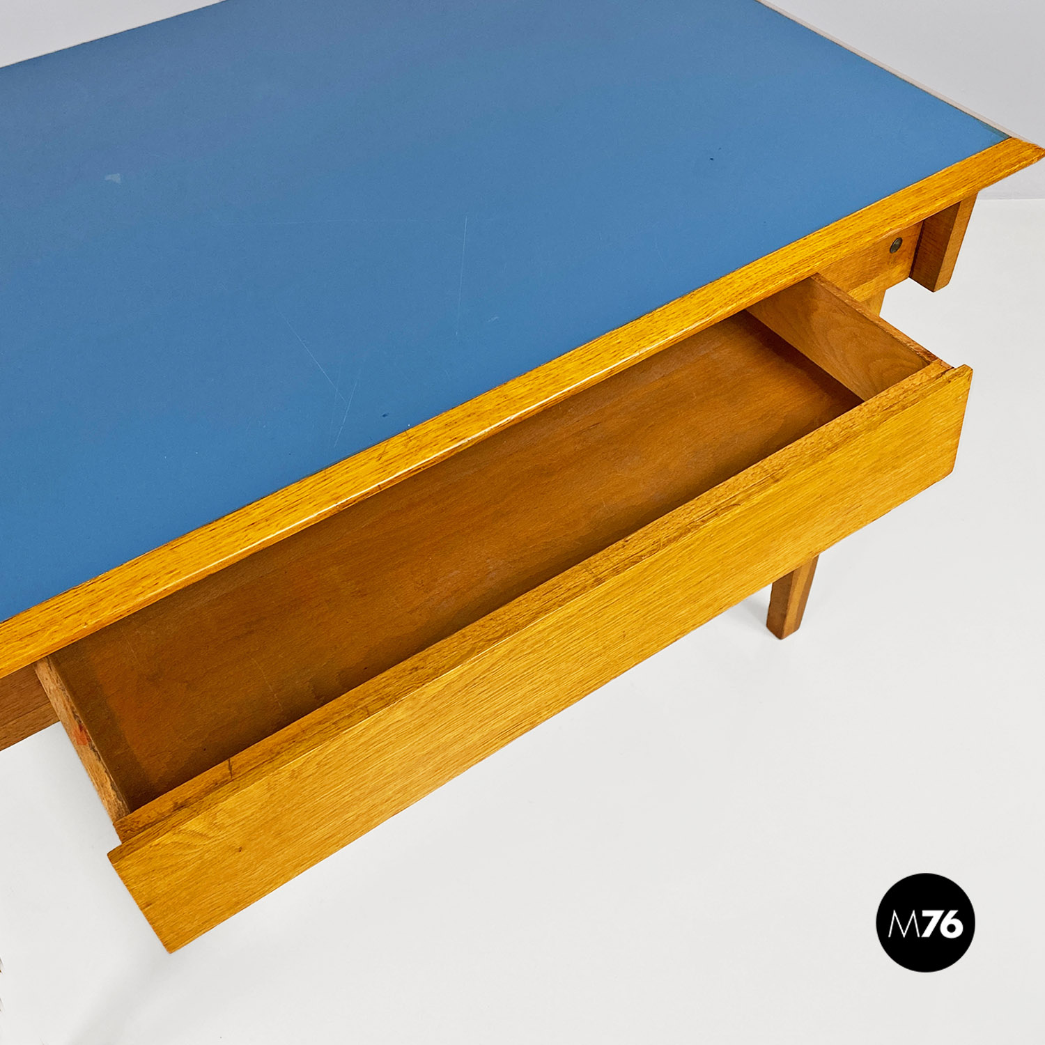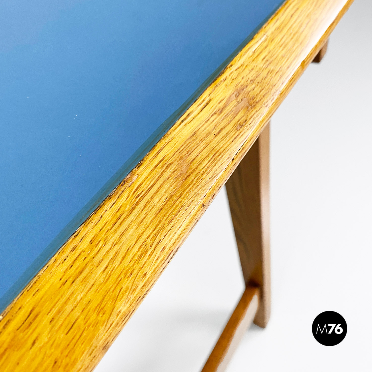 Scrivania in legno massello e formica blu, 1960 ca.