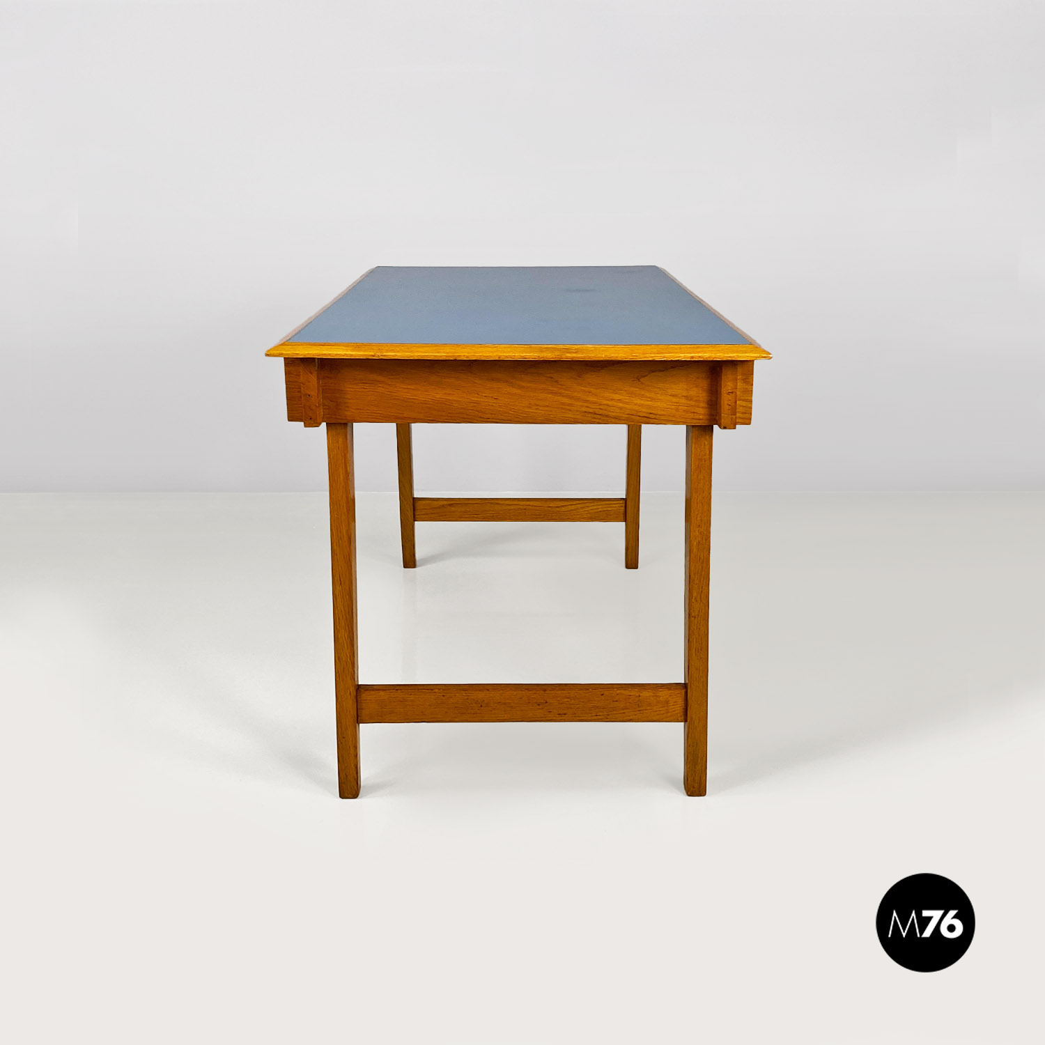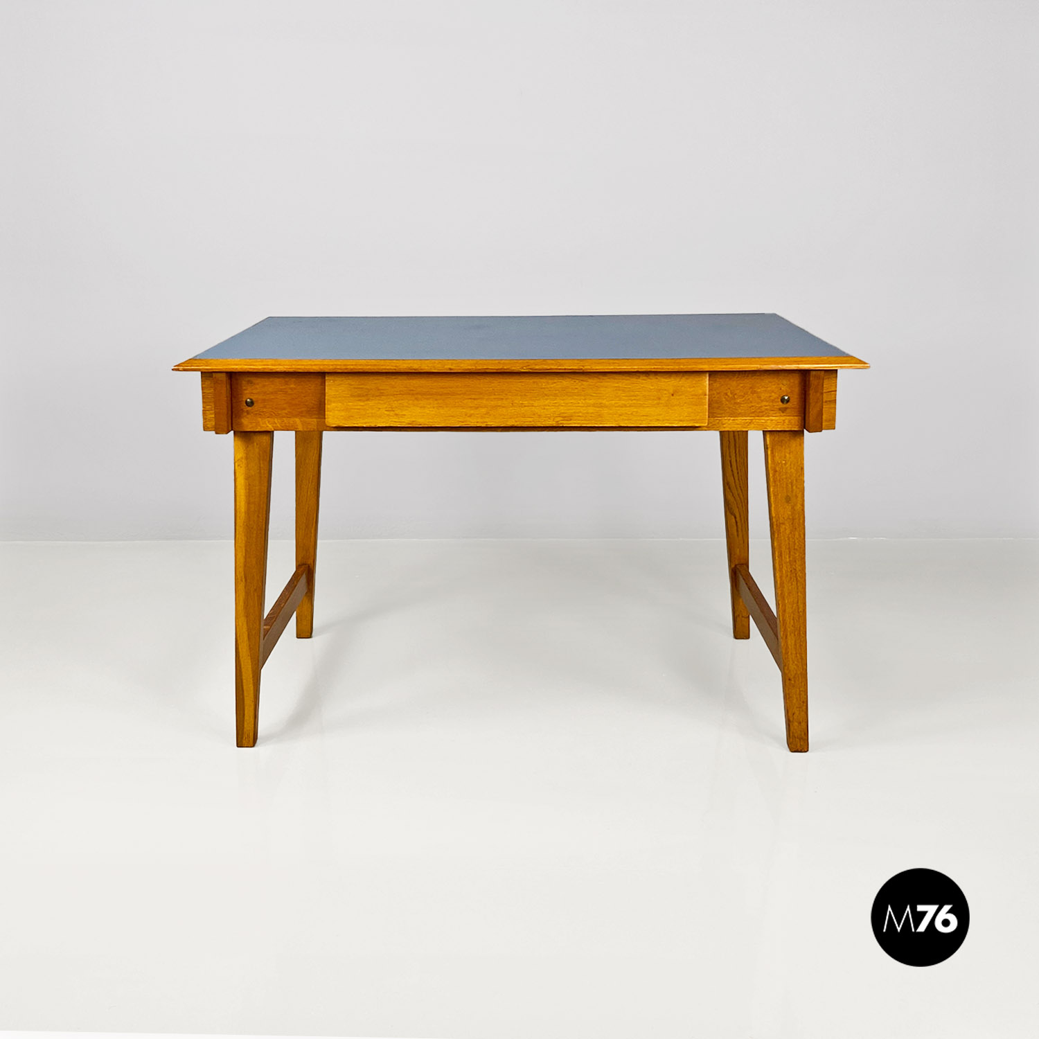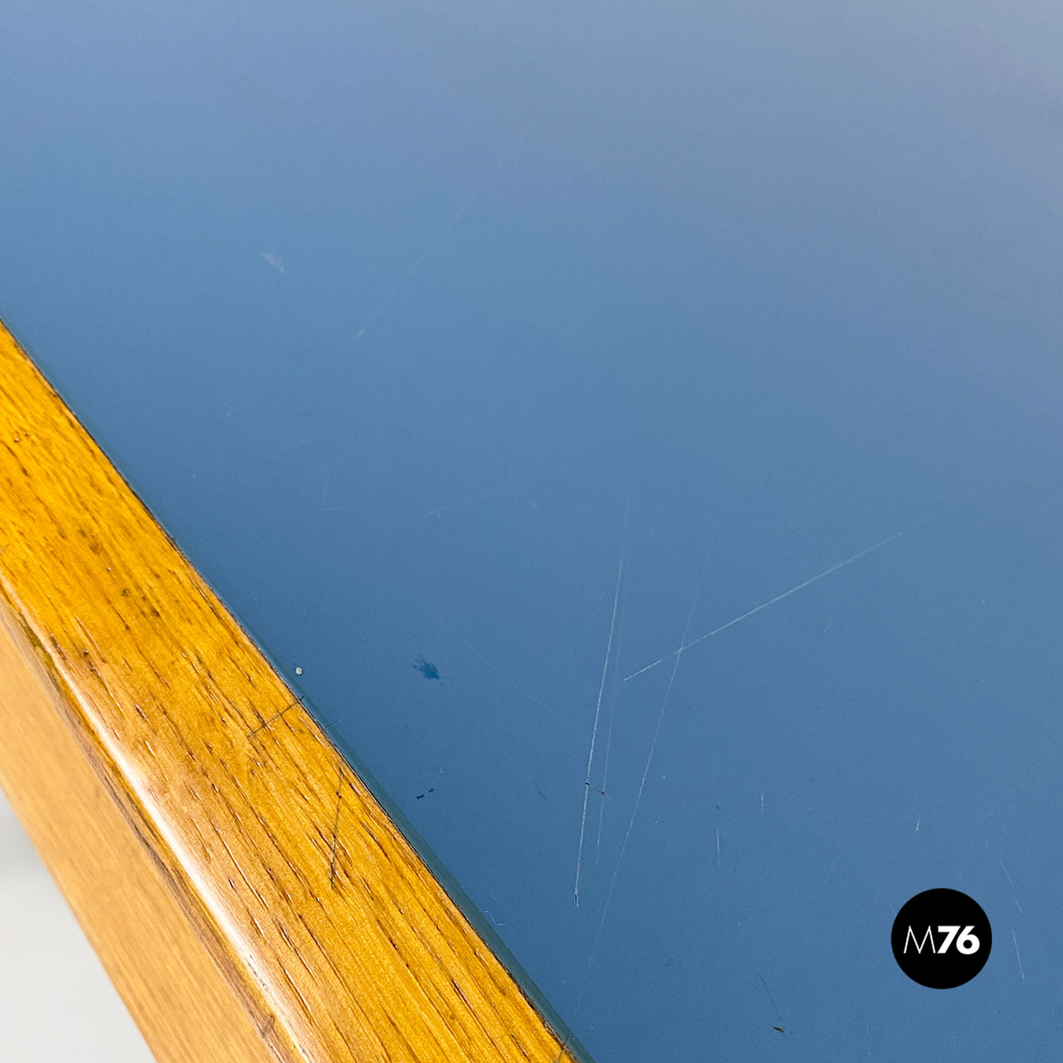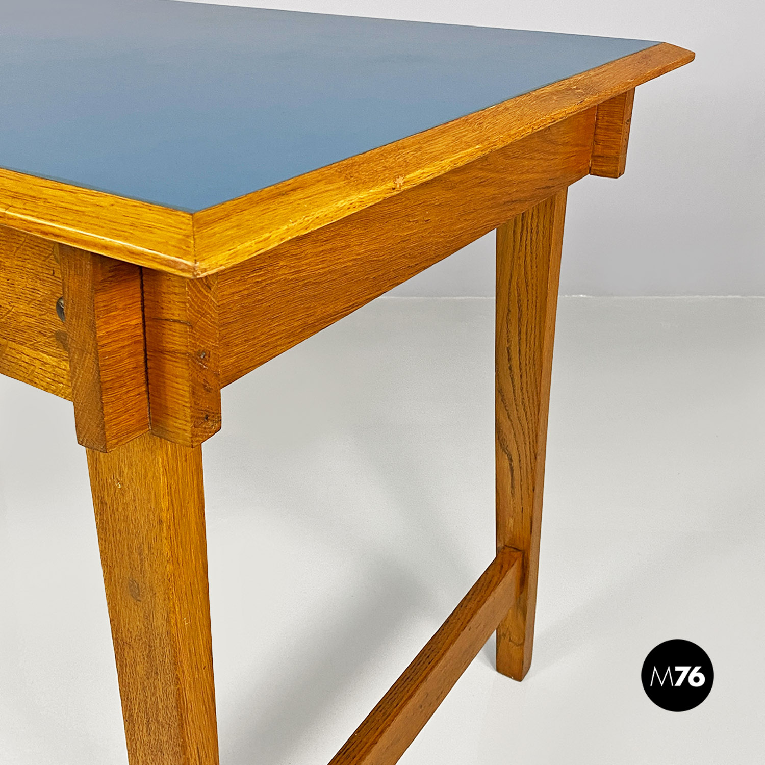 Scrivania in legno massello e formica blu, 1960 ca.