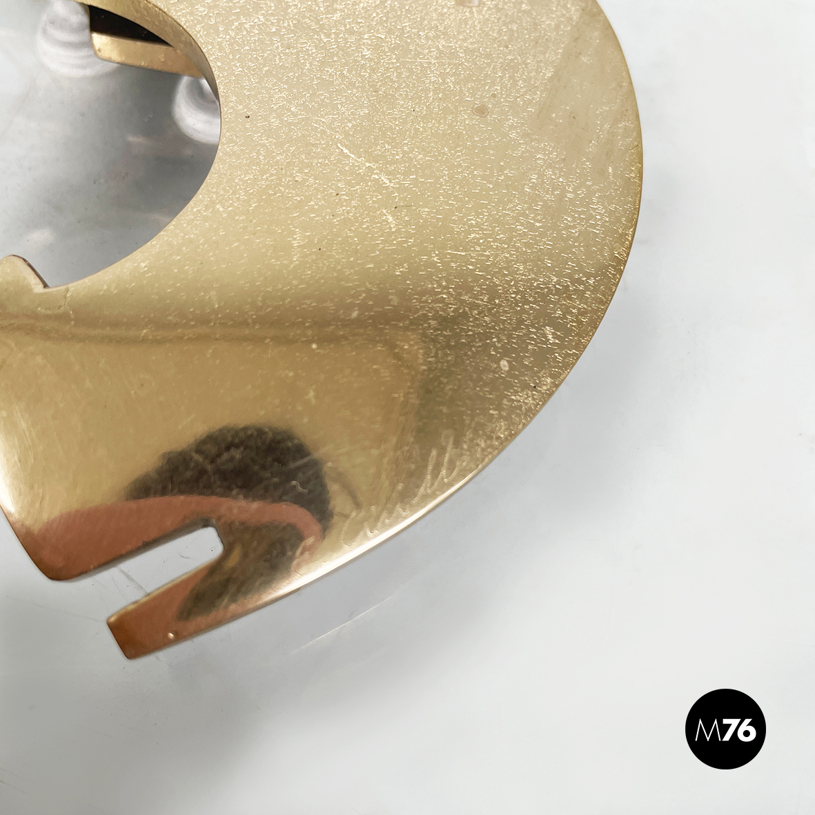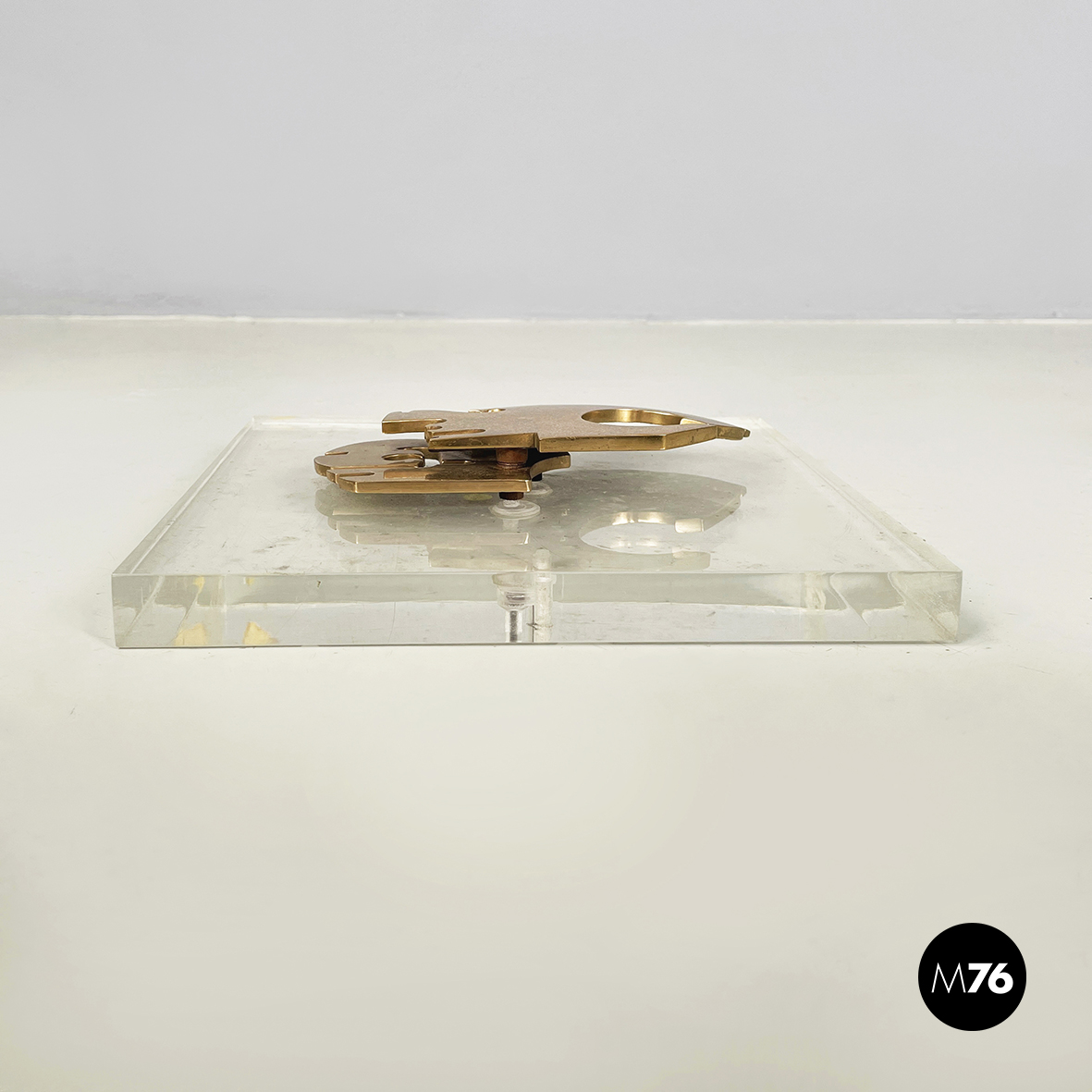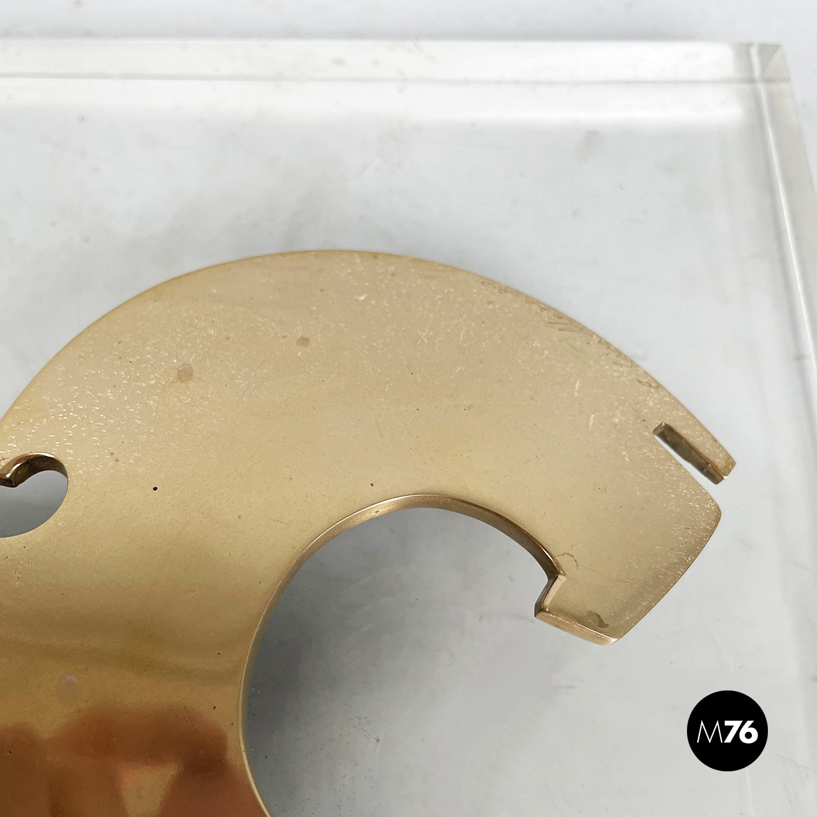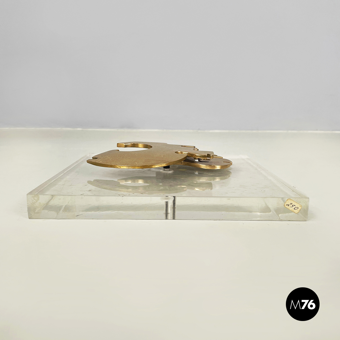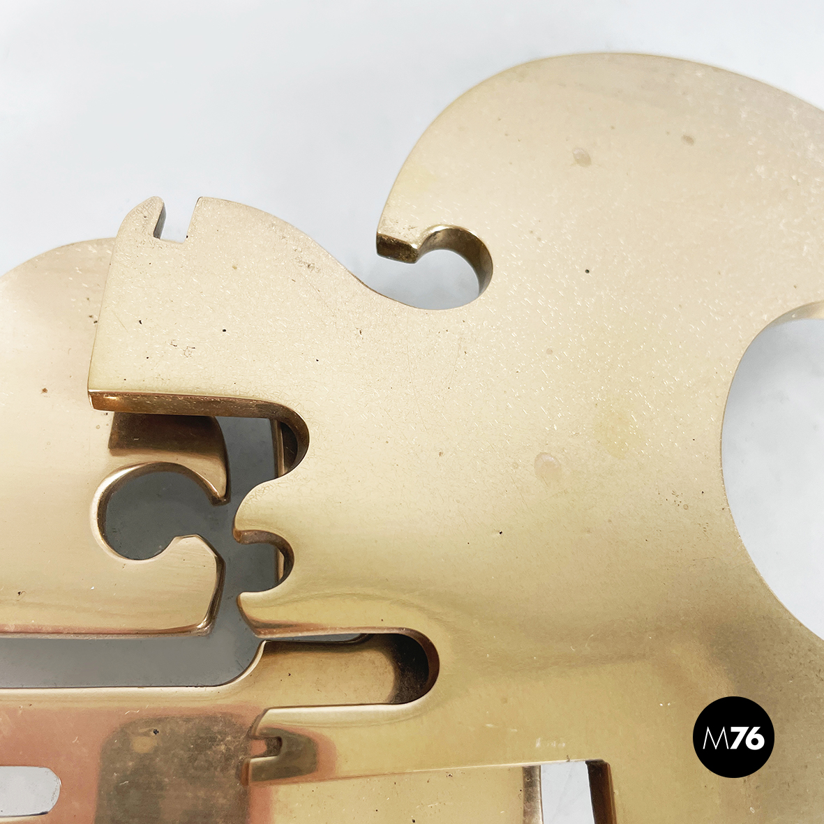 Scultura in bronzo con richiamo allo stile brutalista. La struttura è composta da diverse parti sottili dalle forme irregolari e unite tra loro, alternando così pieni e vuoti. Il piedistallo a cui è ancorata la scultura è a forma di parallelepipedo di plexiglass trasparente.