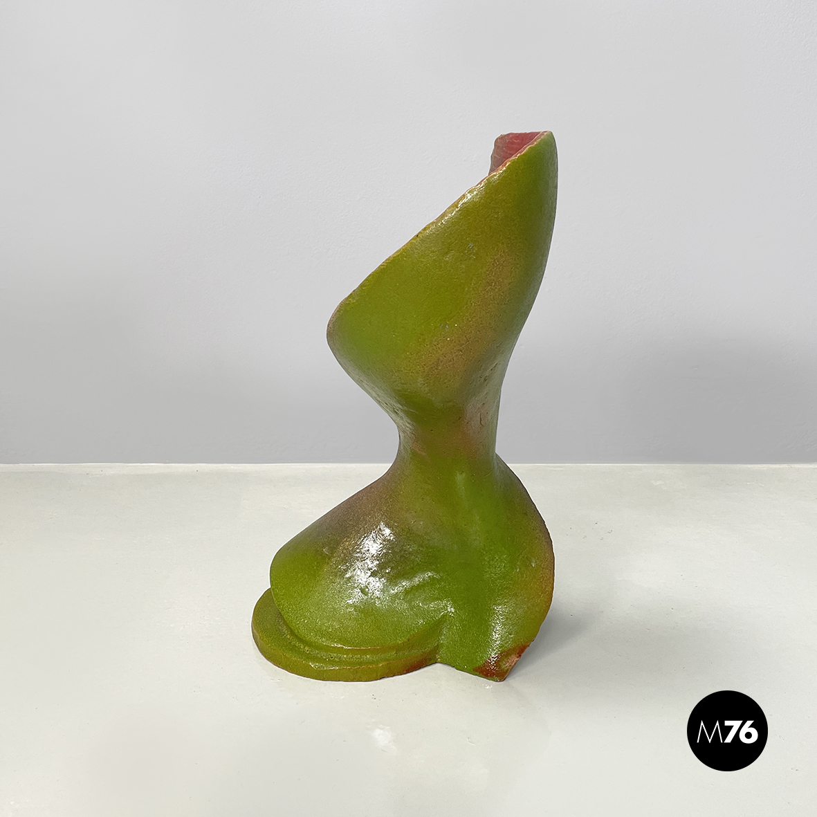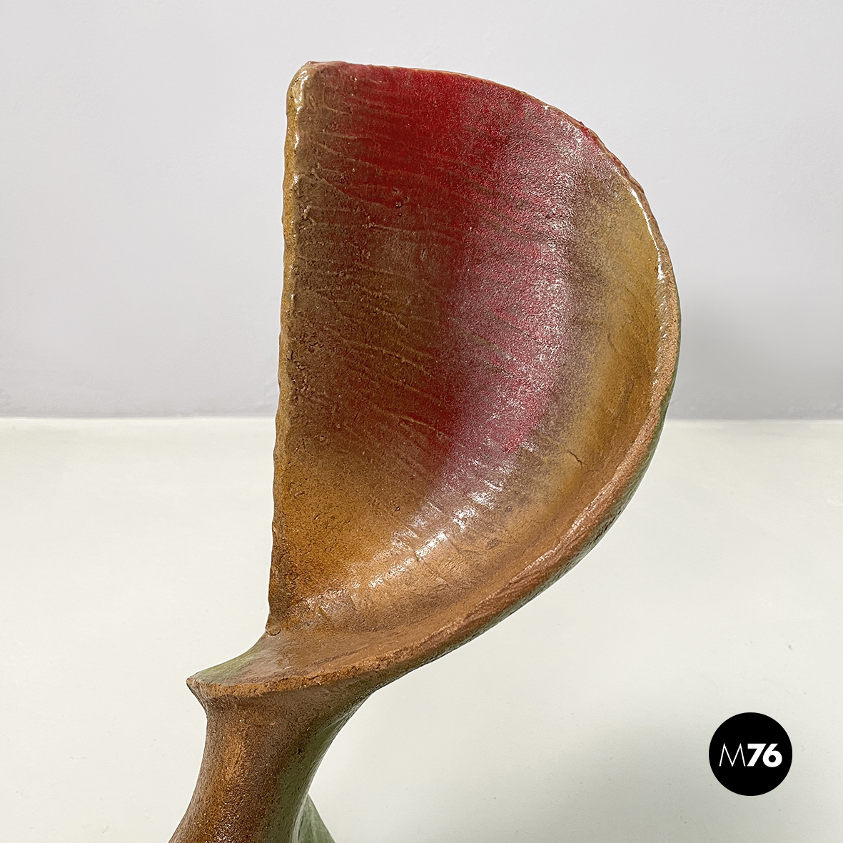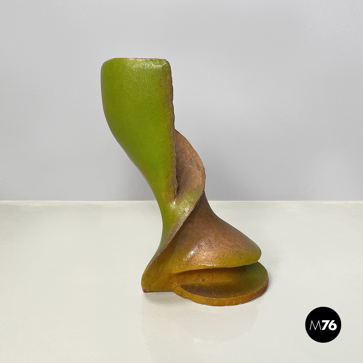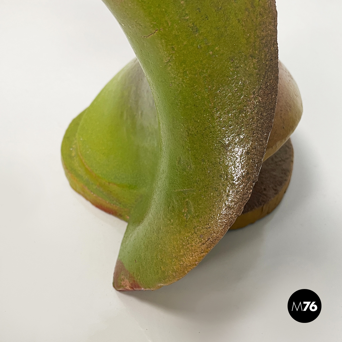 Scultura a base tonda in terracotta smaltata e dipinta. Il soggetto riprende forme organiche astratte: infatti ricorda la forma di volto e collo. La scultura presenta una forma a spirale e sfuma nei colori dal verde al rosso-marrone.