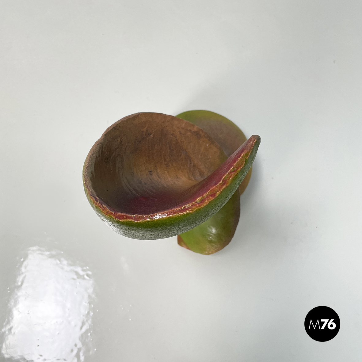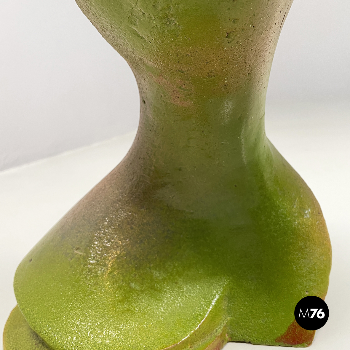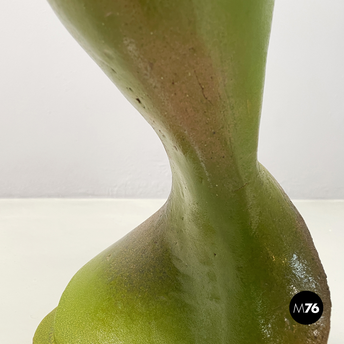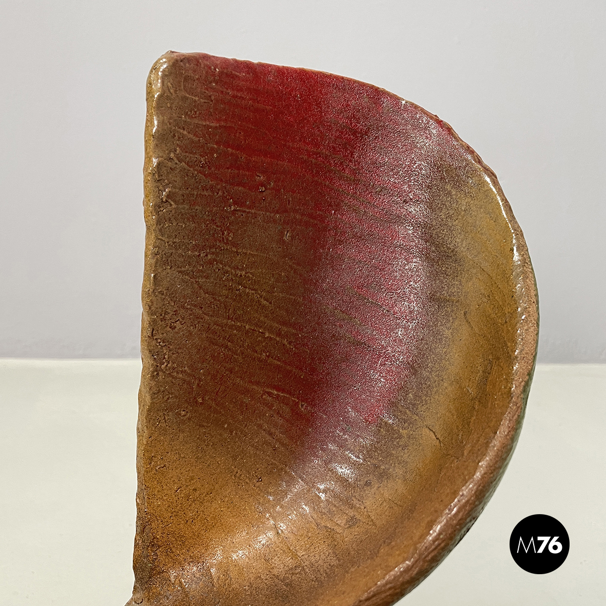 Scultura a base tonda in terracotta smaltata e dipinta. Il soggetto riprende forme organiche astratte: infatti ricorda la forma di volto e collo. La scultura presenta una forma a spirale e sfuma nei colori dal verde al rosso-marrone.