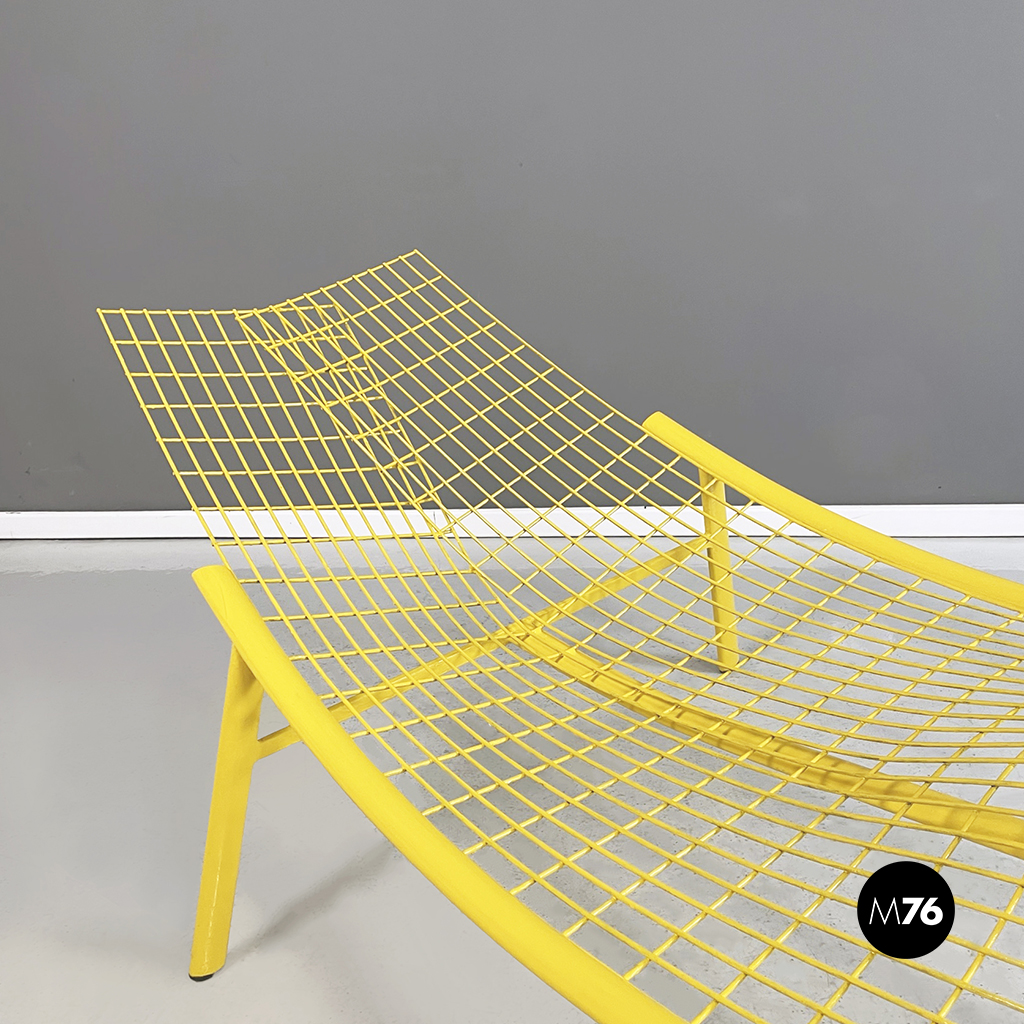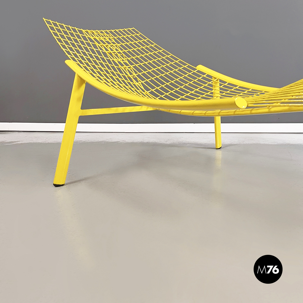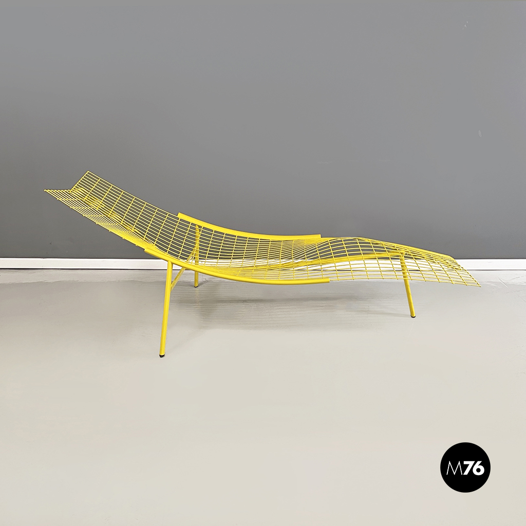Sedia a sdraio o chaise longue modello Swing Rete interamente in metallo verniciato giallo. La struttura della seduta è in lamiera di metallo. Le tre zampe sono a sezione ovale in metallo. La chaise longue può essere sia per uso esterno come giardino o terrazzo, sia per uso interno.