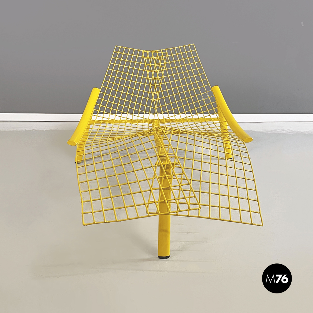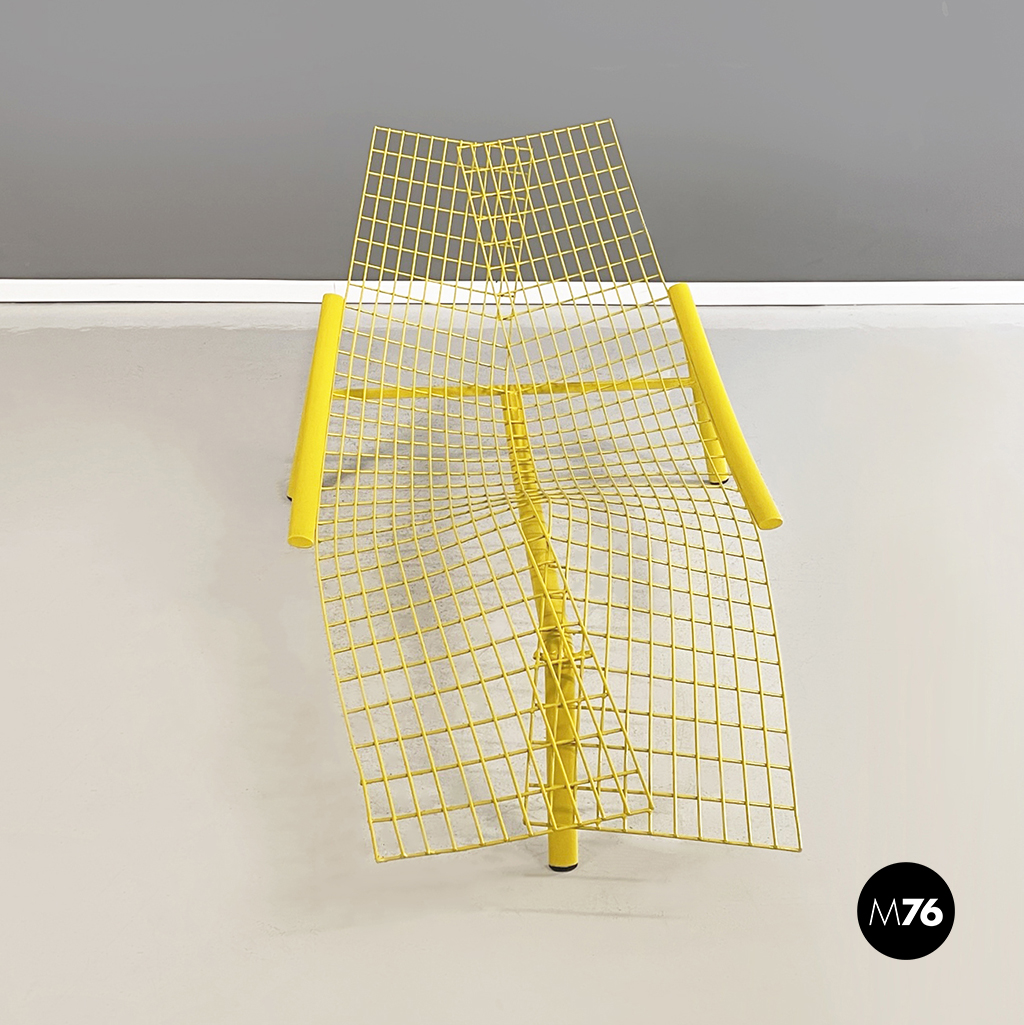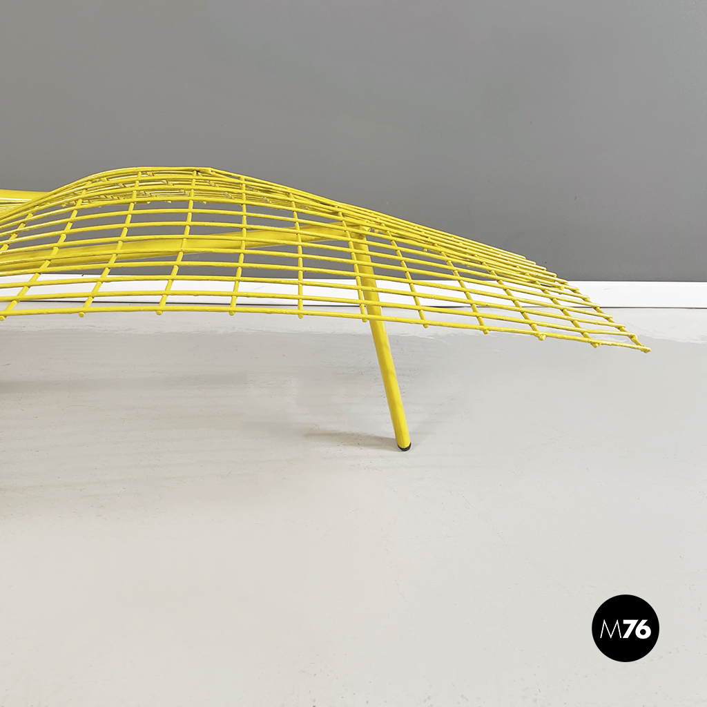 Sedia a sdraio o chaise longue modello Swing Rete interamente in metallo verniciato giallo. La struttura della seduta è in lamiera di metallo. Le tre zampe sono a sezione ovale in metallo. La chaise longue può essere sia per uso esterno come giardino o terrazzo, sia per uso interno.