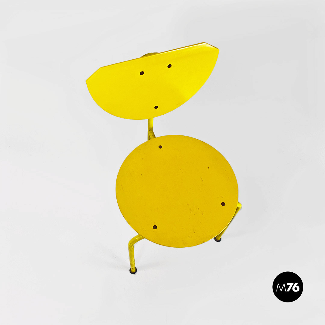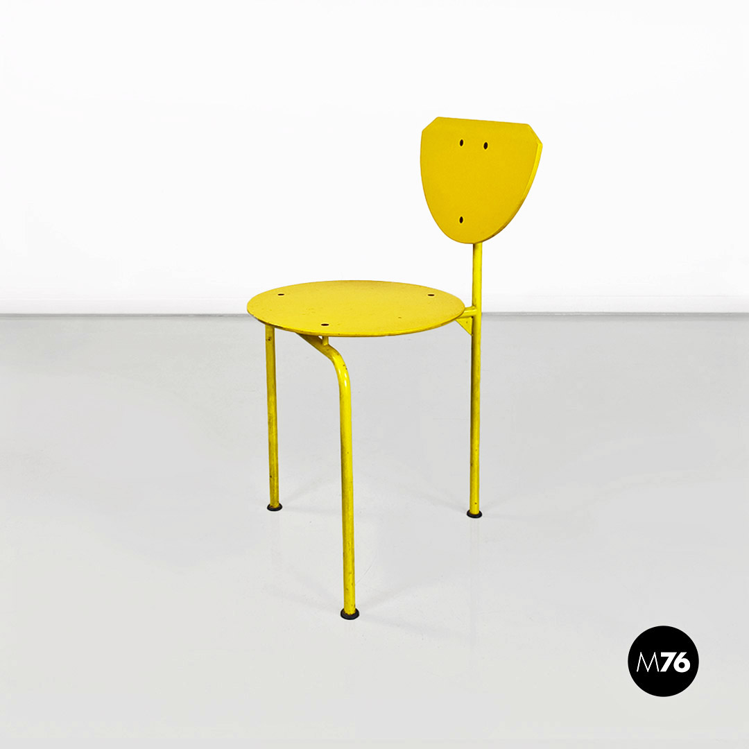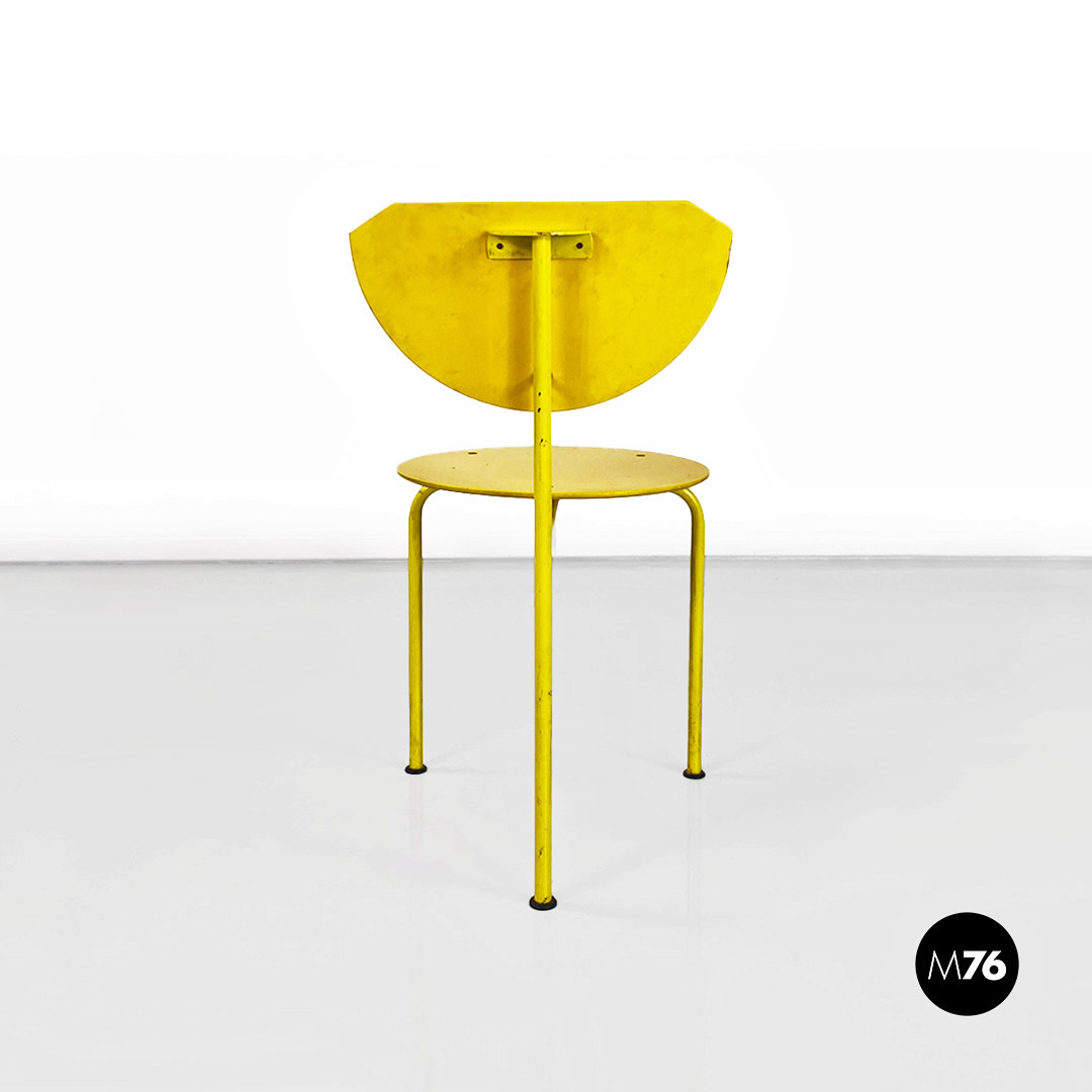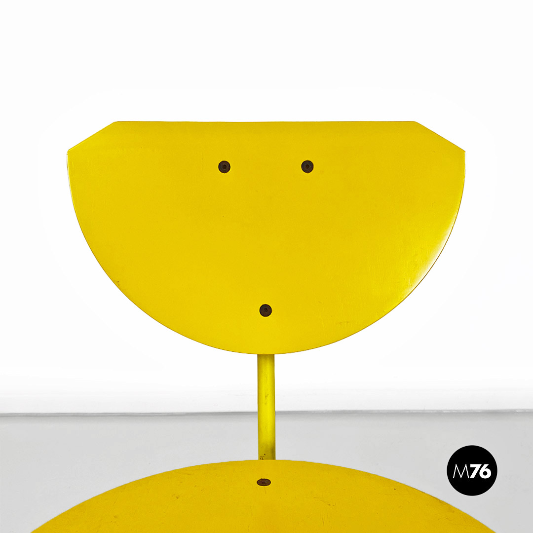 Sedia modello Alien con struttura in tondino di metallo giallo e seduta e schienale in MDF, sempre in colore giallo.