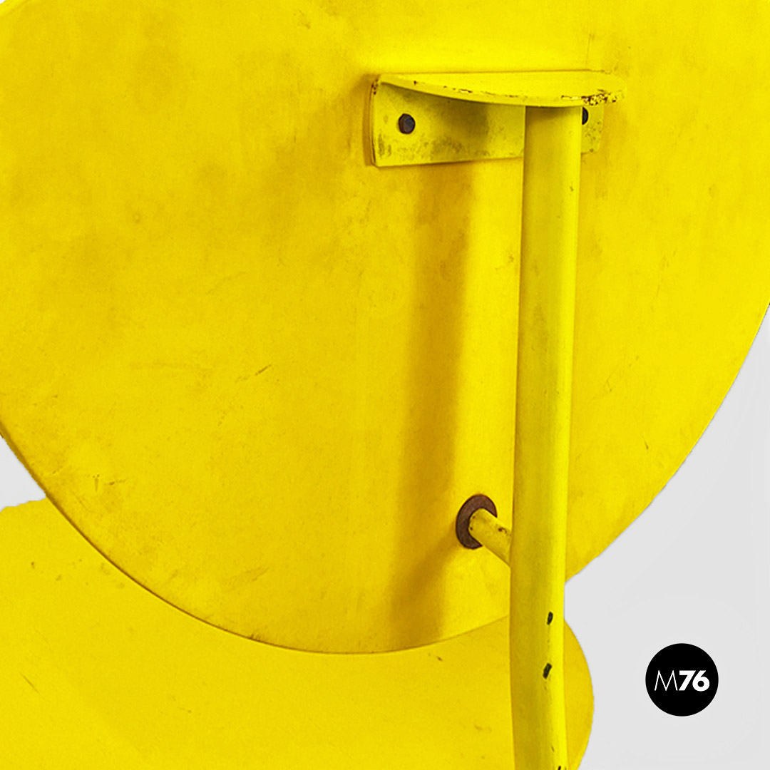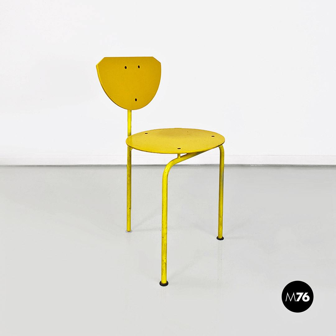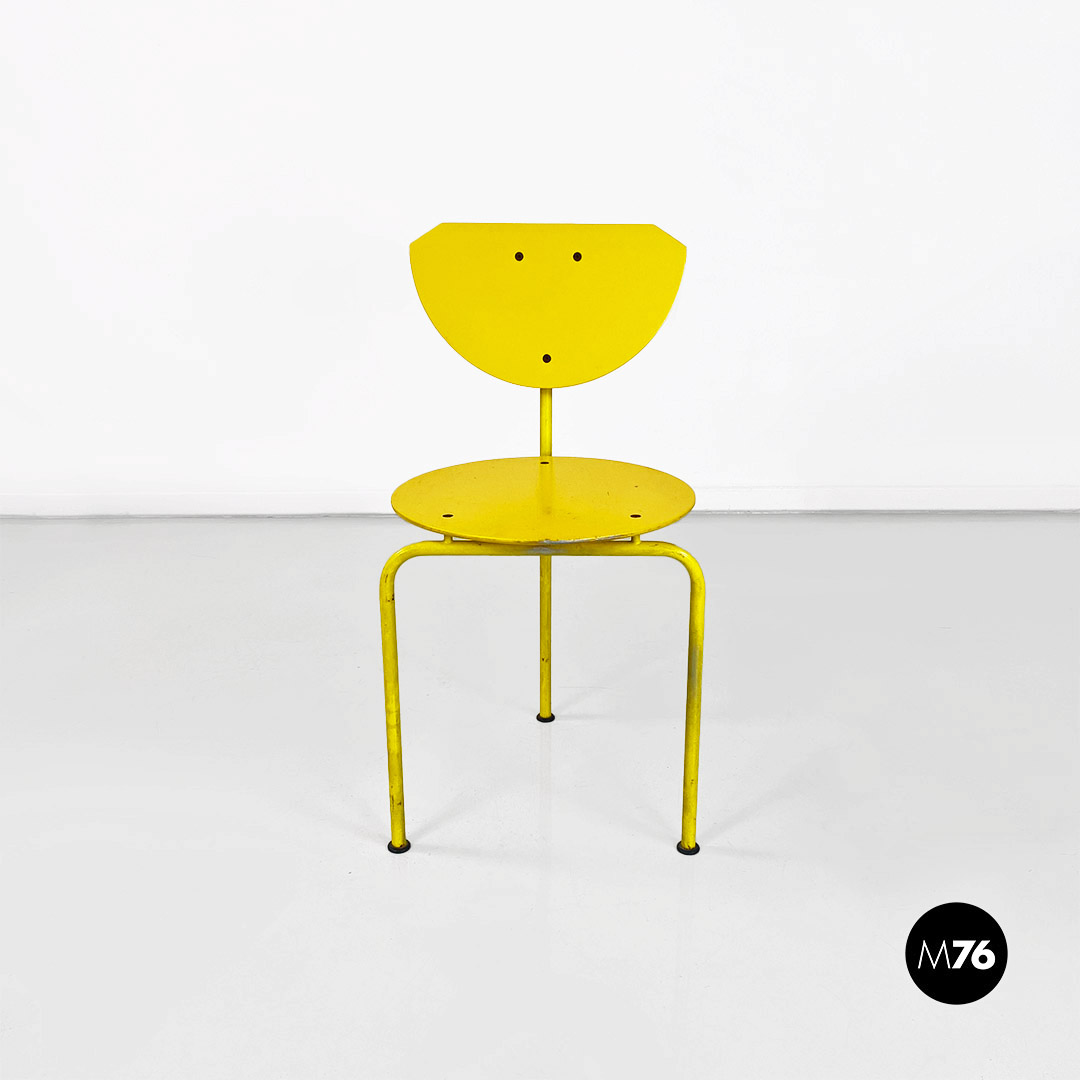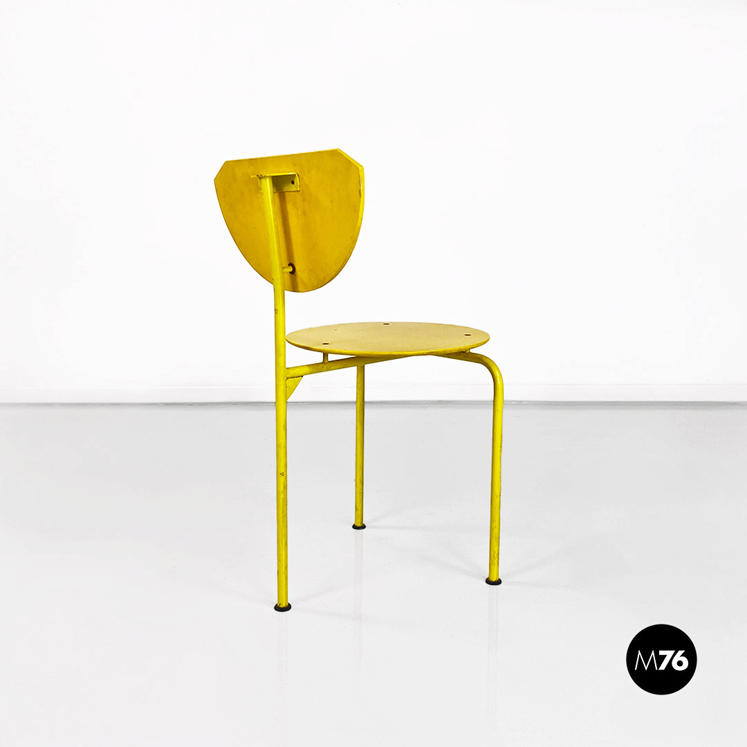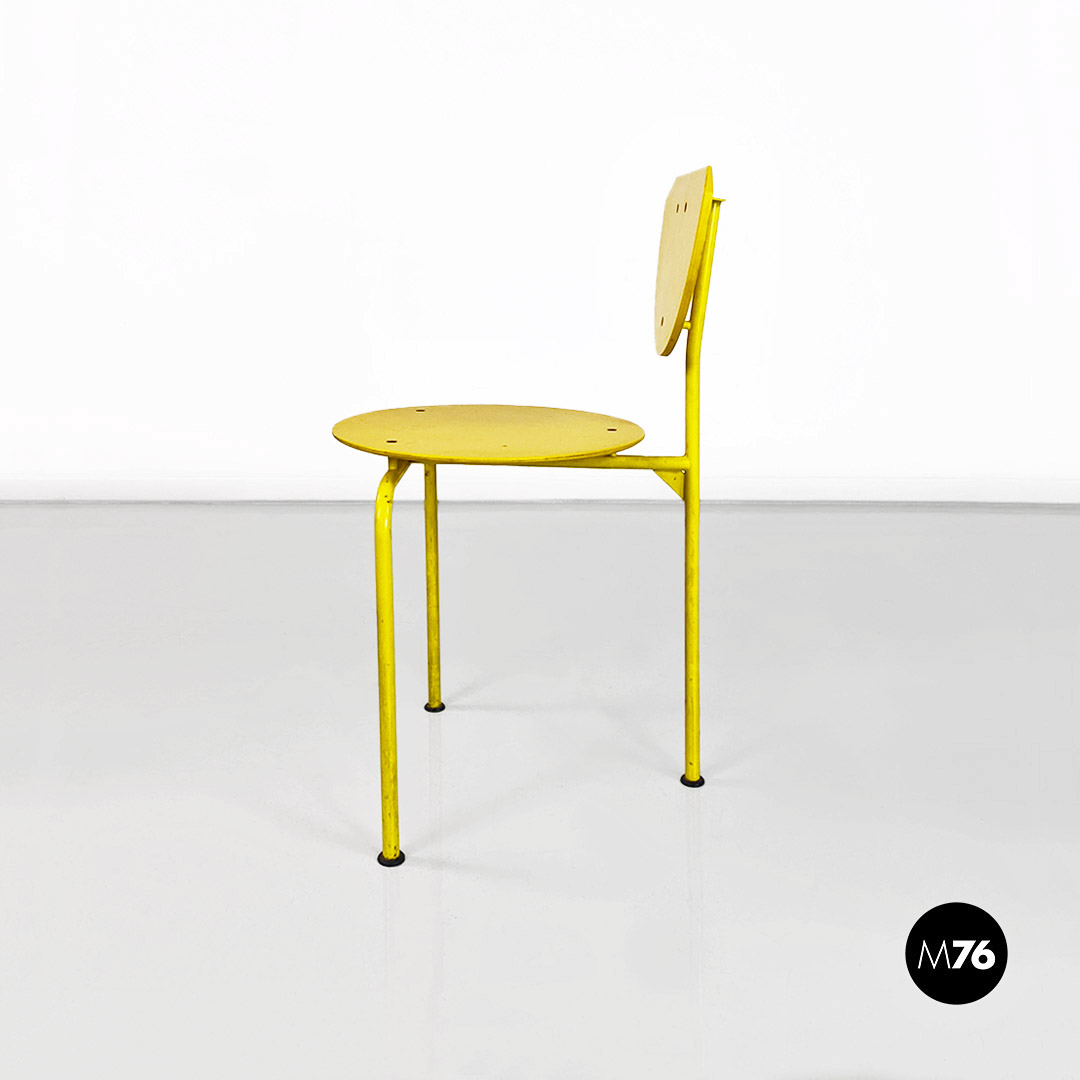 Sedia modello Alien con struttura in tondino di metallo giallo e seduta e schienale in MDF, sempre in colore giallo.