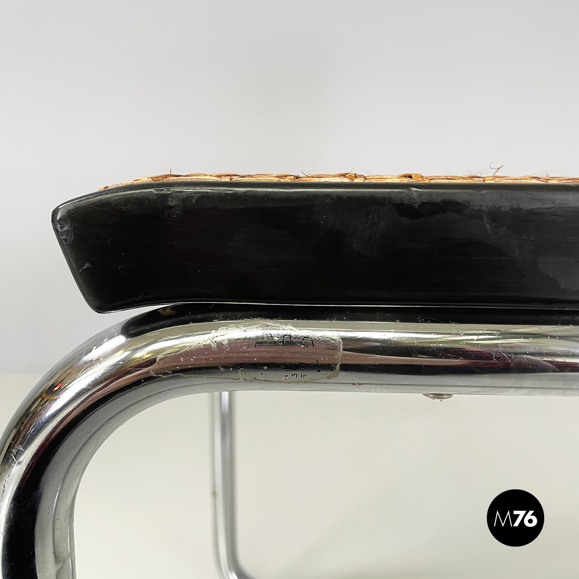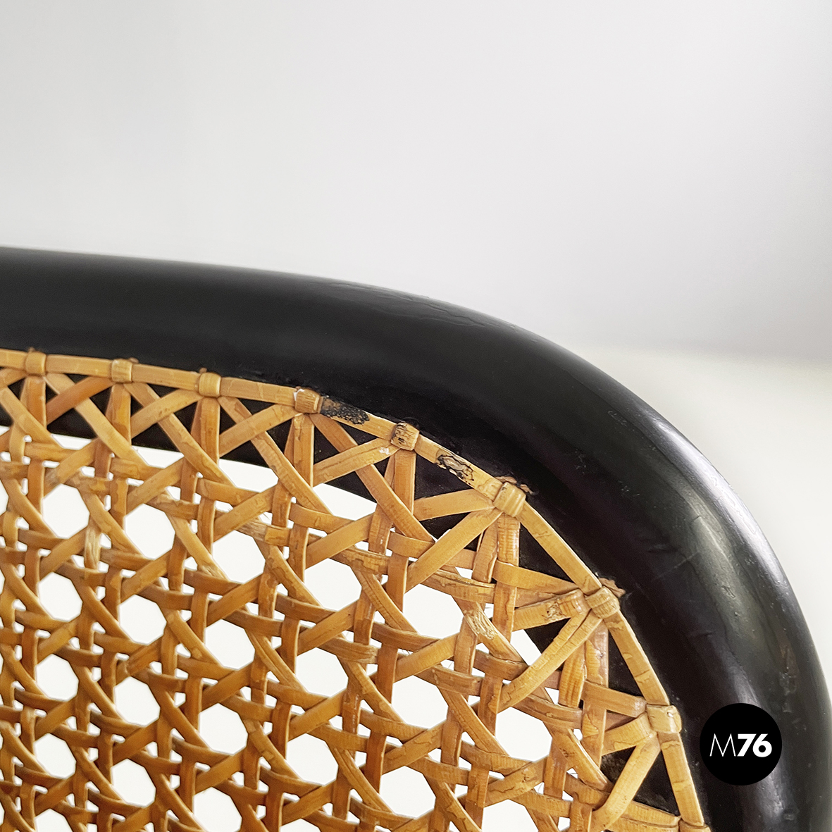 Sedia modello Cesca con seduta e schienale in paglia scura di Vienna e profili in legno verniciato nero. La struttura è in tubolare d’acciaio curvato.