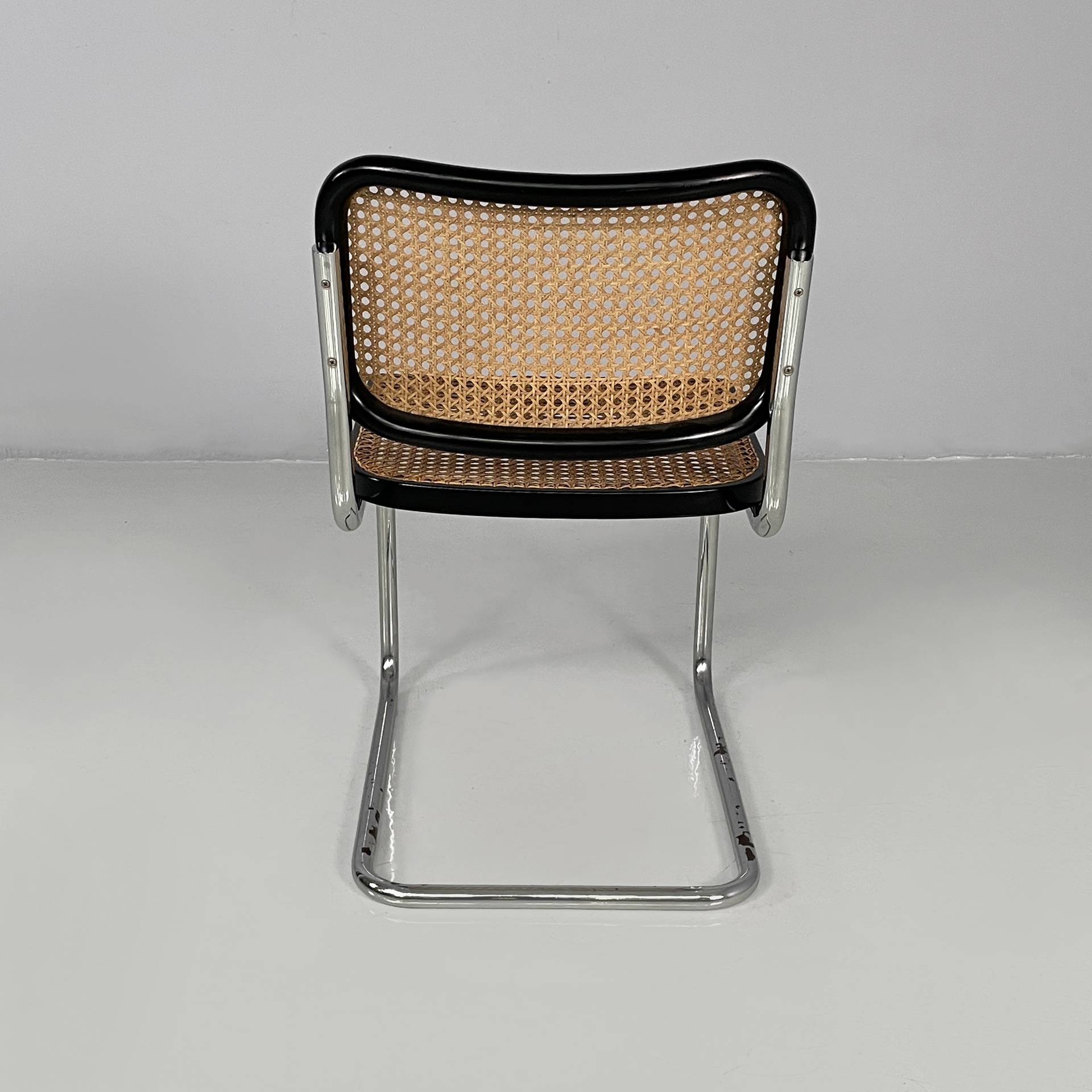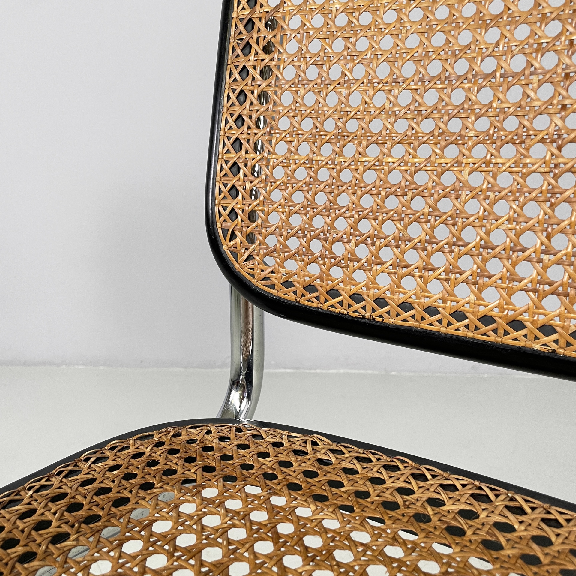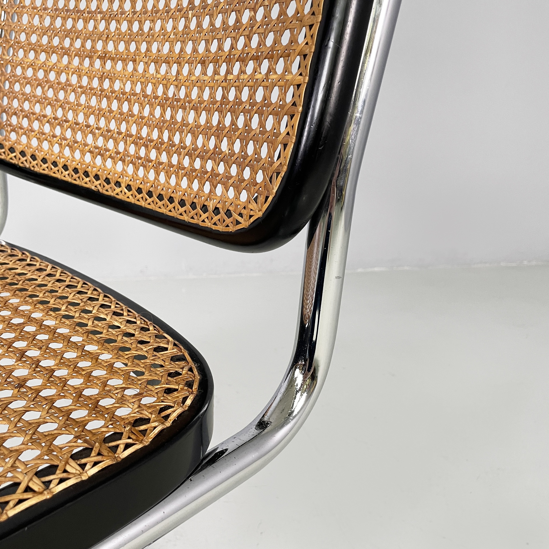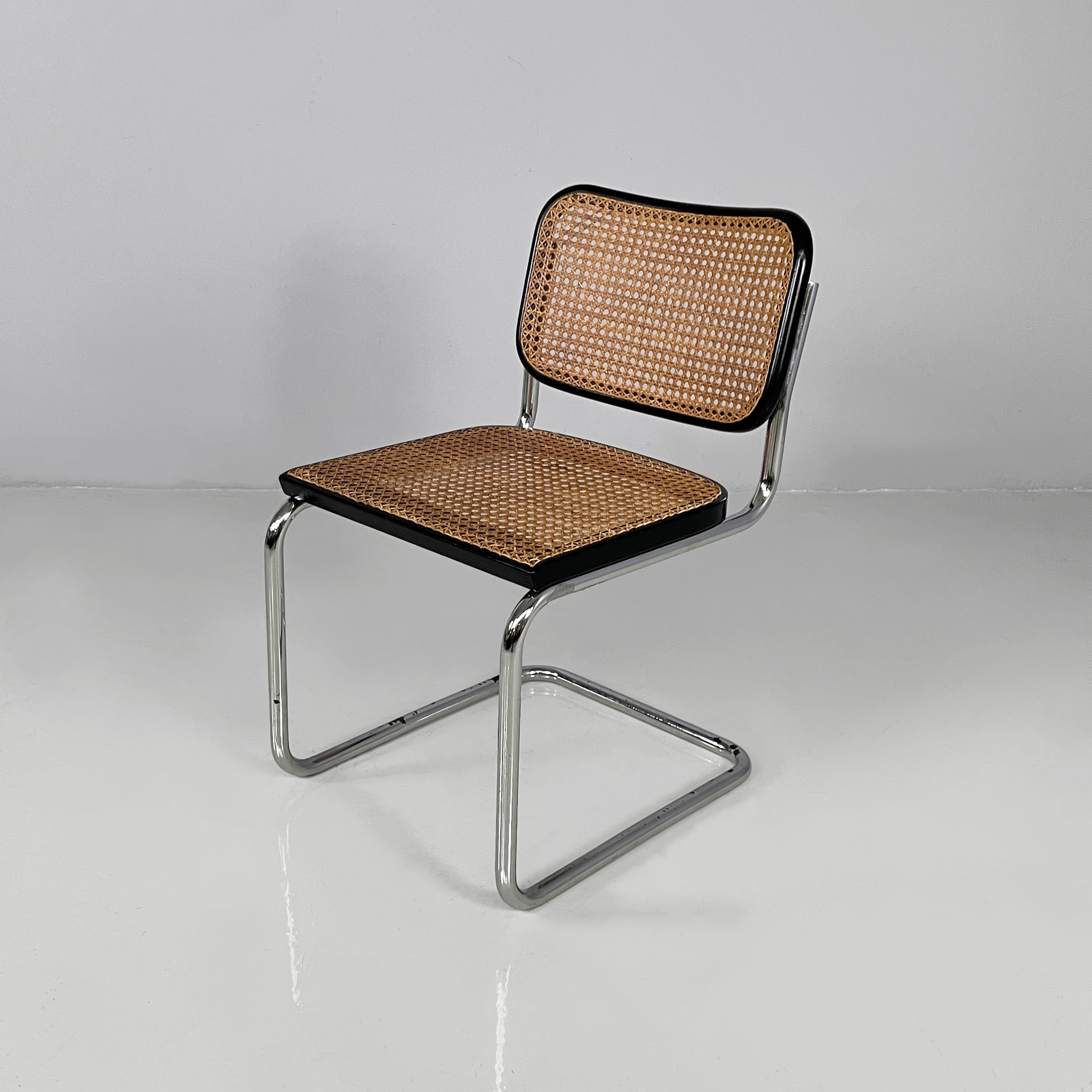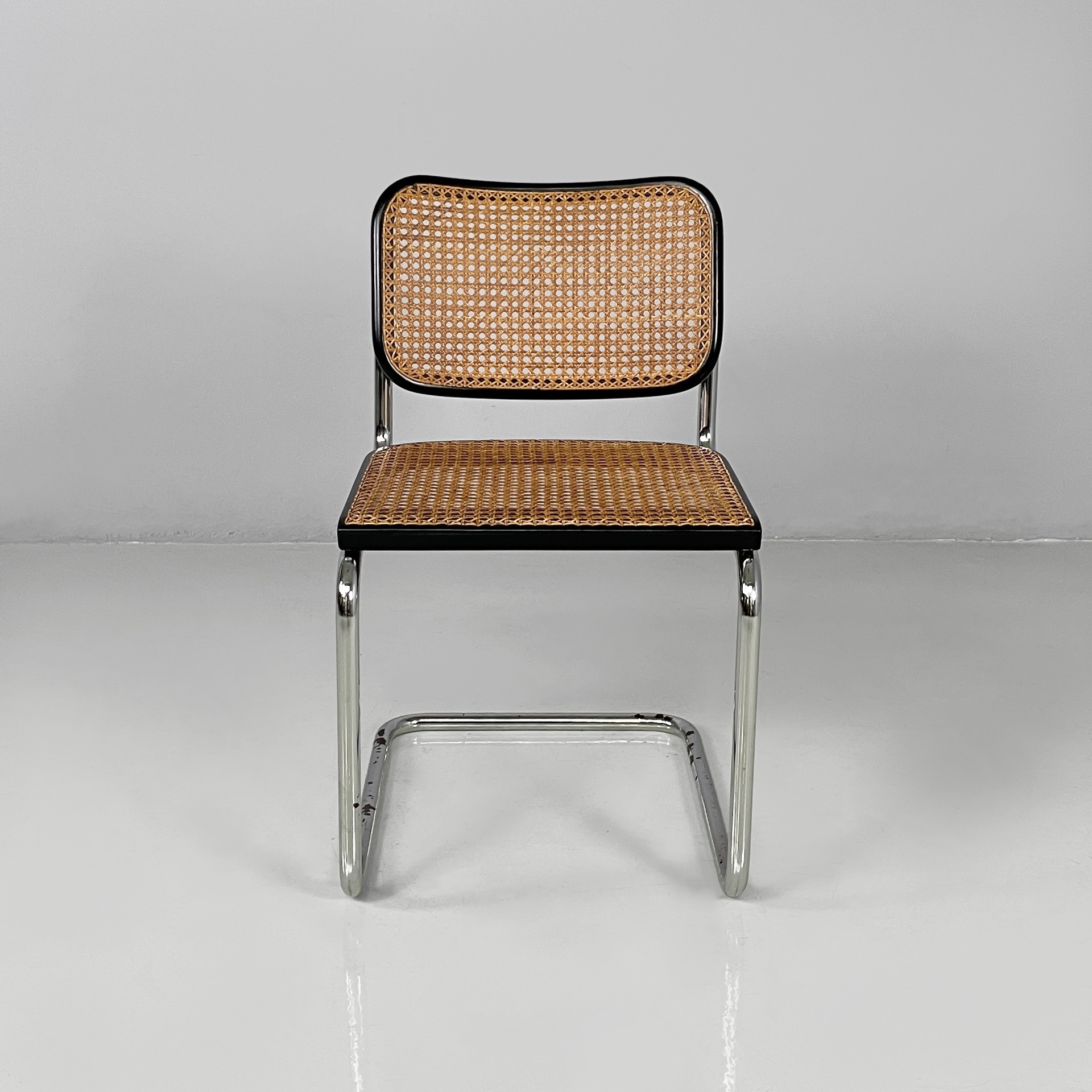 Sedia modello Cesca con seduta e schienale in paglia di Vienna e profili in legno verniciato nero. La struttura è in tubolare d’acciaio.