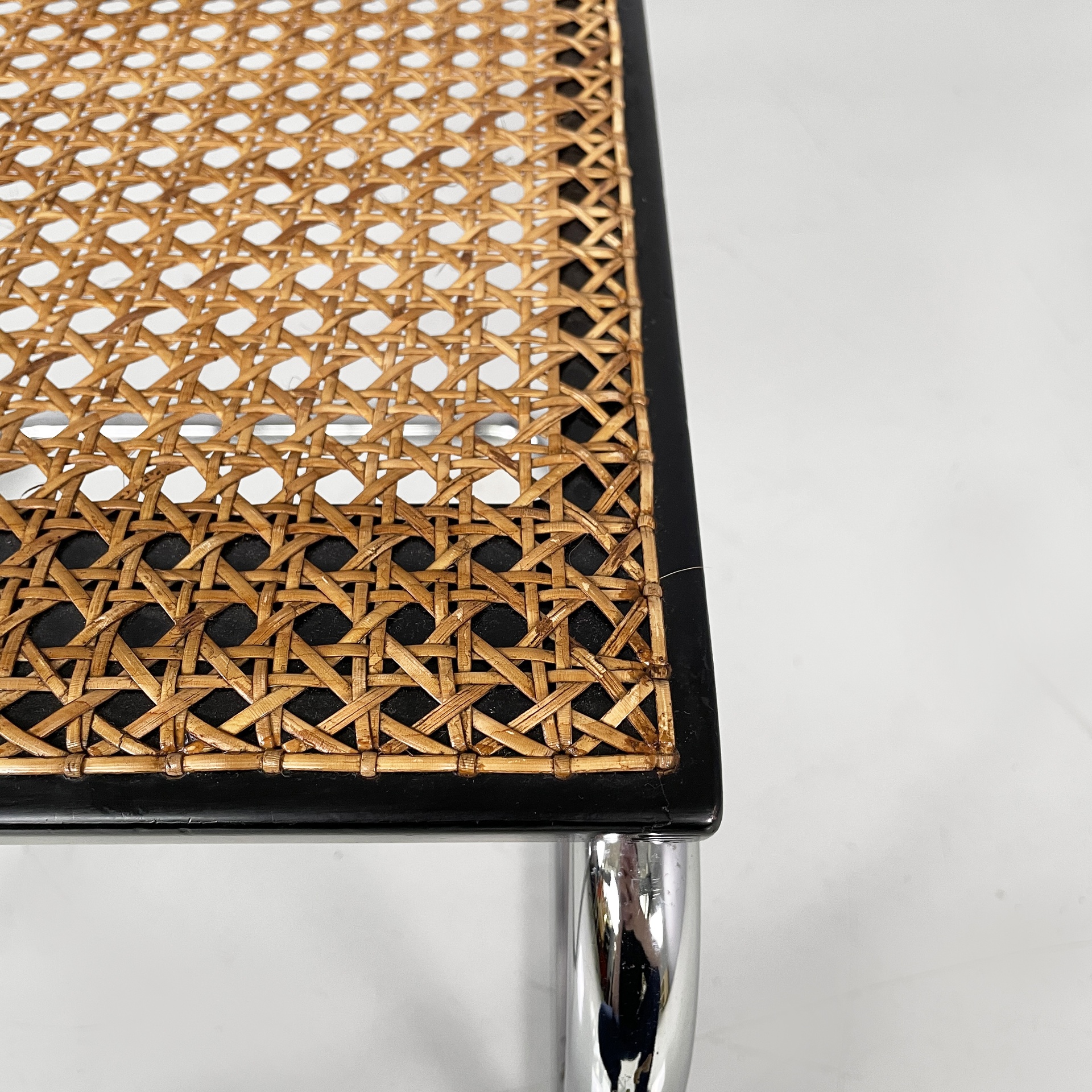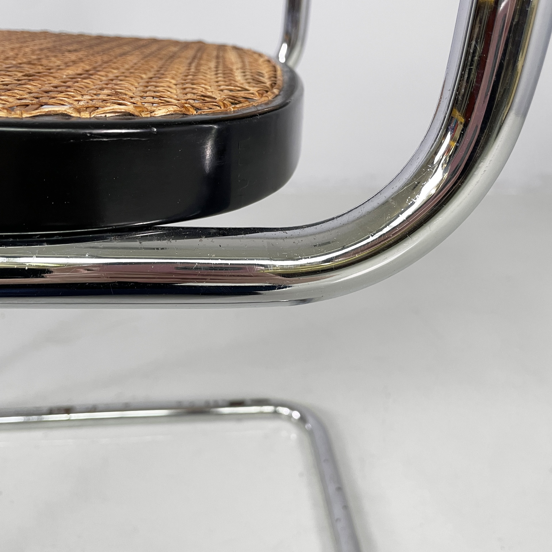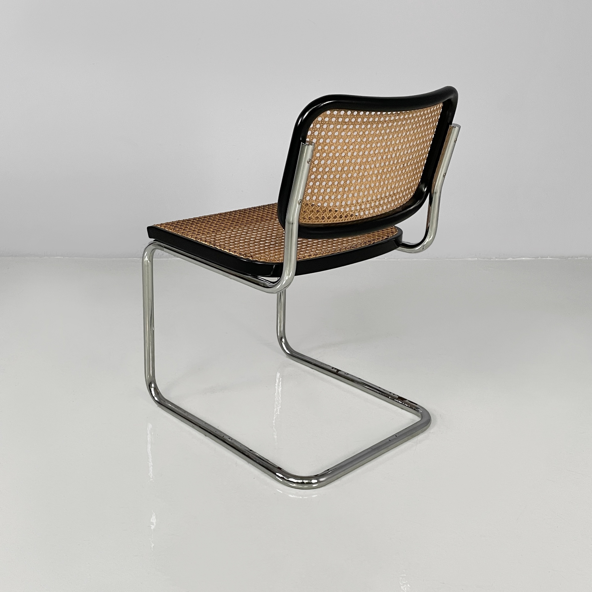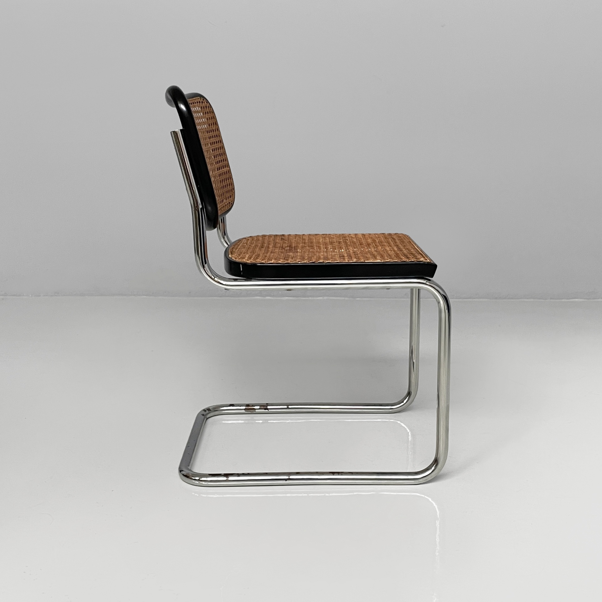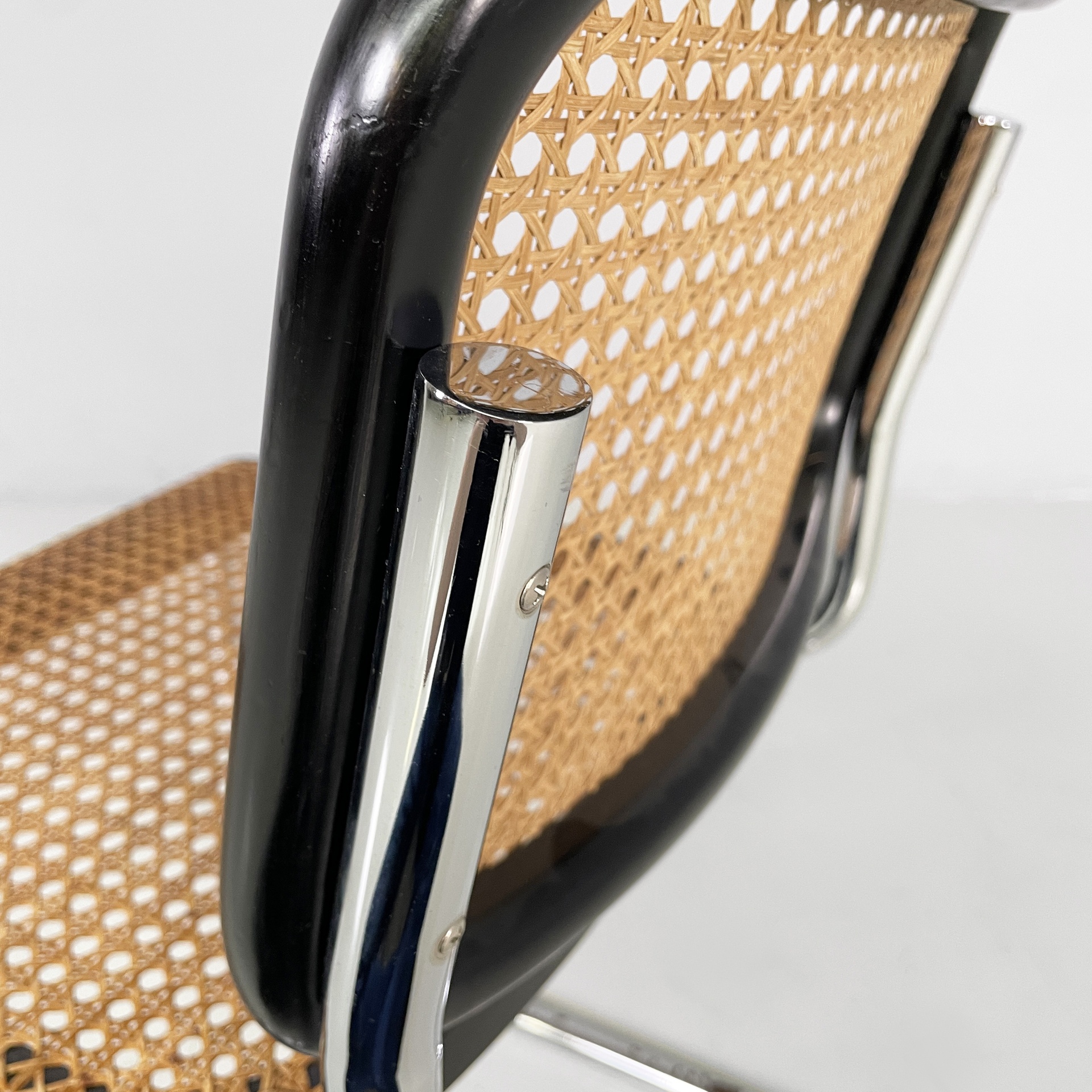 Sedia modello Cesca con seduta e schienale in paglia di Vienna e profili in legno verniciato nero. La struttura è in tubolare d’acciaio.