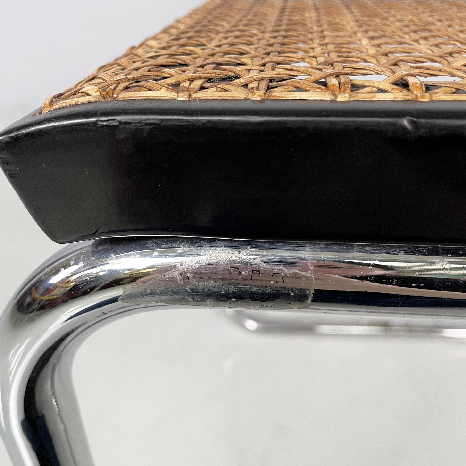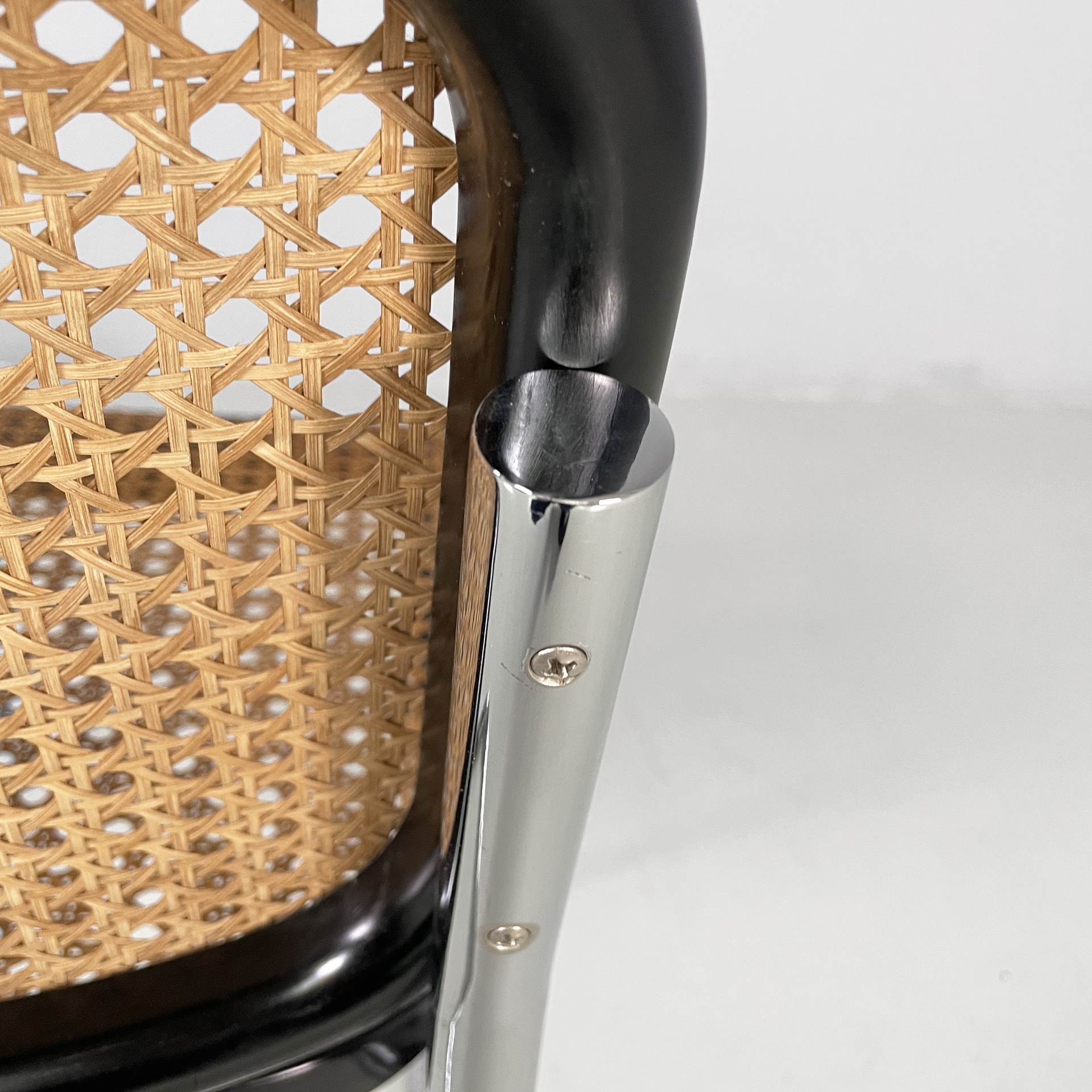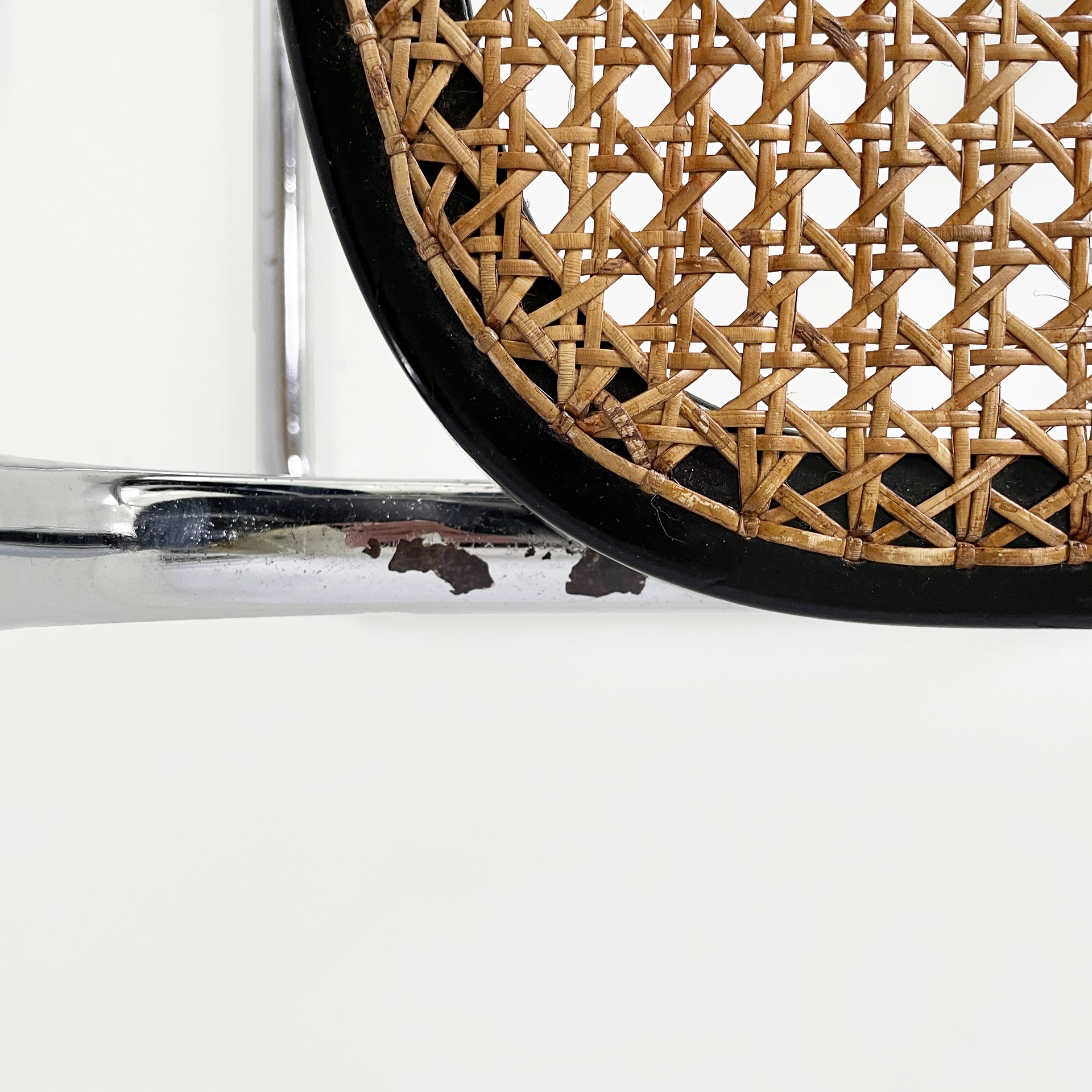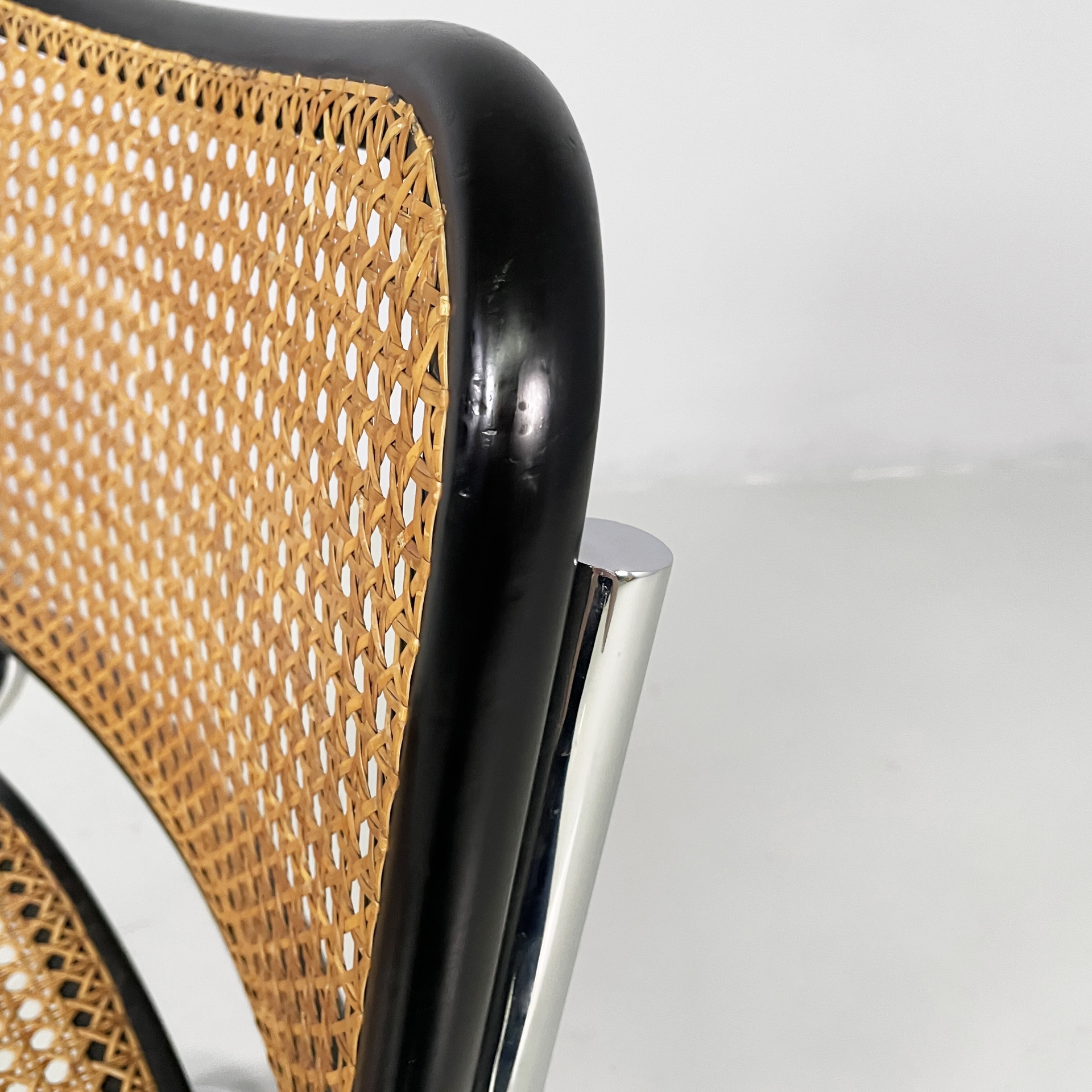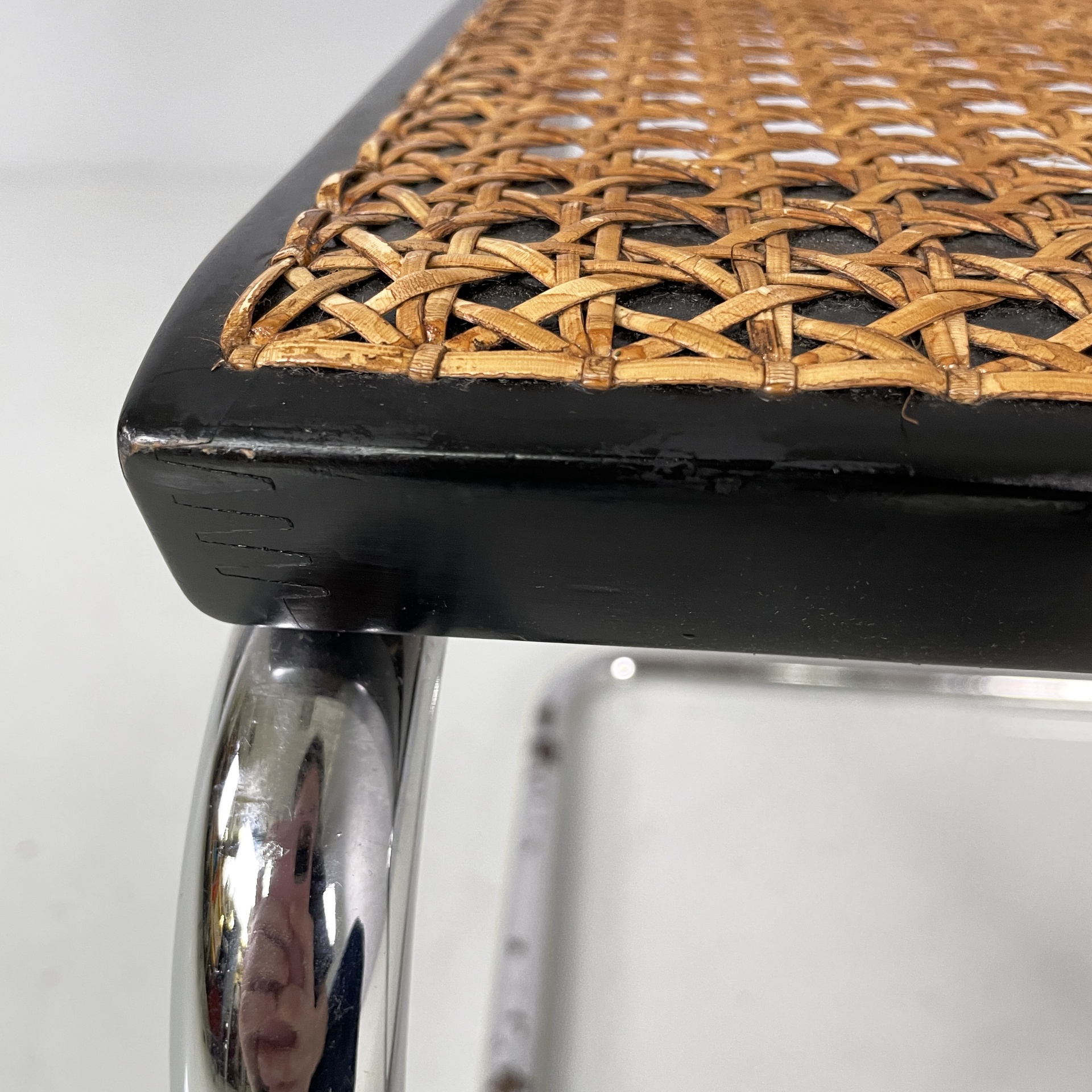 Sedia modello Cesca con seduta e schienale in paglia di Vienna e profili in legno verniciato nero. La struttura è in tubolare d’acciaio.