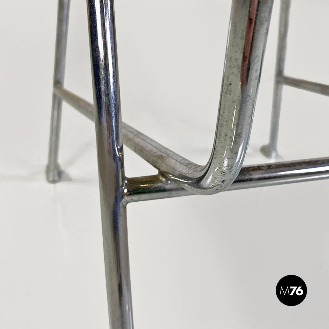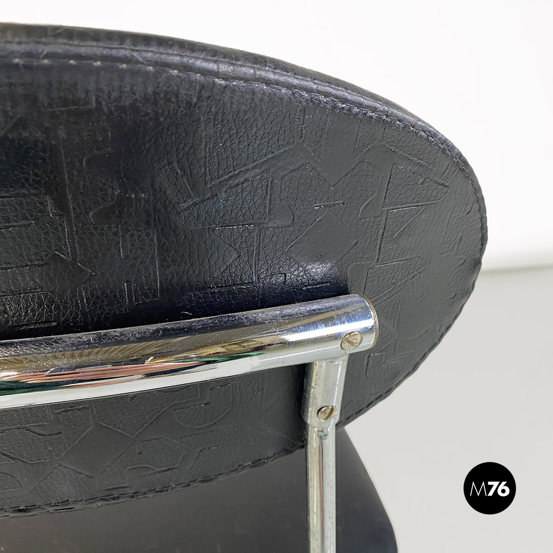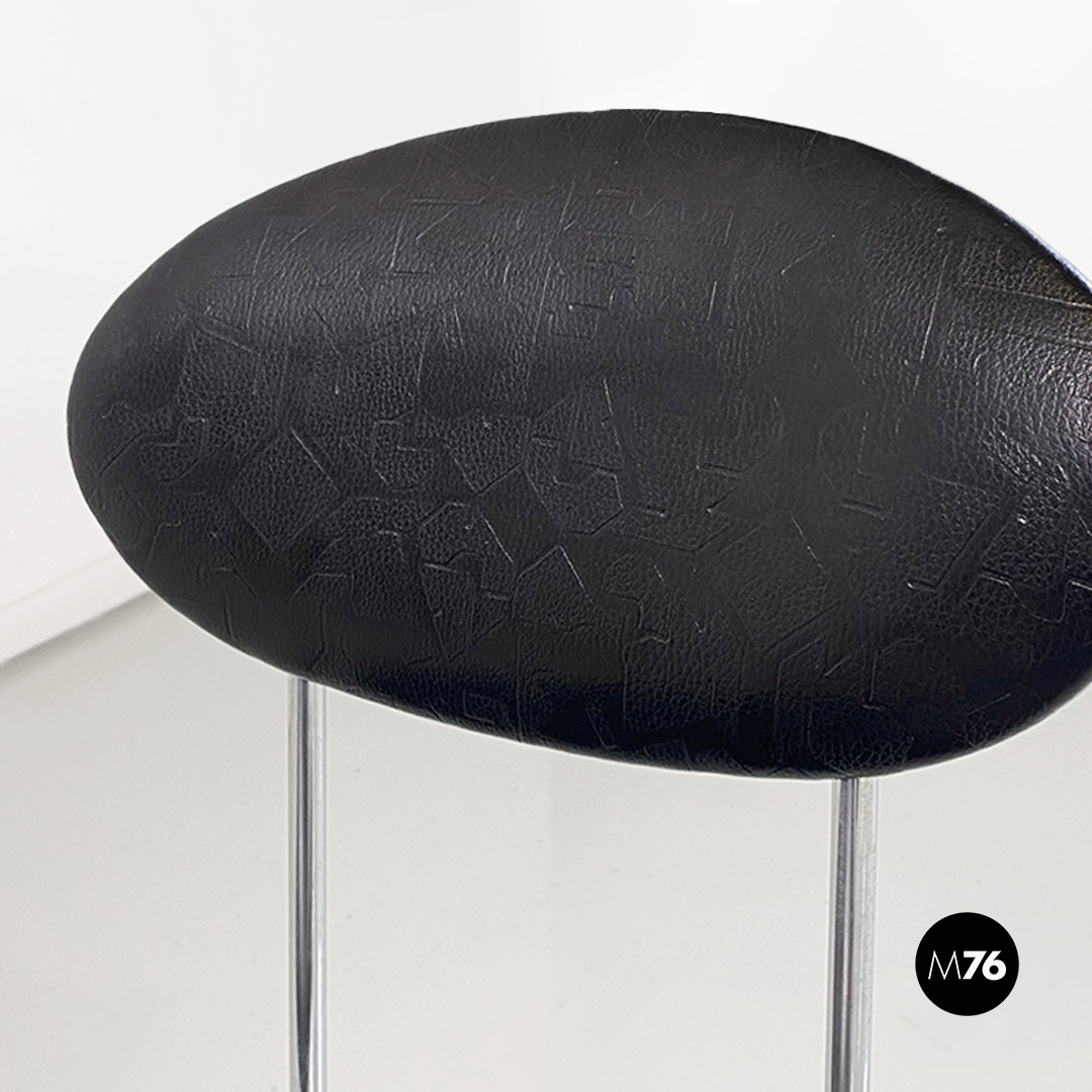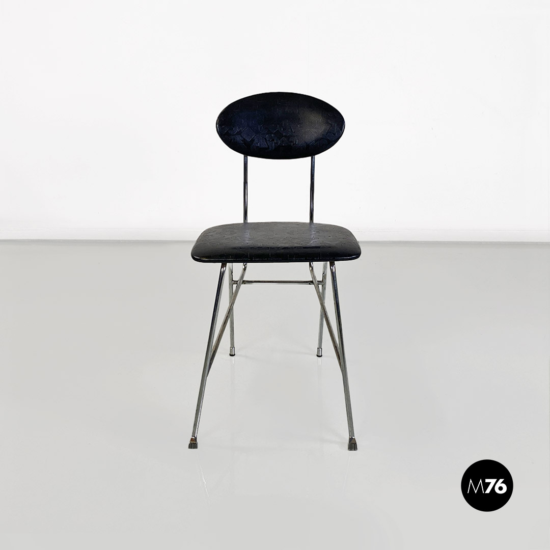 Sedia con seduta e schienale in pelle nera. La struttura è in tondino di metallo cromato.