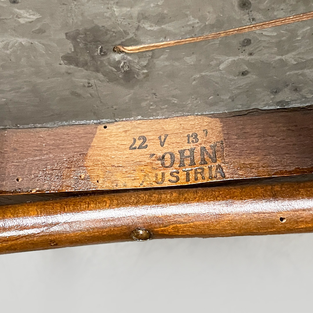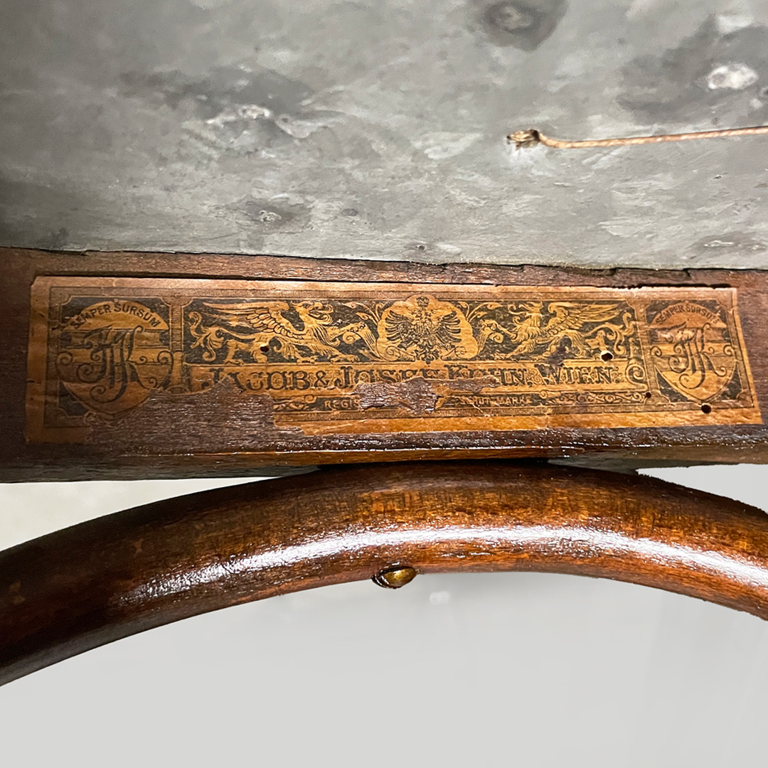 Prodotta da Jacob & Josef Kohn nel 1930 ca. Etichetta presente e marchio impresso nel legno sotto la seduta.
